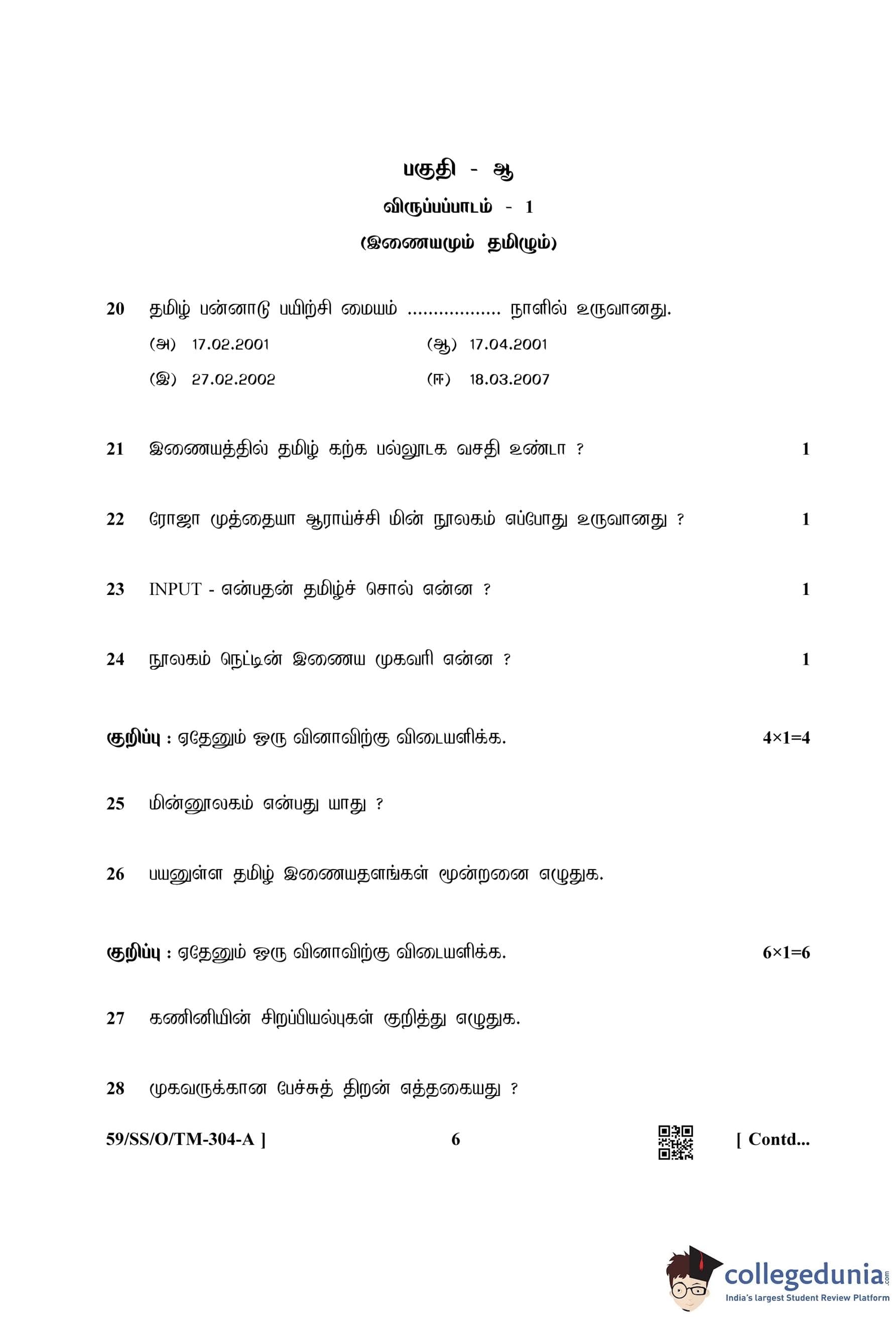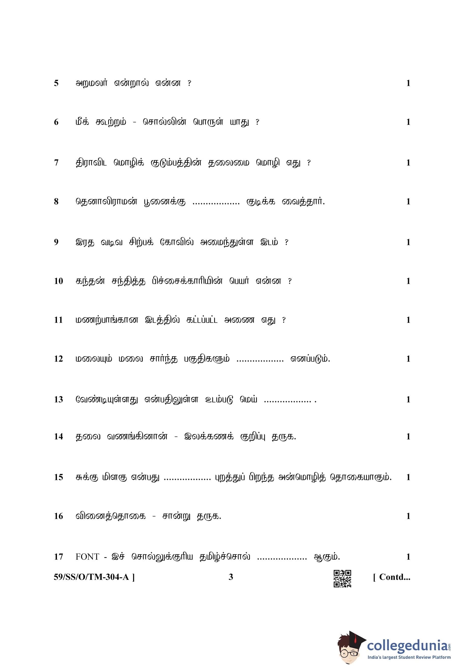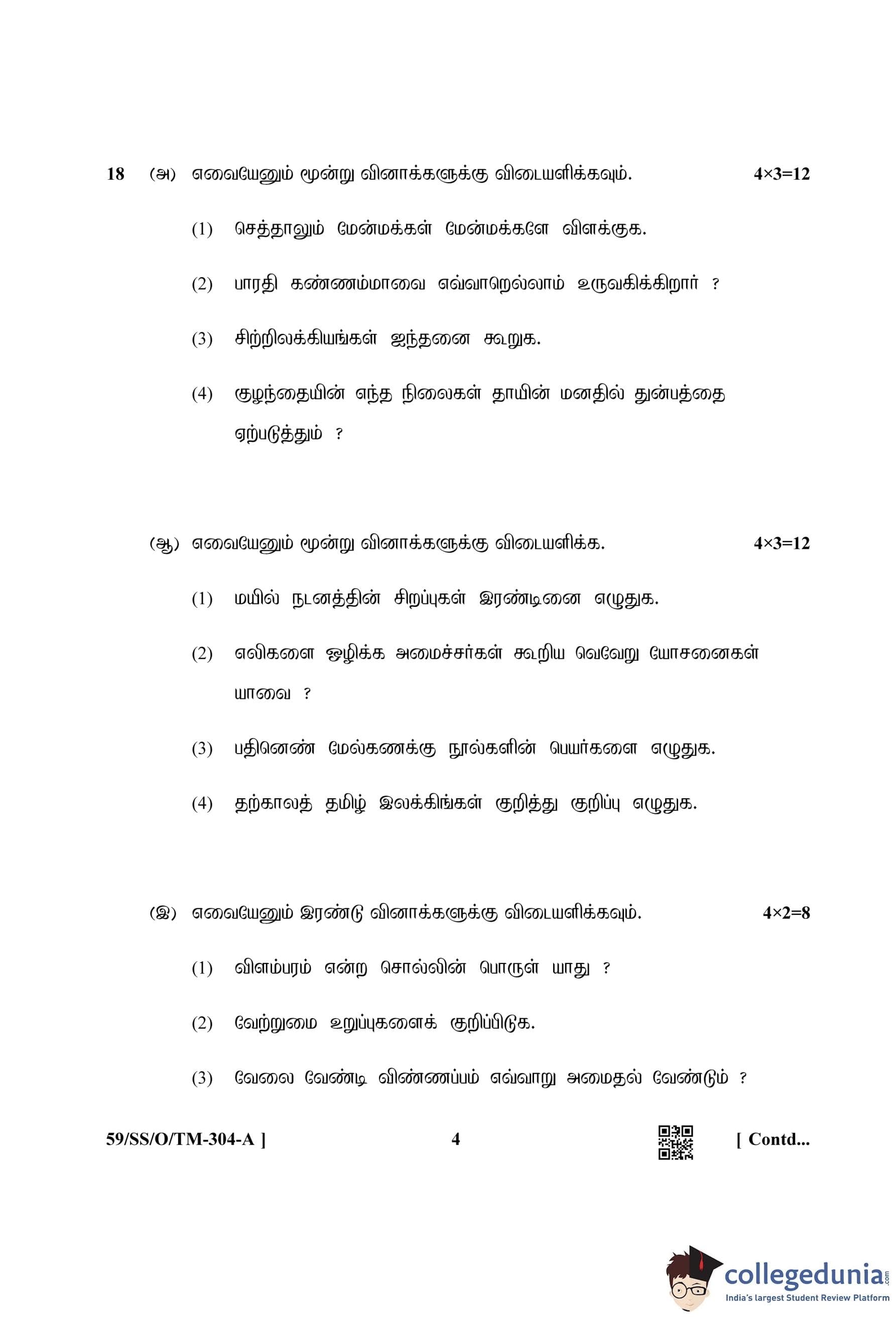 NIOS Class 12 Tamil Compartment Question Paper 2019 with Answer Key