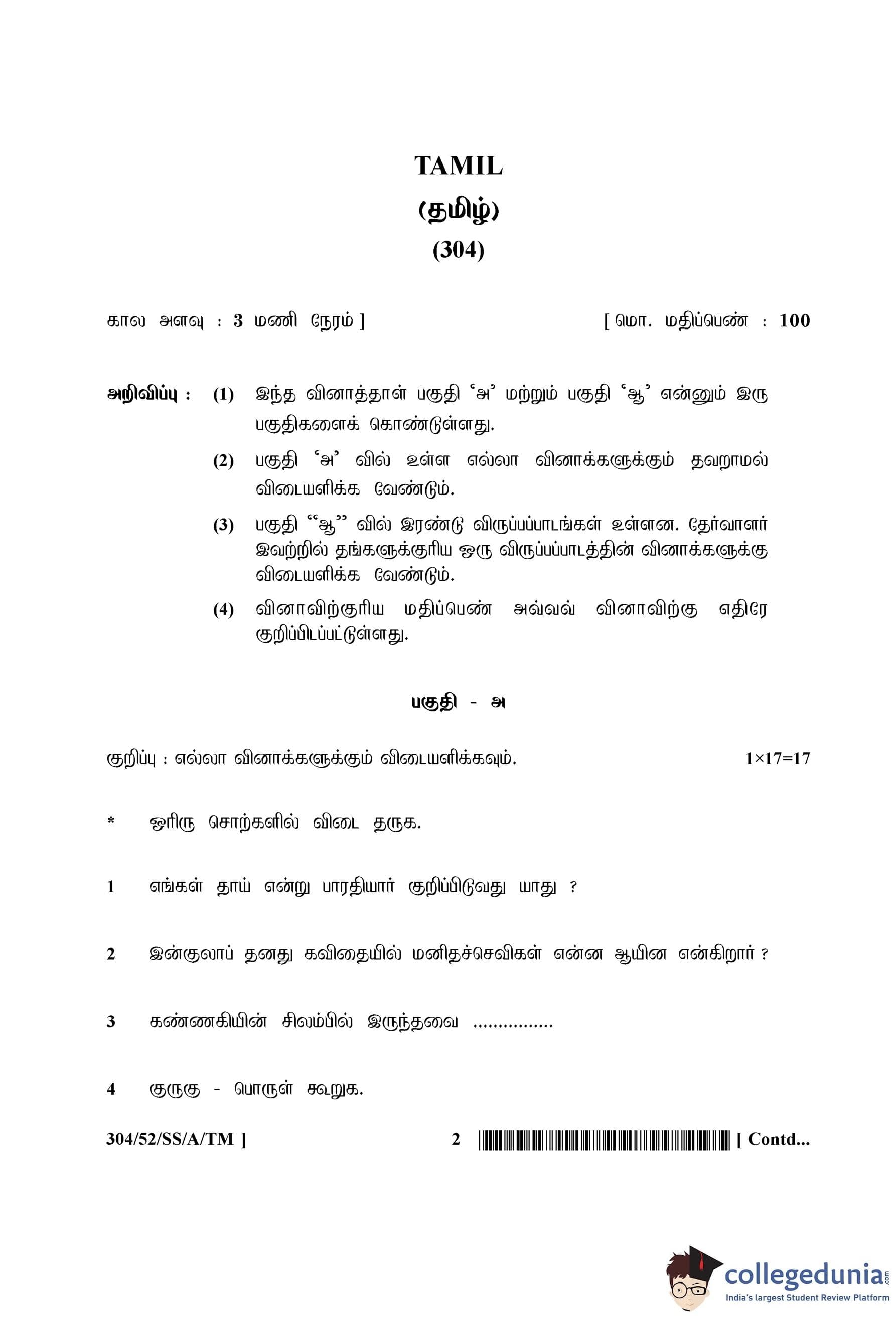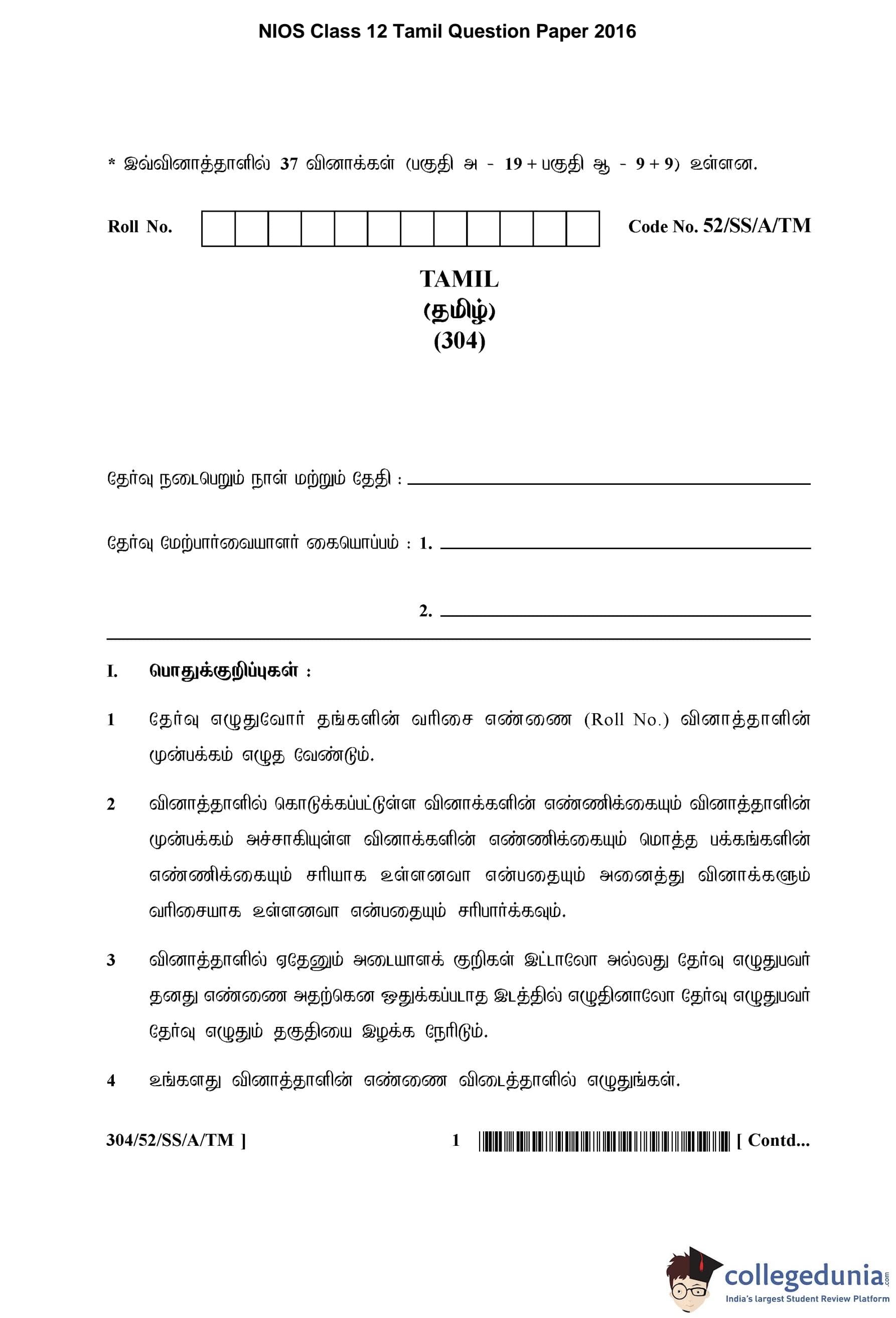 NIOS Class 12 Tamil Question Paper 2016 with Answer Key pdf is available for download here. The exam was conducted by National Institute of Open Schooling on March 30, 2016 in the Afternoon Session 2;30 PM to 5:30 PM. The question paper comprised a total of 28 questions divided among 2 sections.