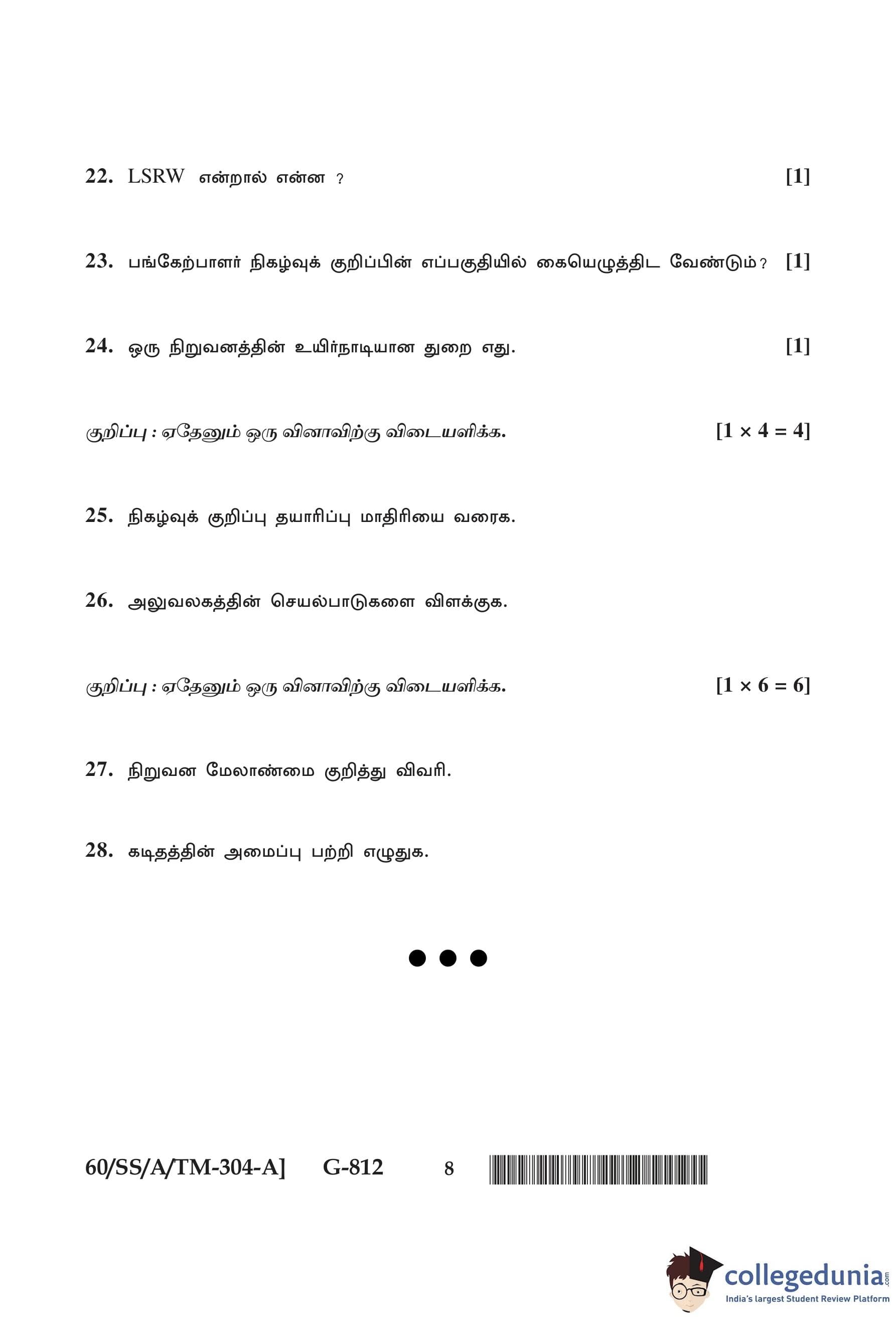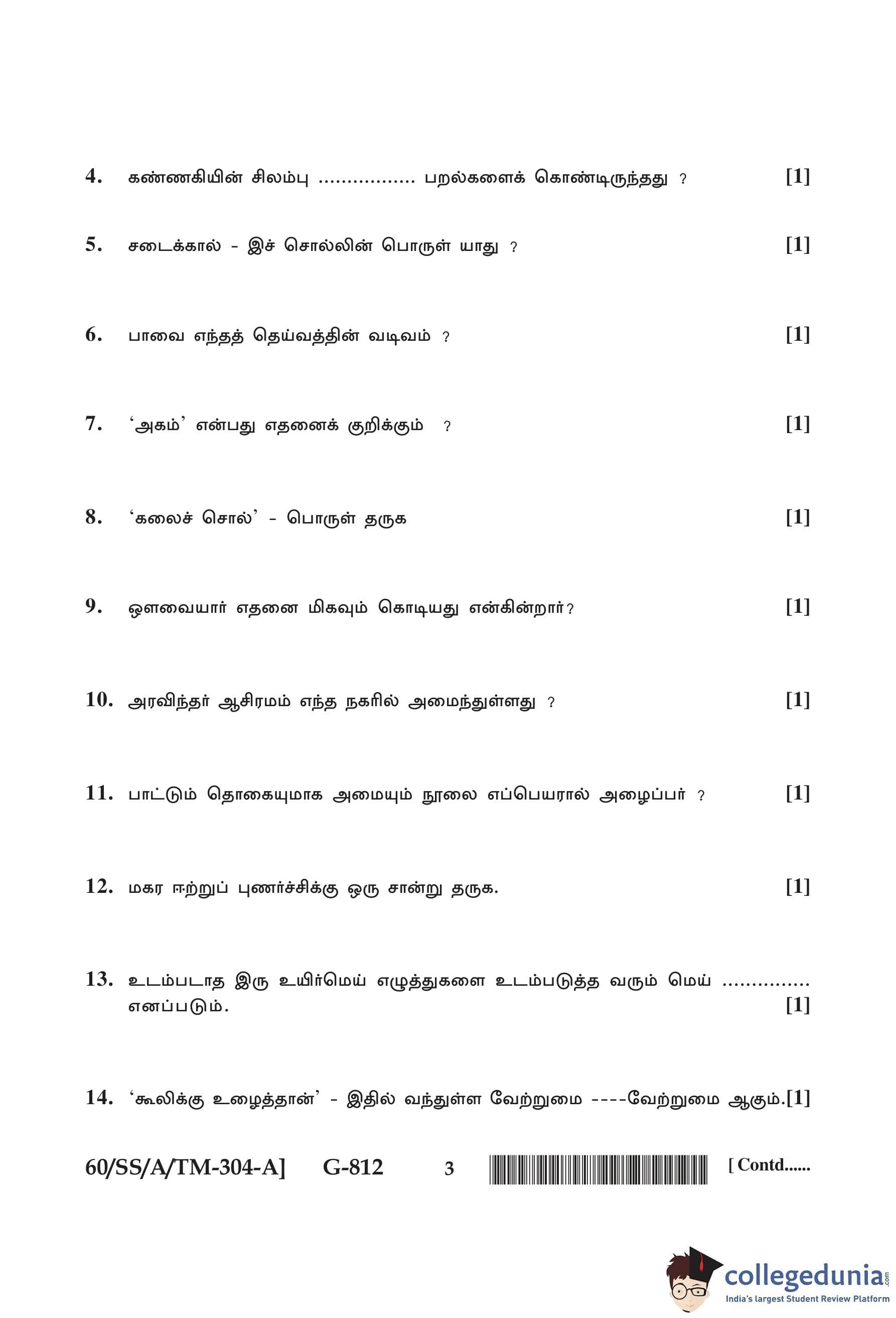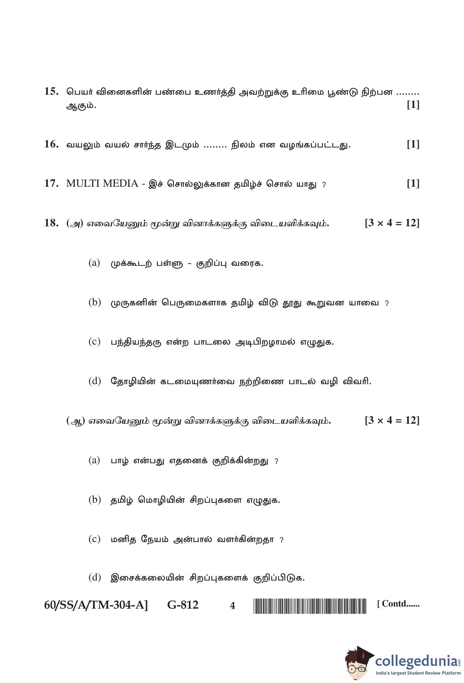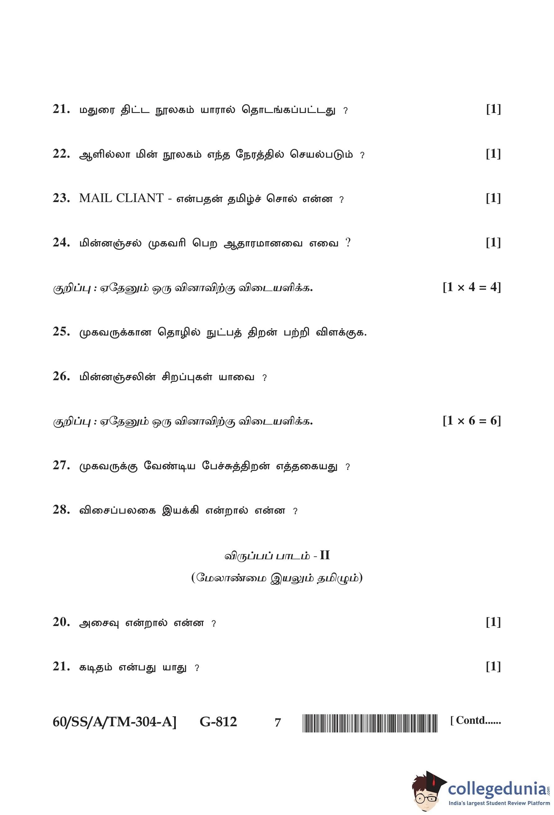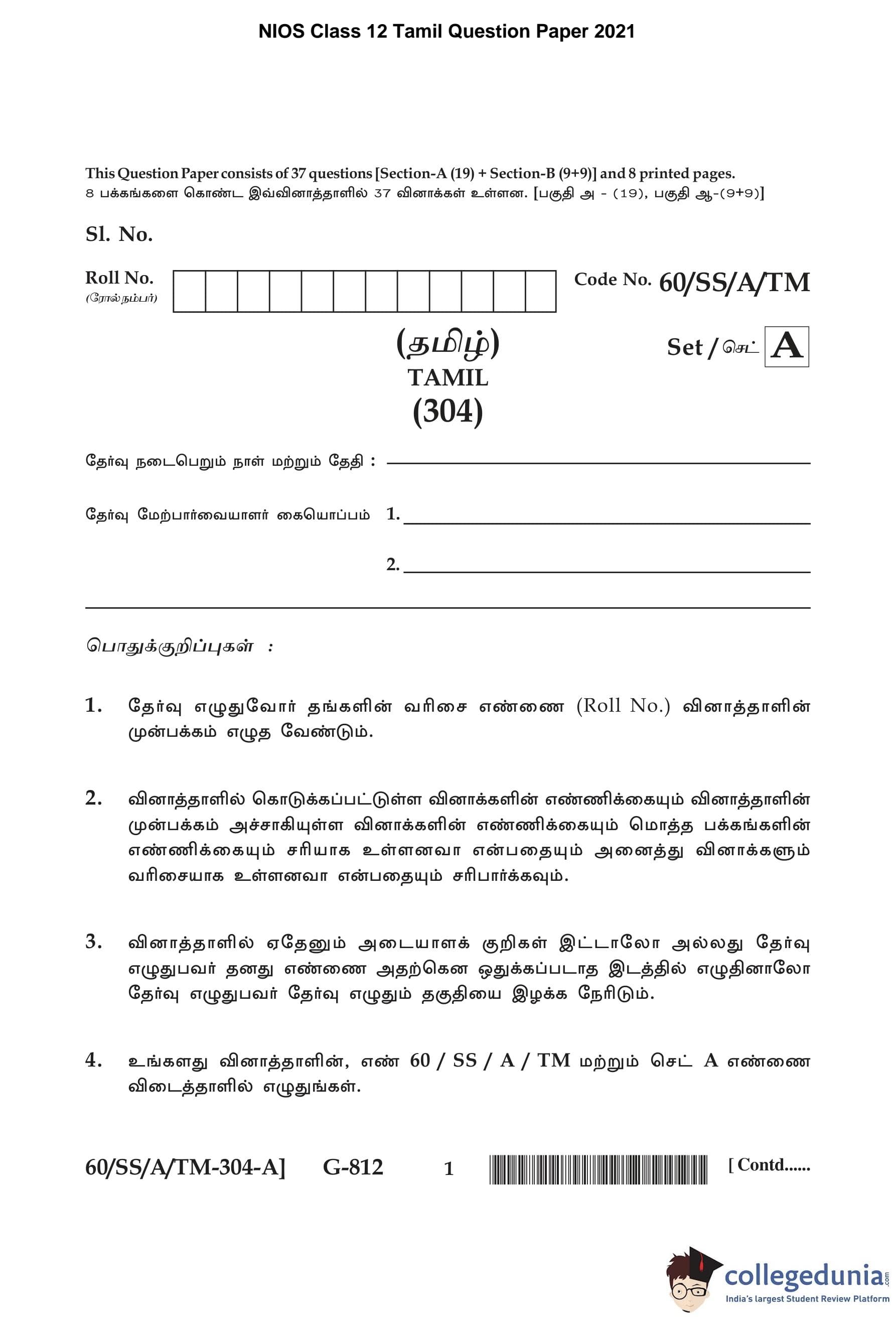 NIOS Class 12 Tamil Question Paper 2021 with Answer Key pdf is available for download here. The exam was conducted by National Institute of Open Schooling on February 1, 2021 in the Afternoon Session 2:30 PM to 5:30 PM. The question paper comprised a total of 28 questions divided among 2 sections.