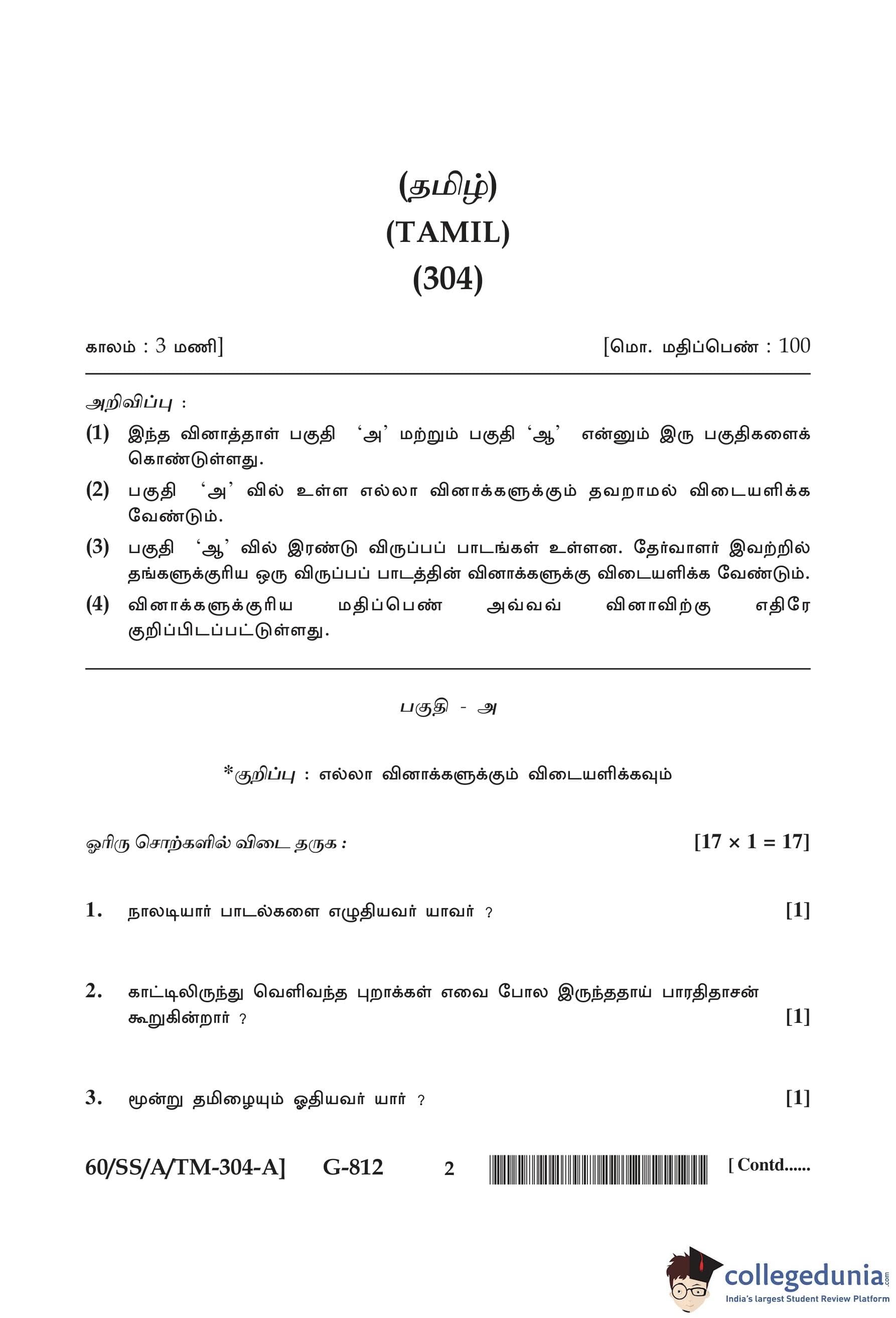 | NIOS Class 12 Tamil Question Paper 2021 PDF | NIOS Class 12 Tamil Answer Key 2021 PDF |