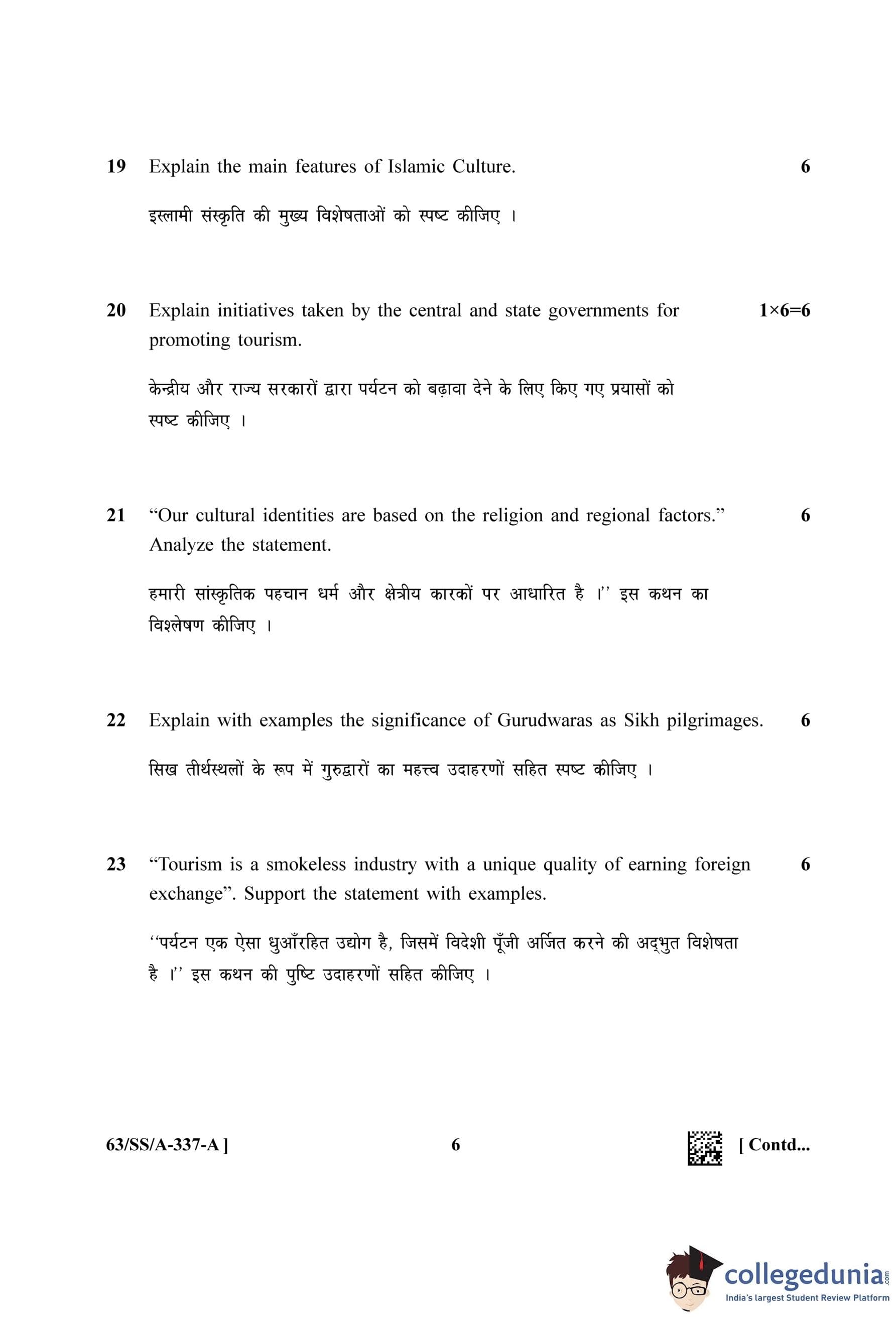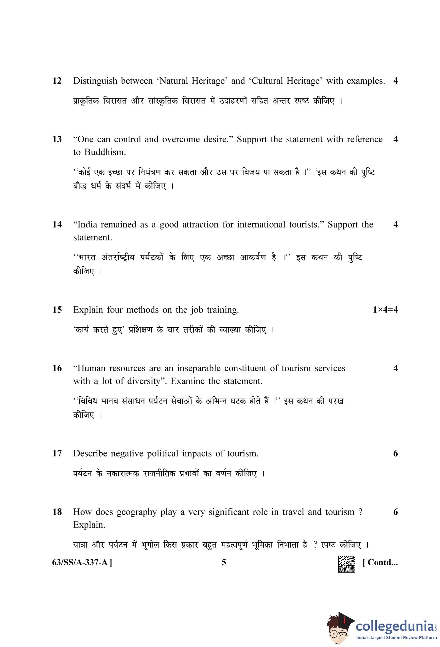 NIOS Class 12 Tourism Question Paper 2022 with Answer Key