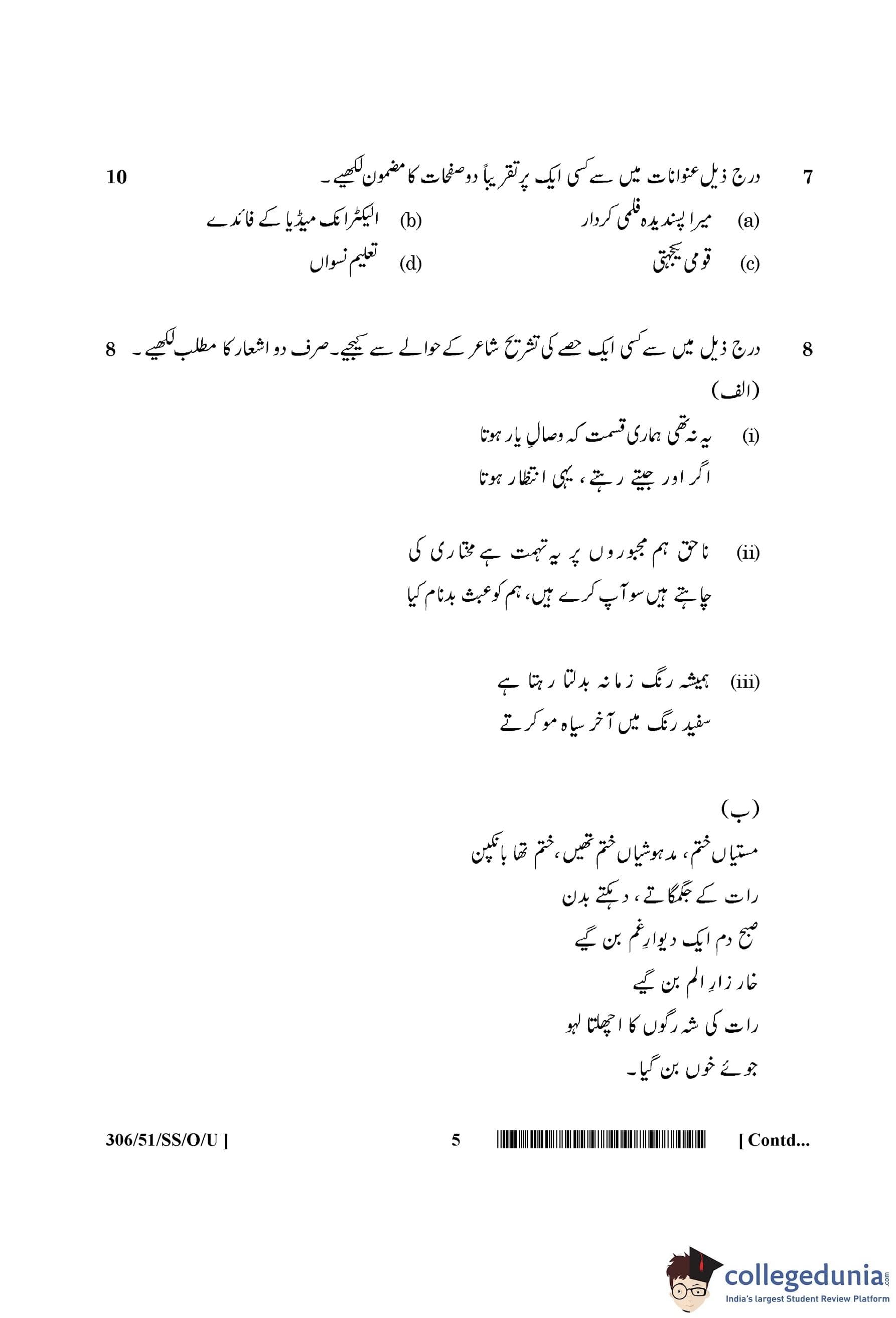 NIOS Class 12 Urdu Compartment Question Paper 2015 with Answer Key
