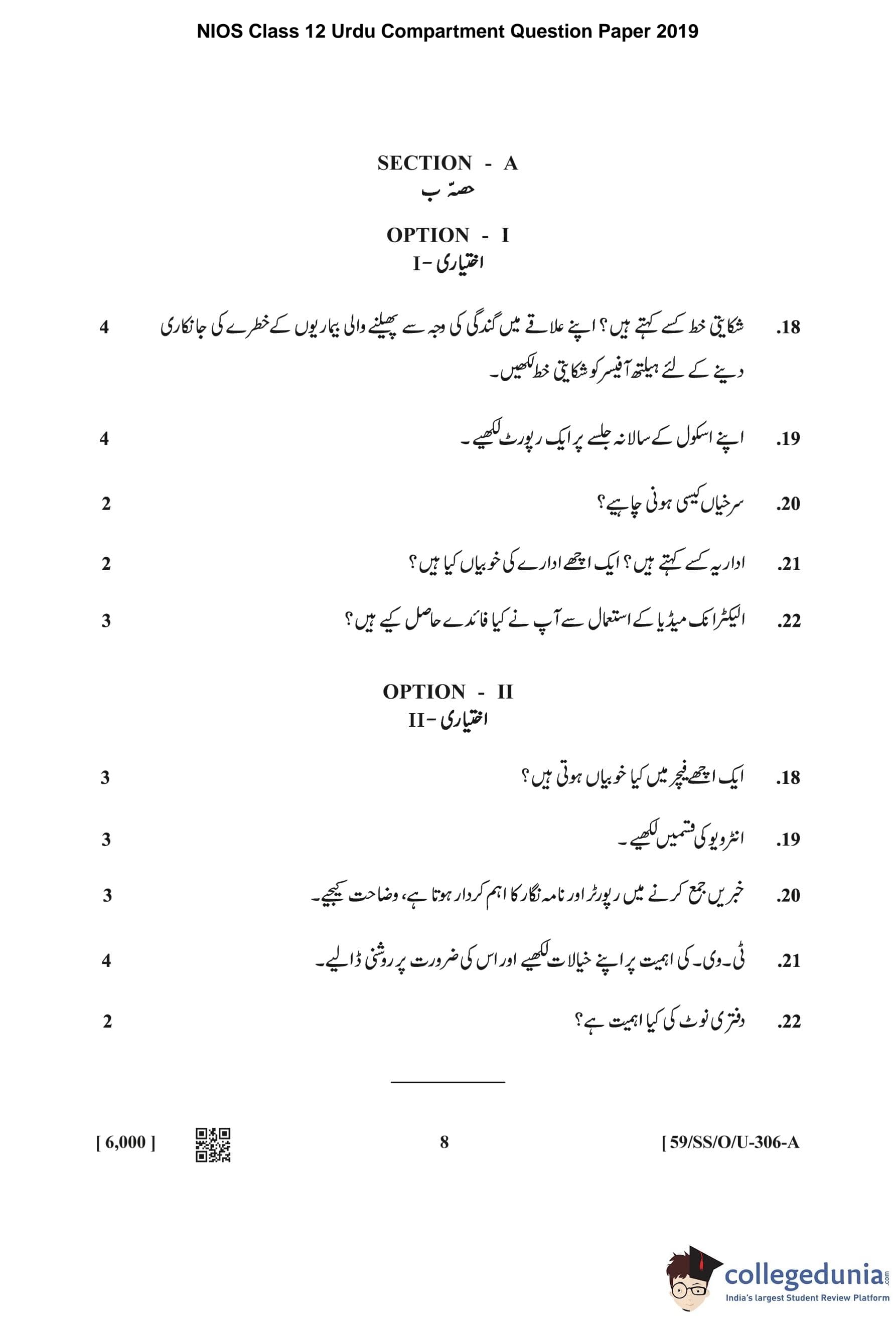 | NIOS Class 12 Urdu Question Paper 2019 PDF | NIOS Class 12 Urdu Answer Key 2019 PDF |