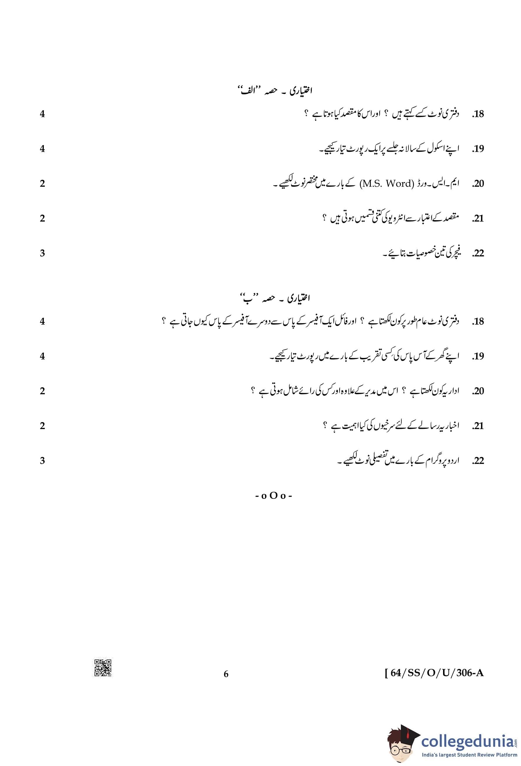 NIOS Class 12 Urdu Compartment Question Paper 2022 with Answer Key pdf is available for download here. The exam was conducted by National Institute of Open Schooling on October 19, 2022 in the Afternoon Session 2:30 PM to 5:30 PM. The question paper comprised a total of 22 questions divided among 2 sections.