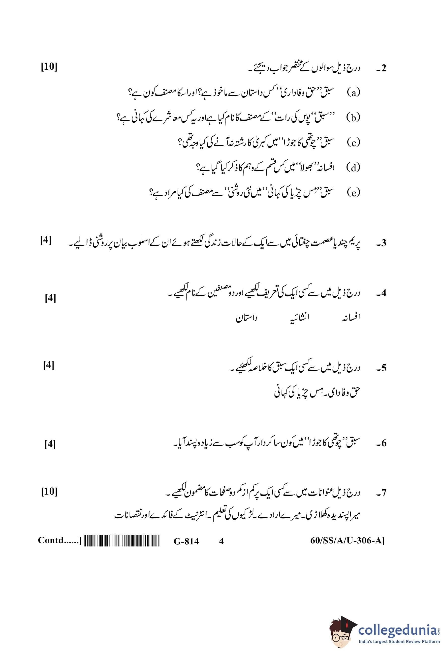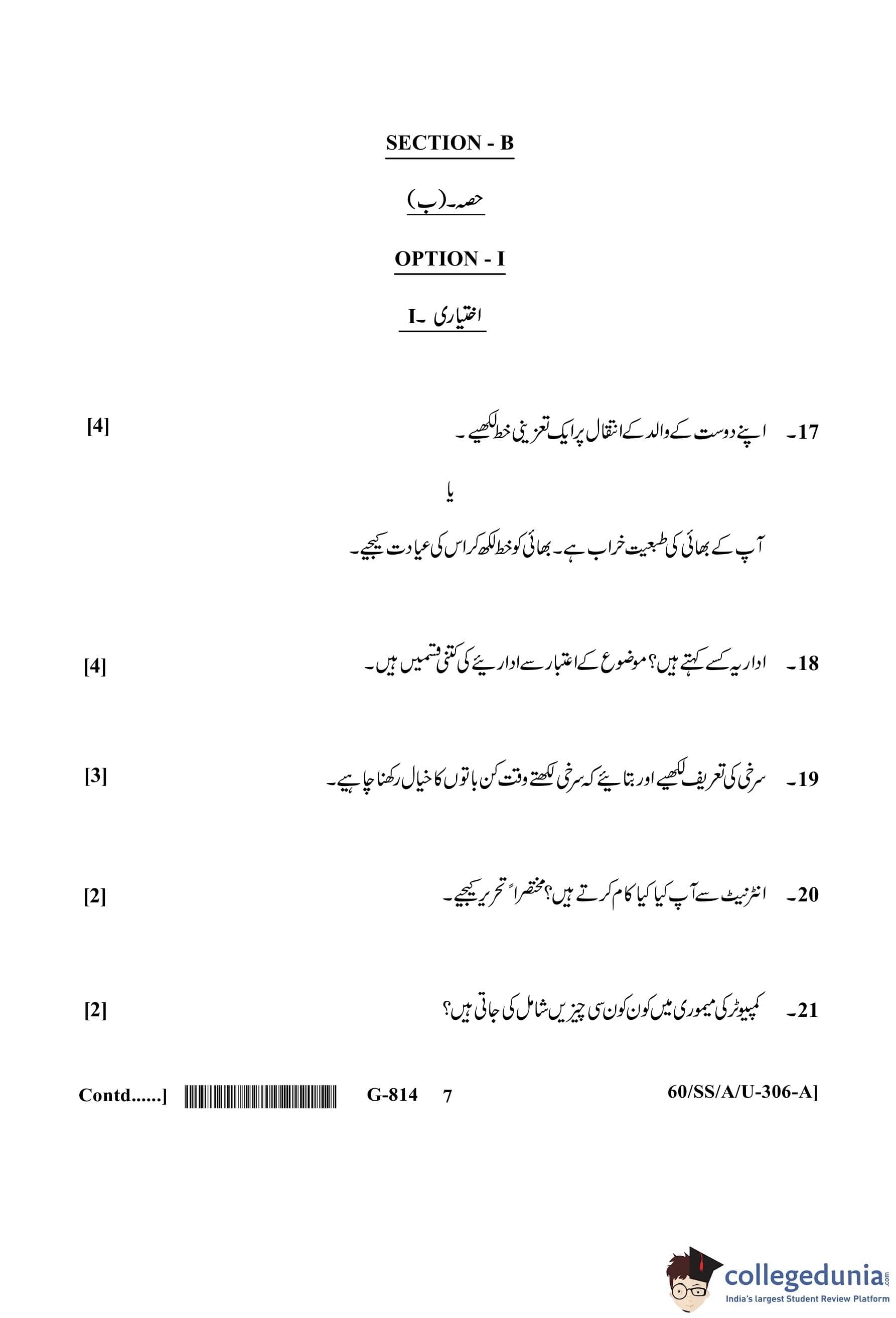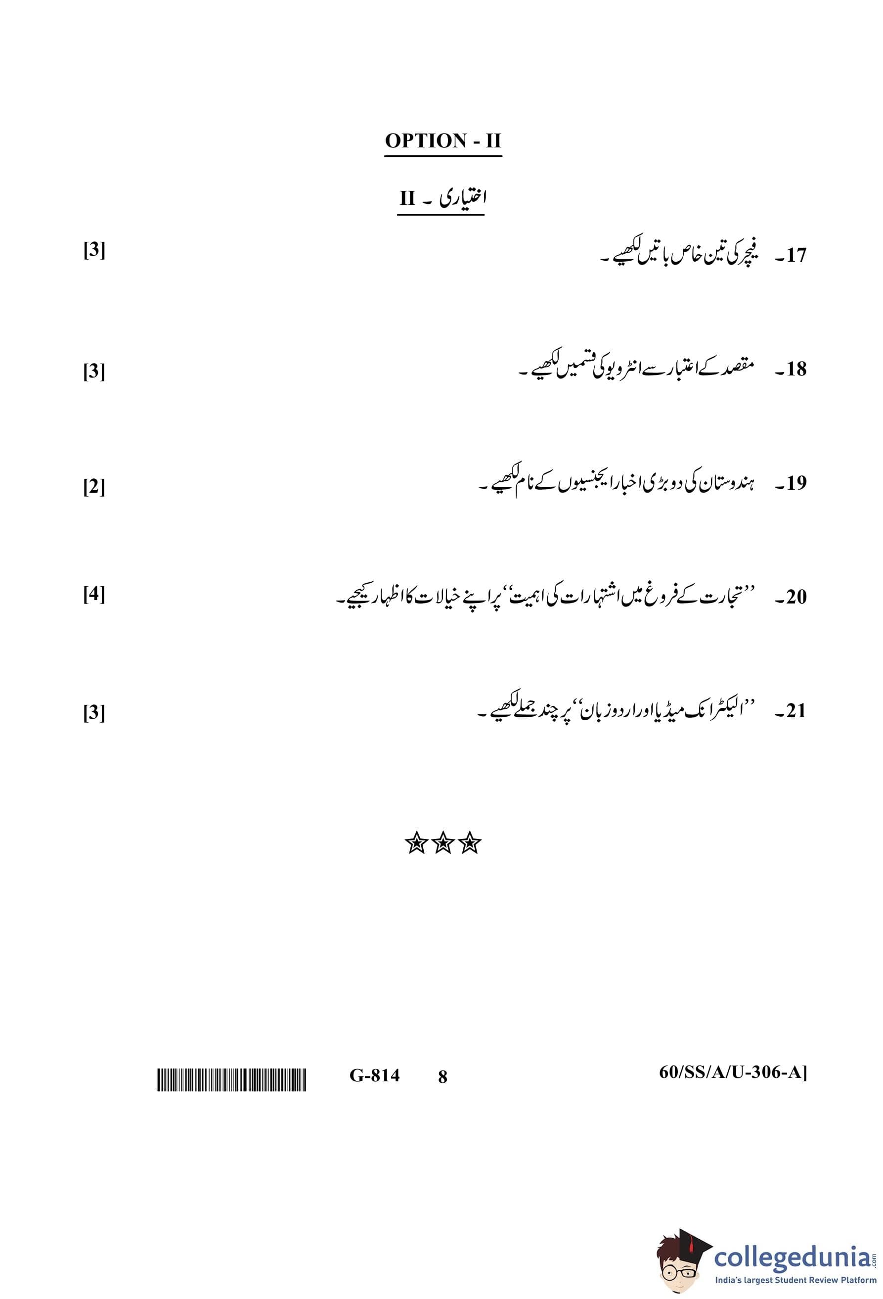 NIOS Class 12 Urdu Question Paper 2021 with Answer Key