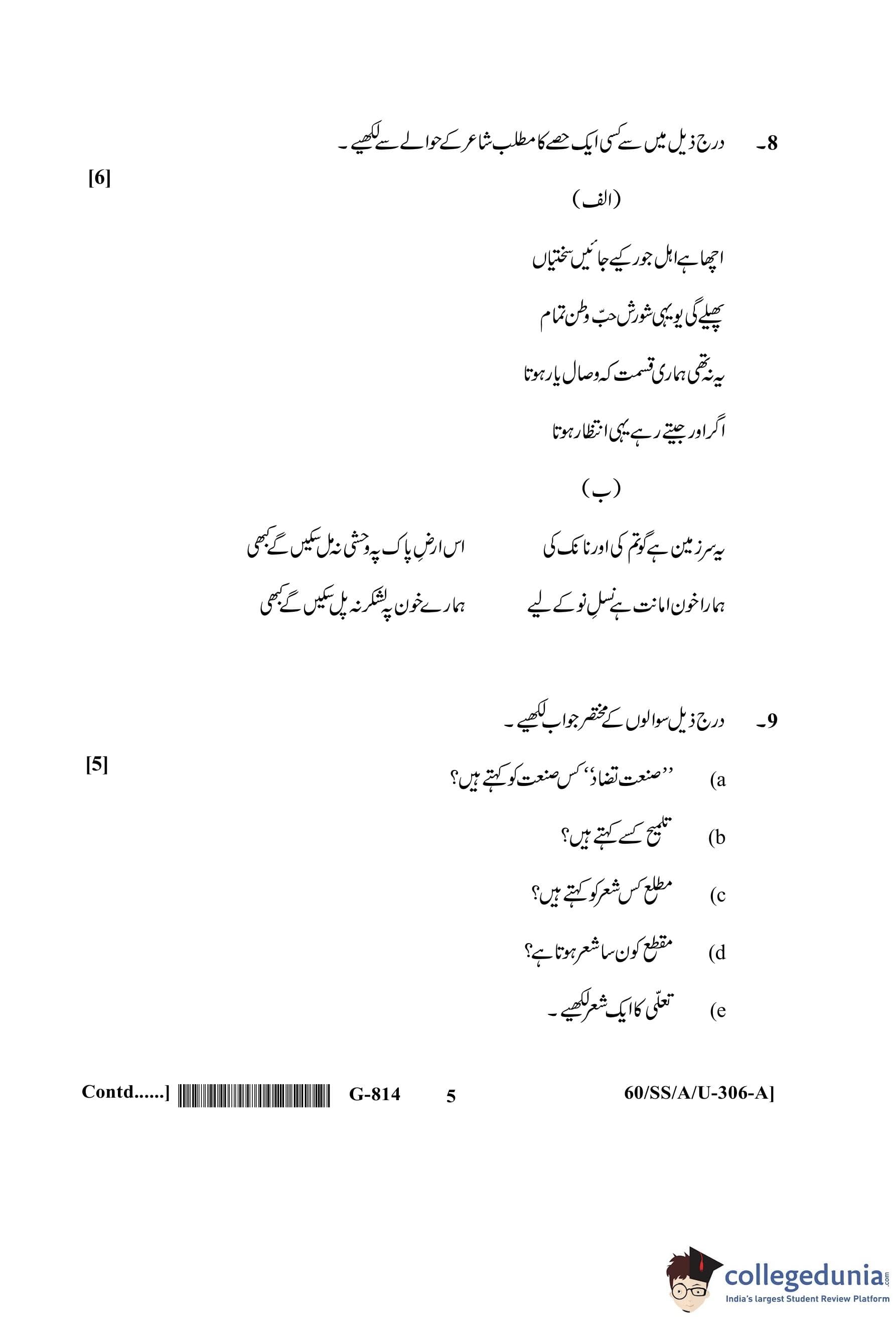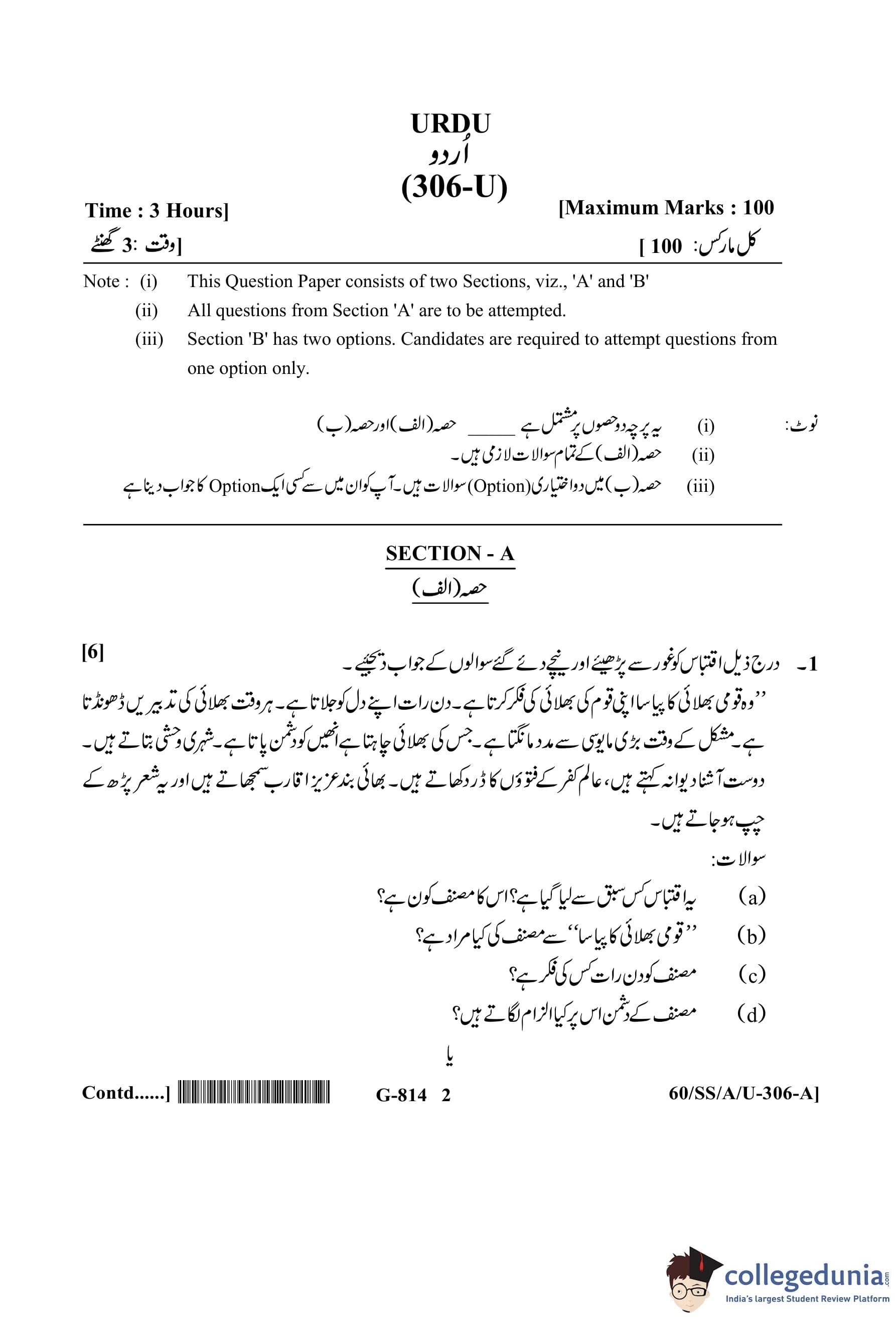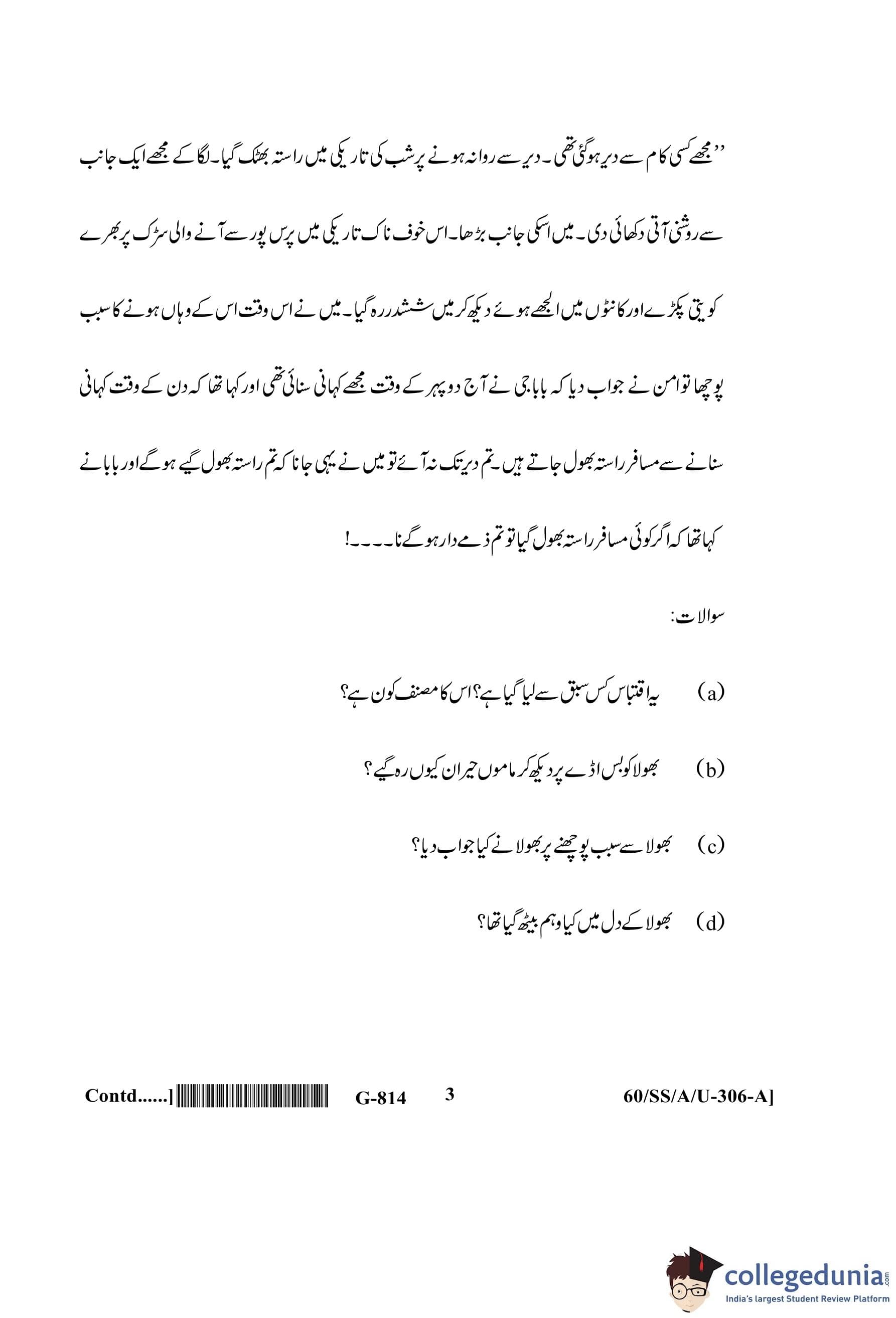 NIOS Class 12 Urdu Question Paper 2021 with Answer Key