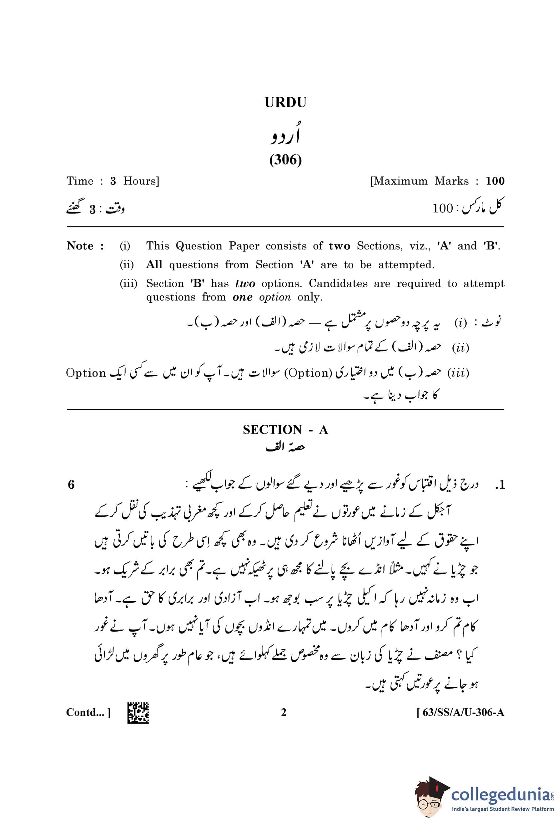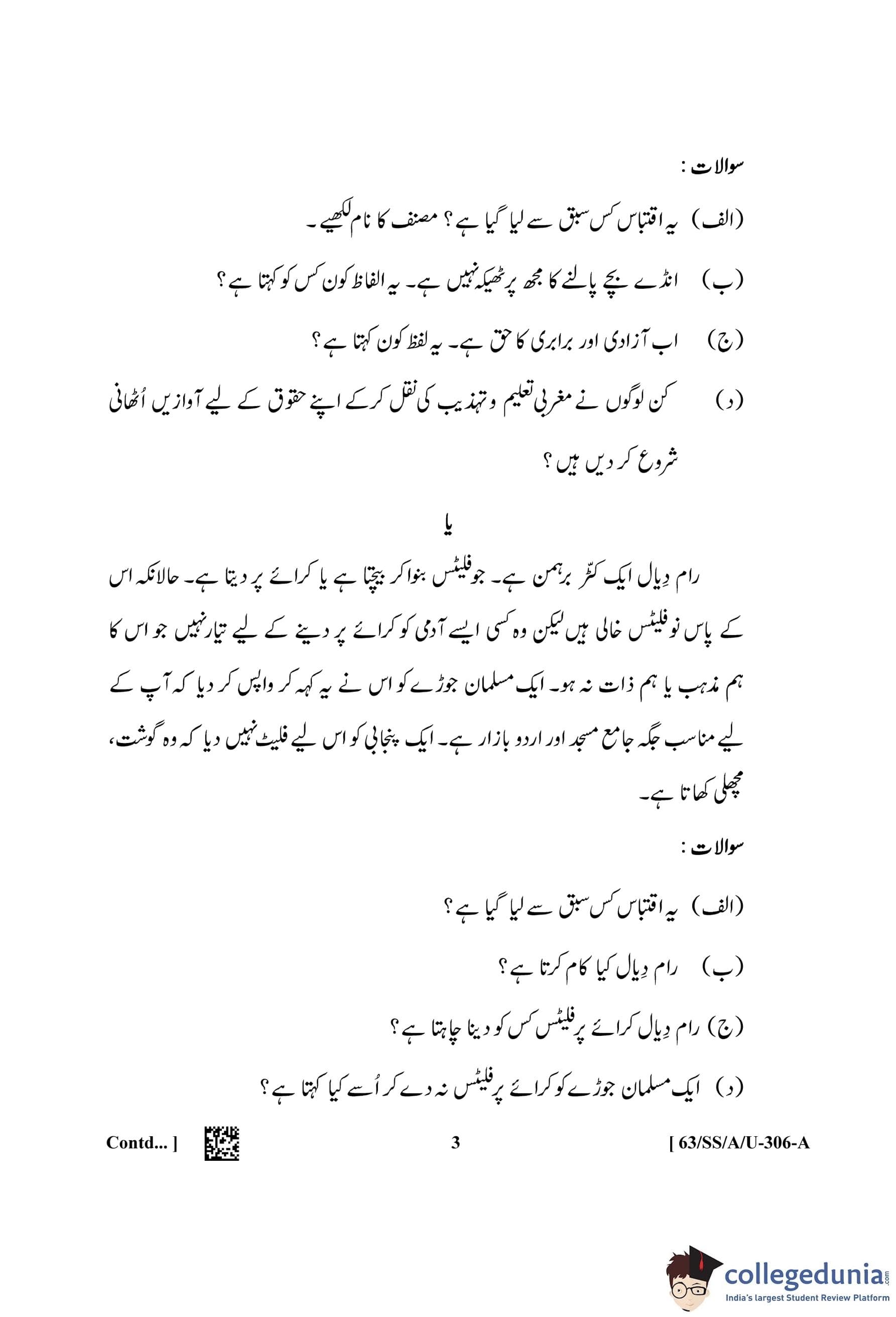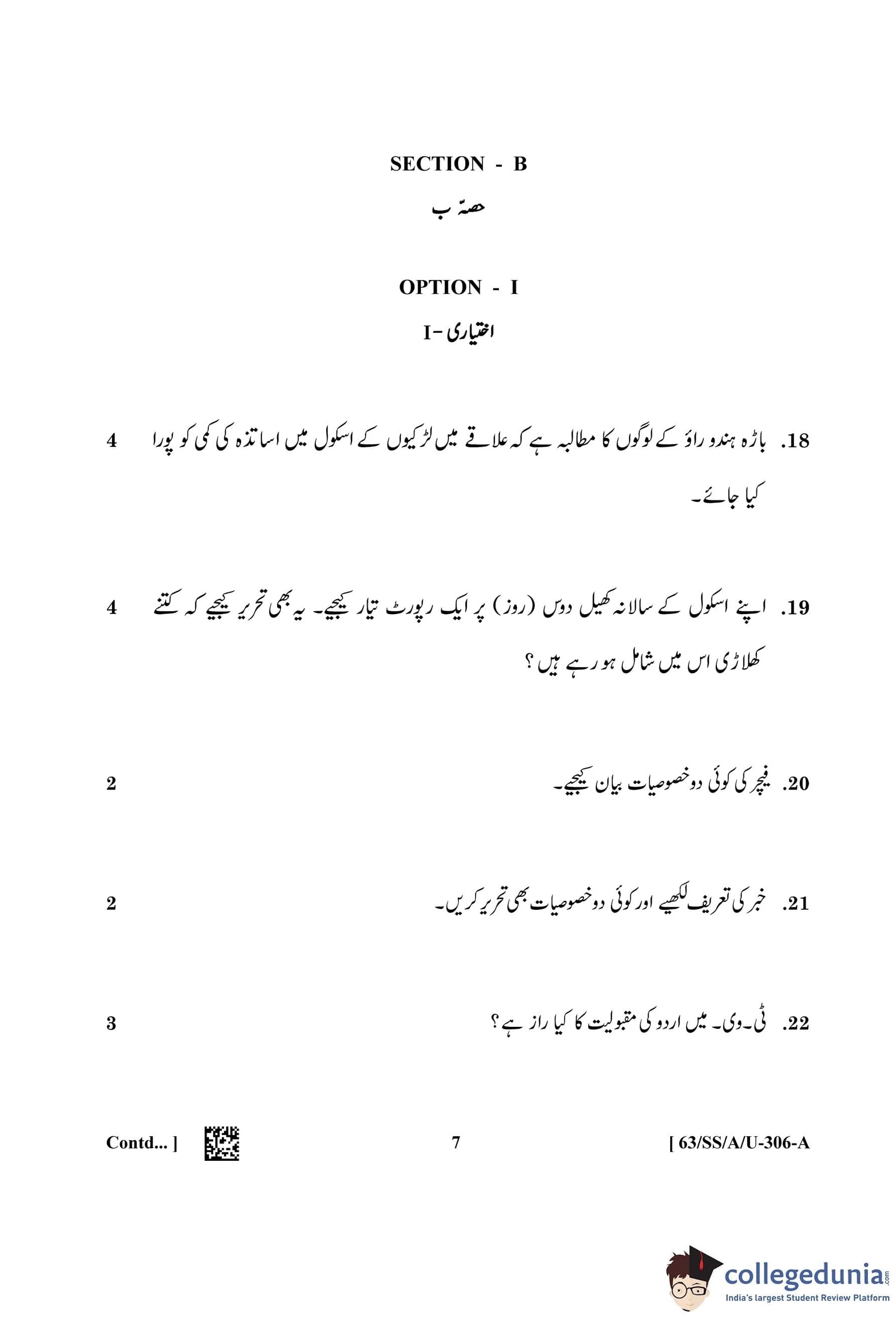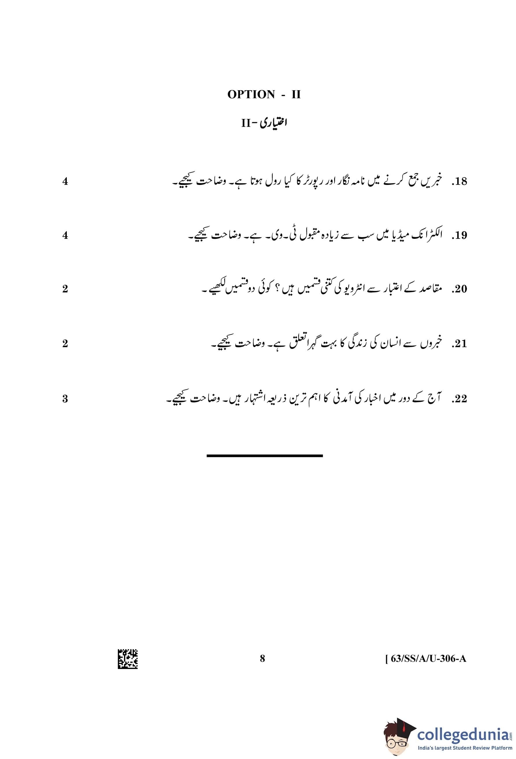 NIOS Class 12 Urdu Question Paper 2022 with Answer Key