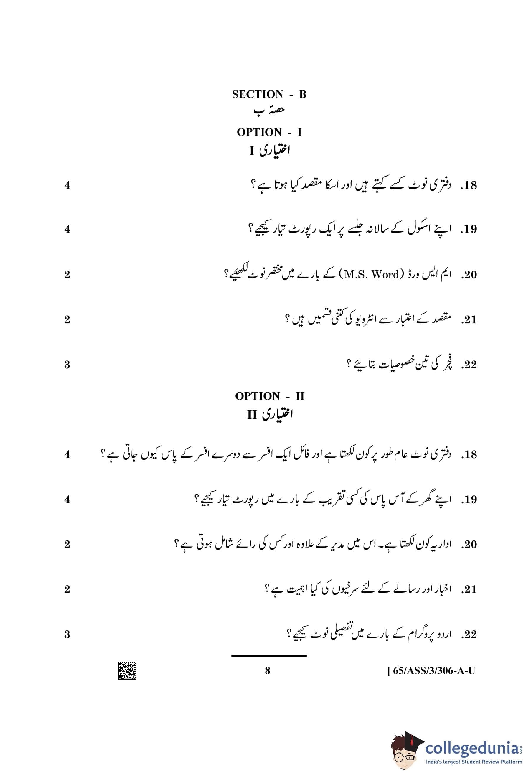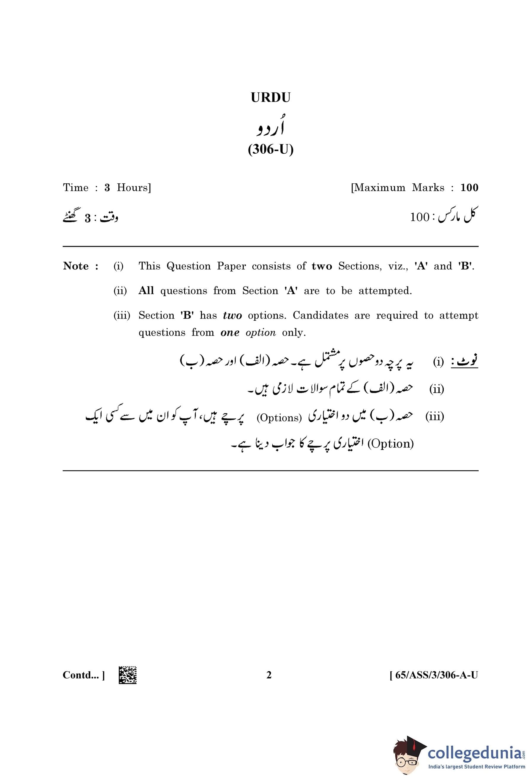 NIOS Class 12 Urdu Question Paper 2023 with Answer Key pdf (Set A - ASS) is available for download here. The exam was conducted by National Institute of Open Schooling on April 10, 2023 in the Afternoon Session 2.30 PM to 5.30 PM. The question paper comprised a total of 27 questions divided among 2 sections.