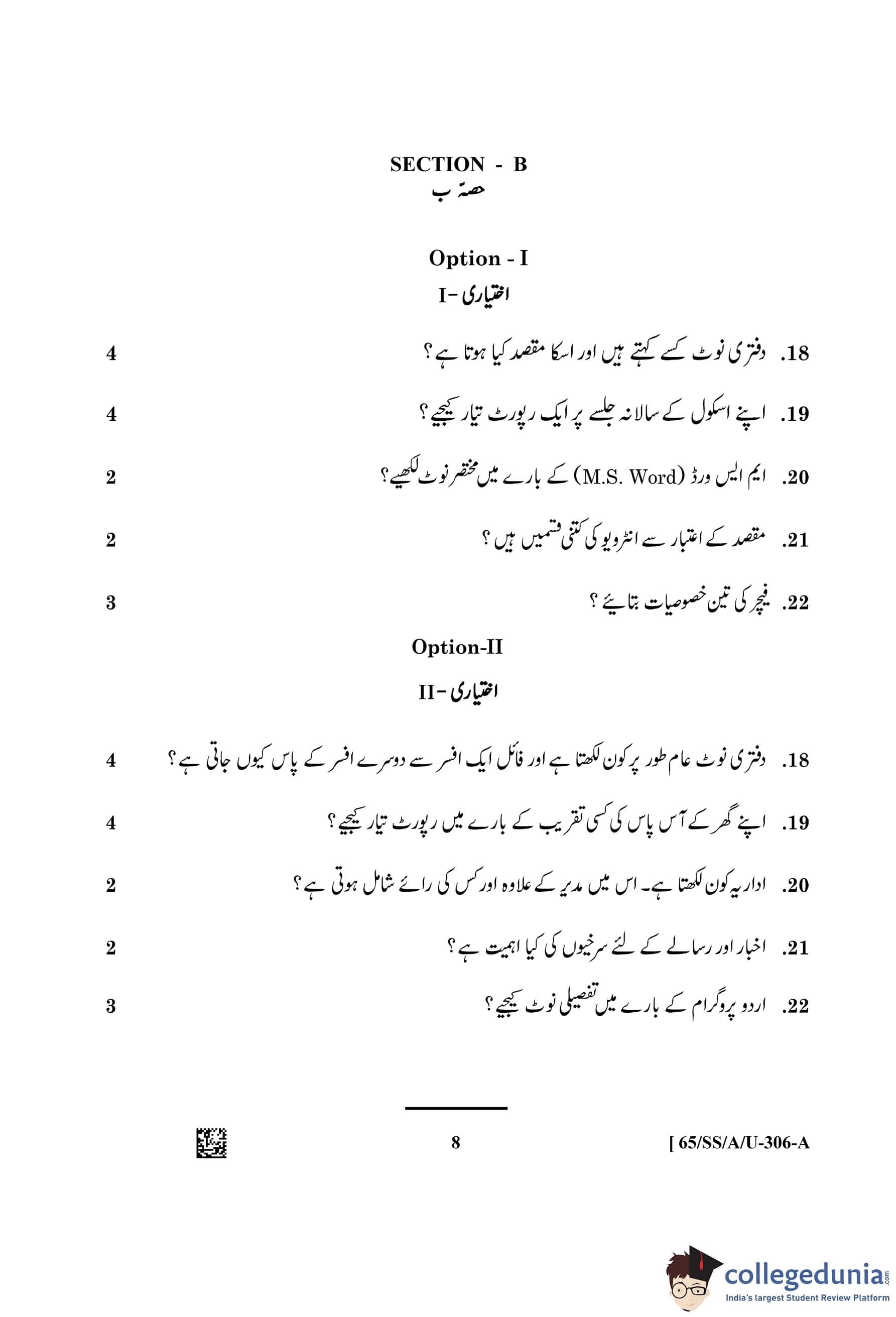 NIOS Class 12 Urdu Question Paper 2023 with Answer Key pdf (Set A - SS) is available for download here. The exam was conducted by National Institute of Open Schooling on April 10, 2023 in the Afternoon Session 2.30 PM to 5.30 PM. The question paper comprised a total of 27 questions divided among 2 sections.