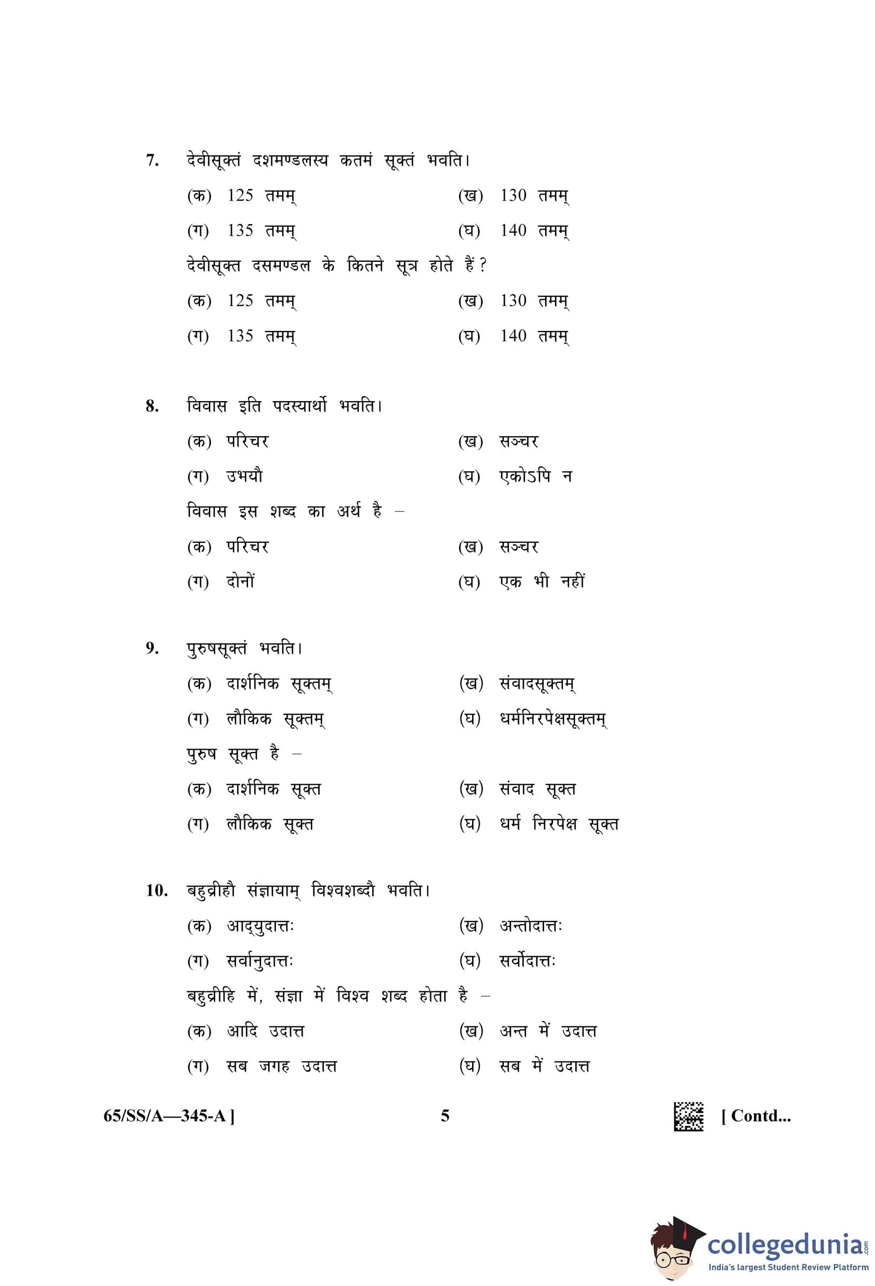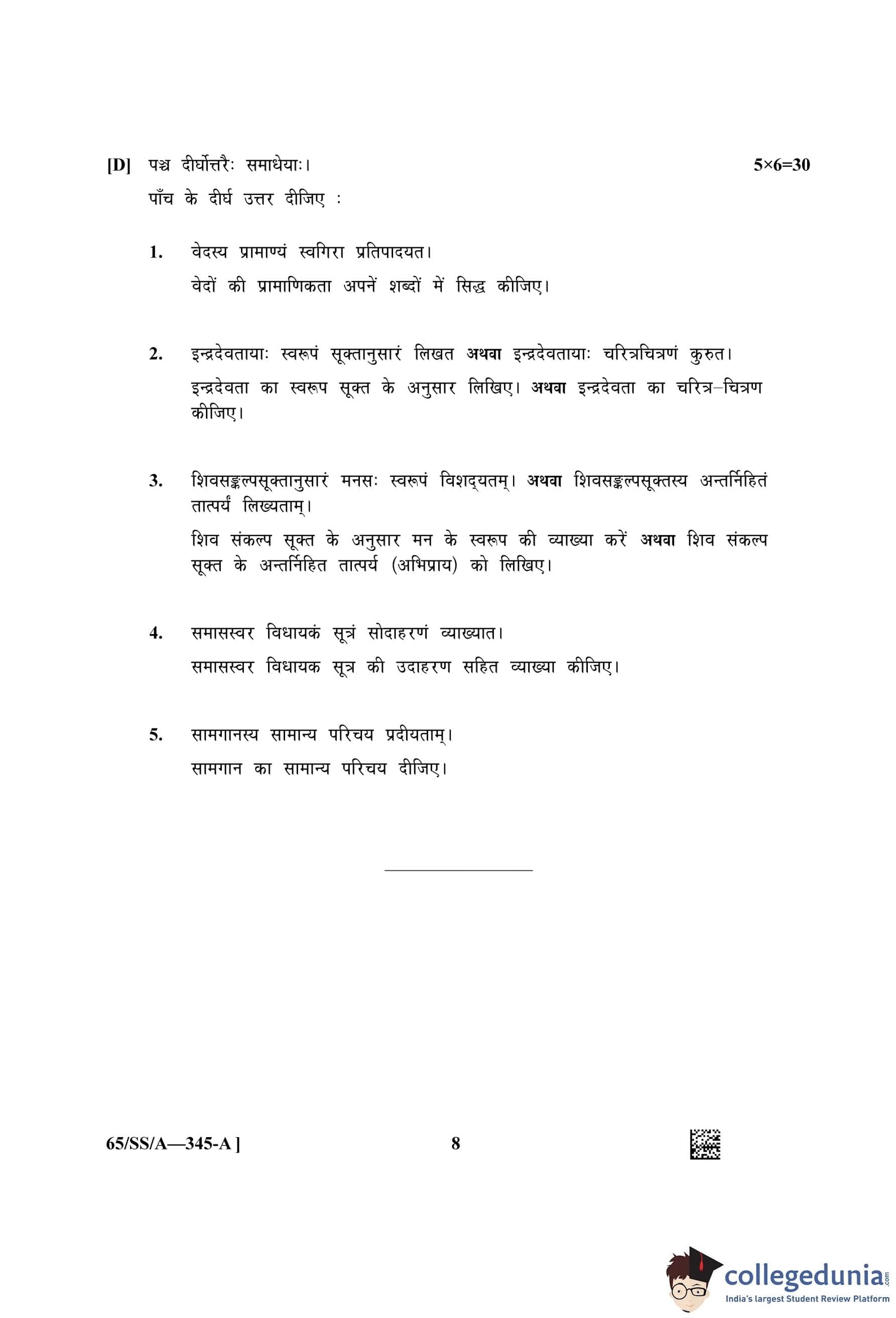 NIOS Class 12 Veda Adhyayan (Set A) Question Paper 2023 with Answer Key