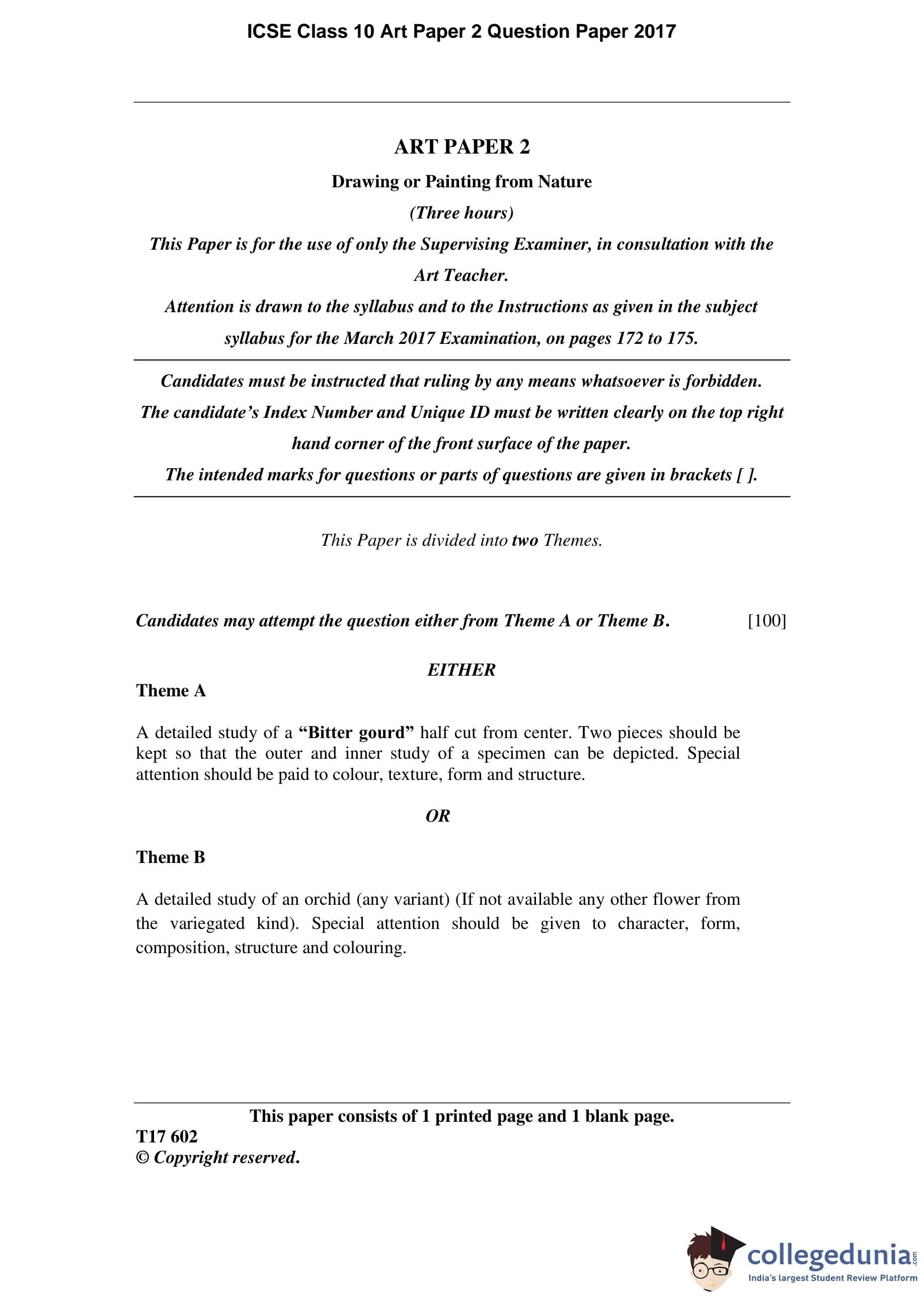 ICSE Class 10 Art Paper 2 Question Paper 2017 with Answer Key
