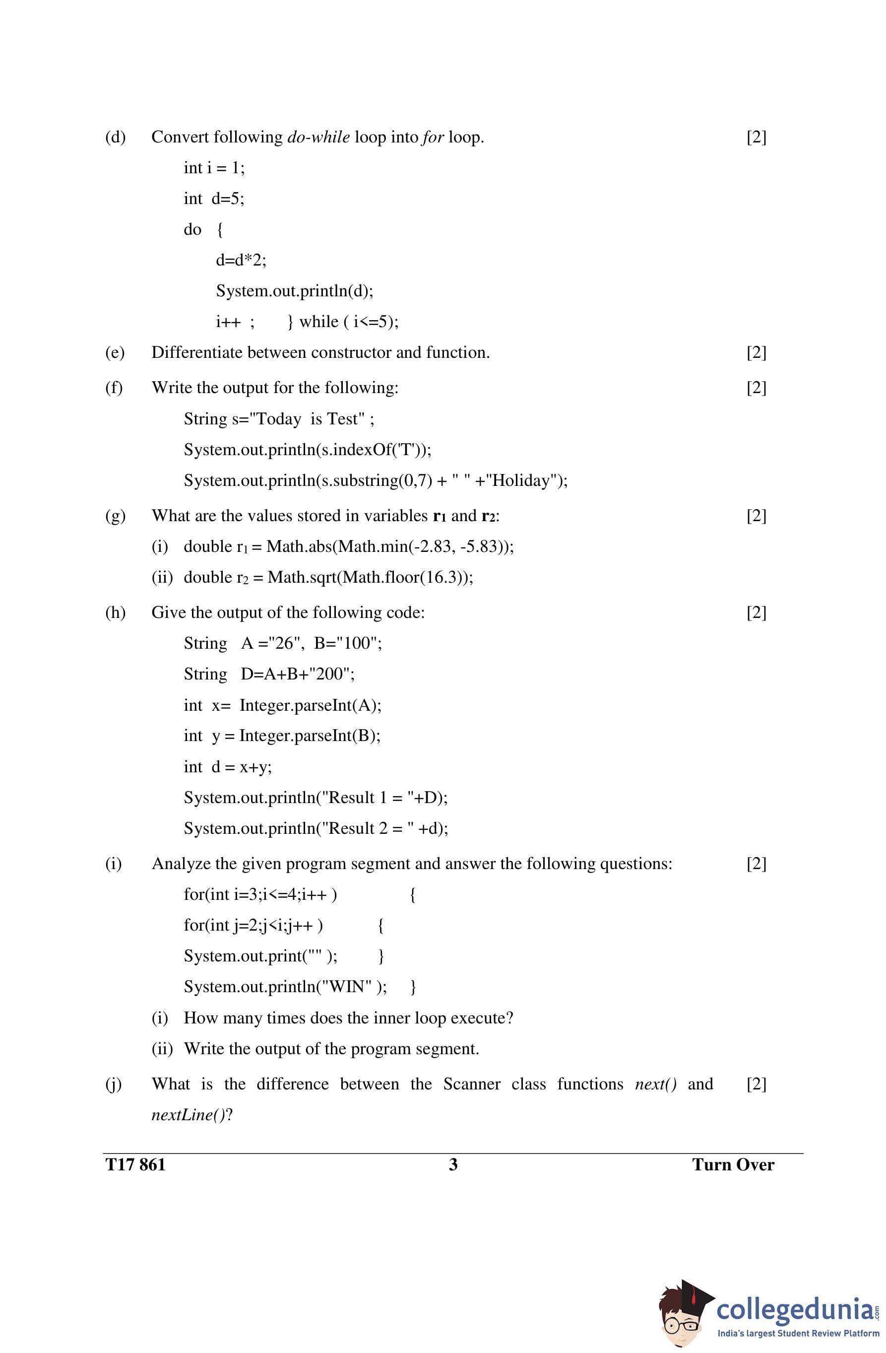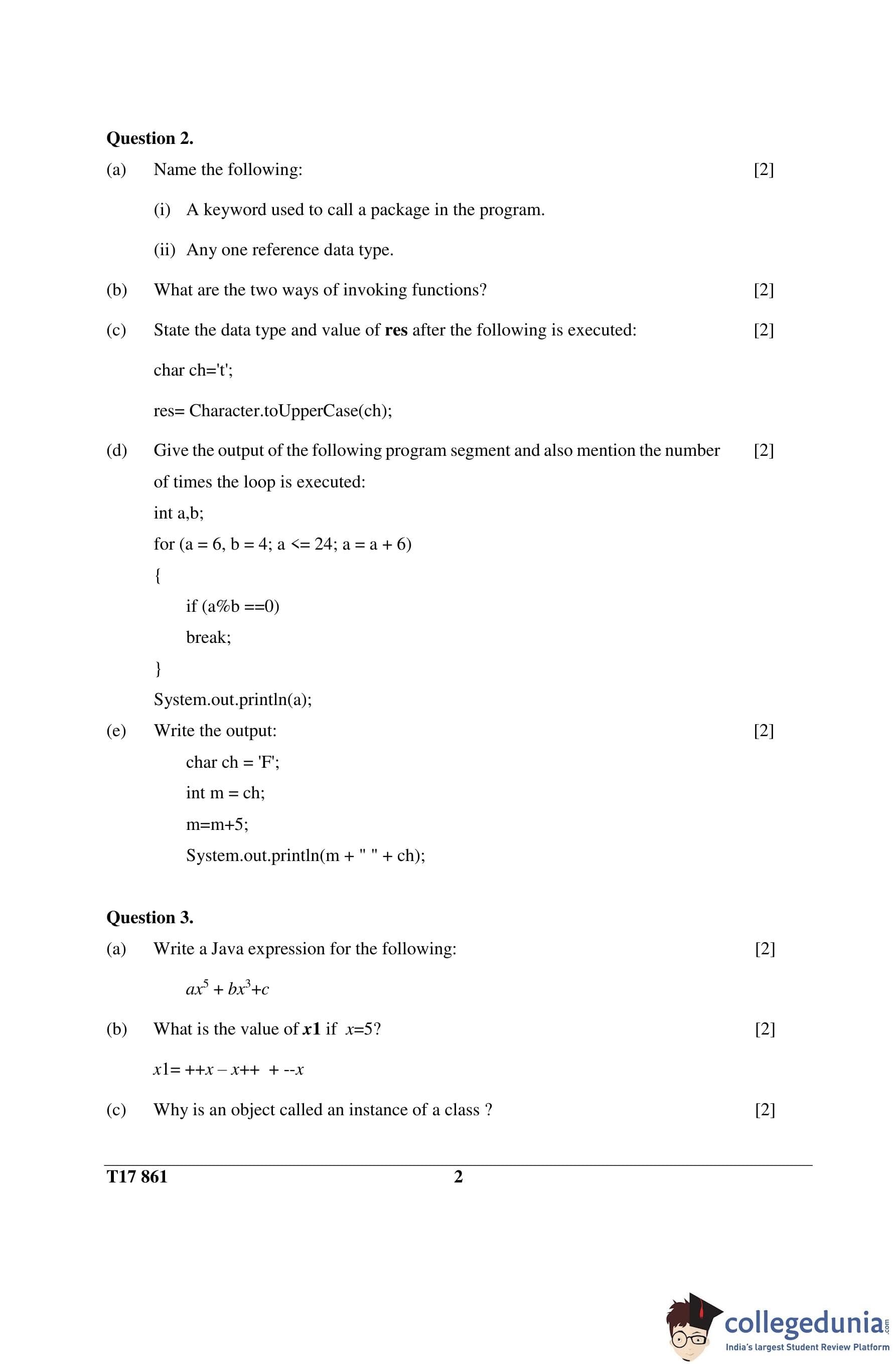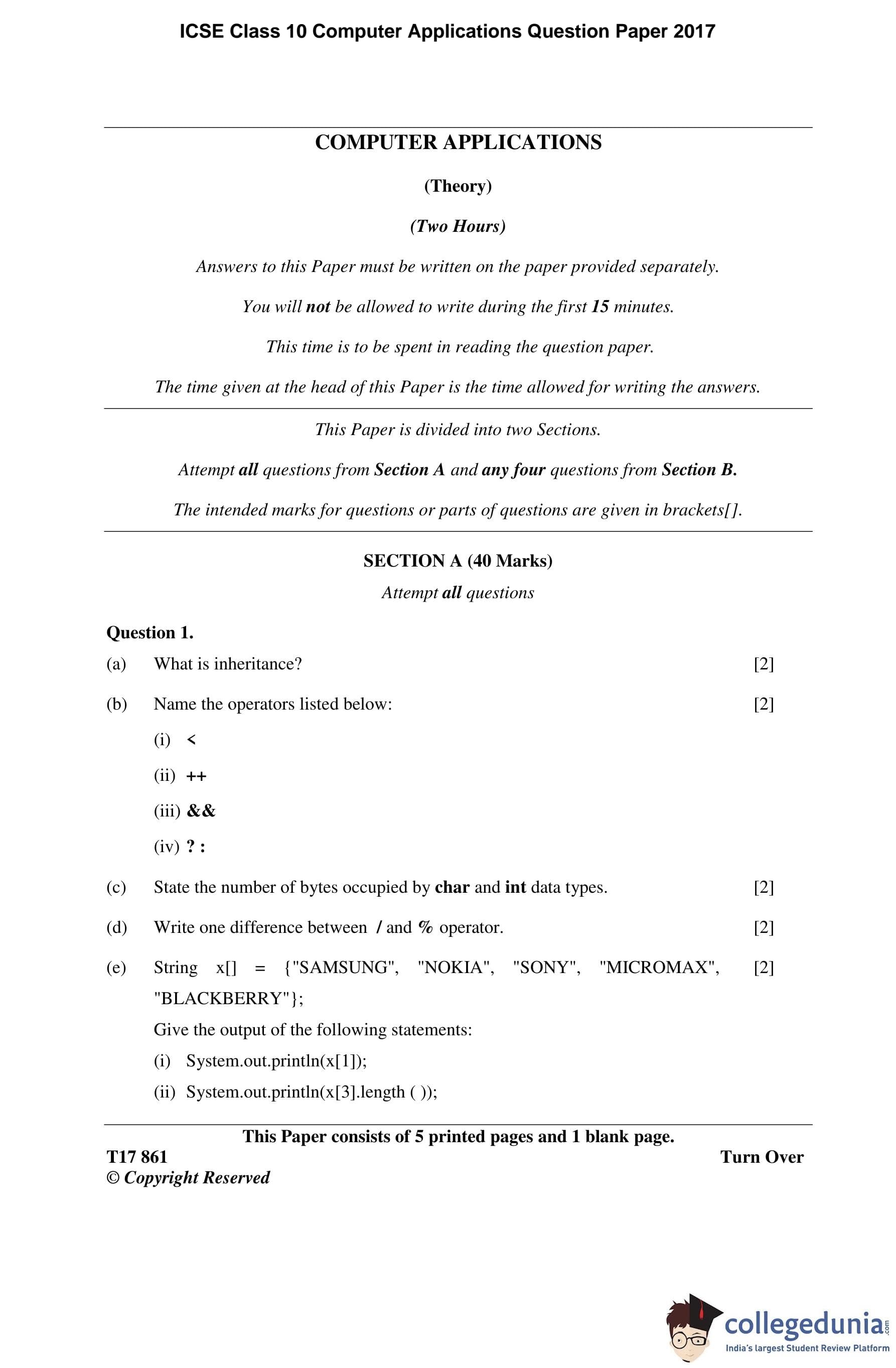 ICSE Class 10 Computer Applications Question Paper 2017 with Answer Key