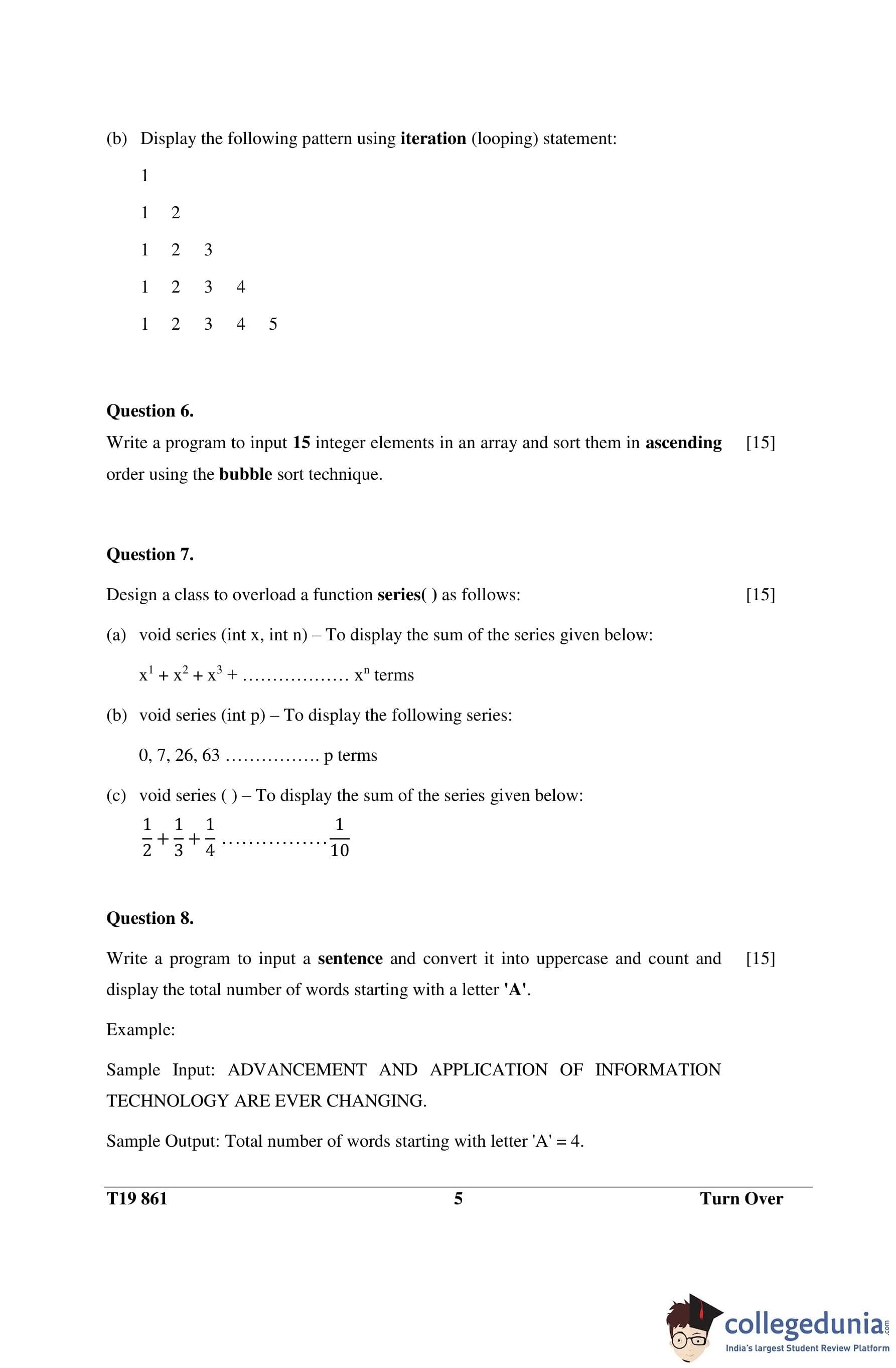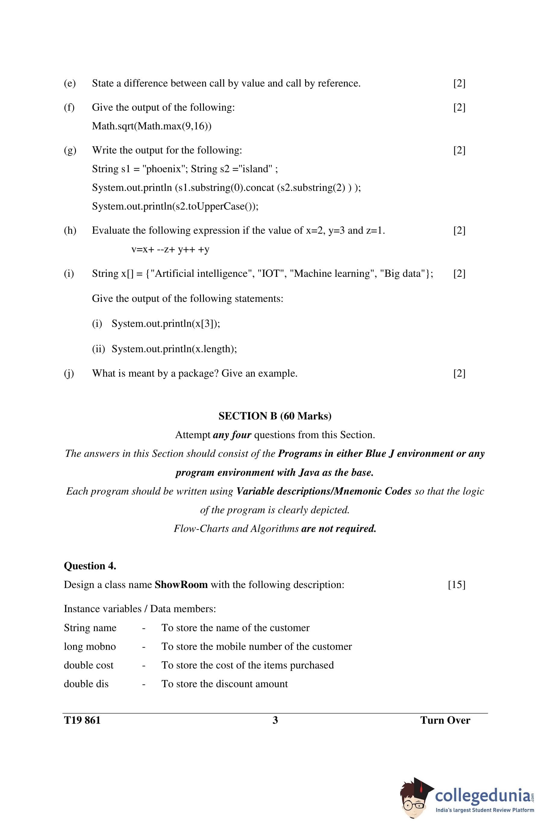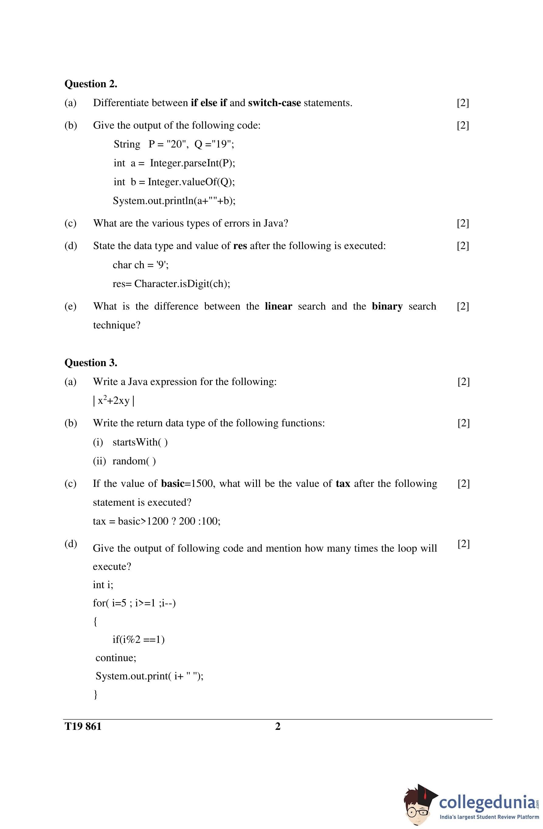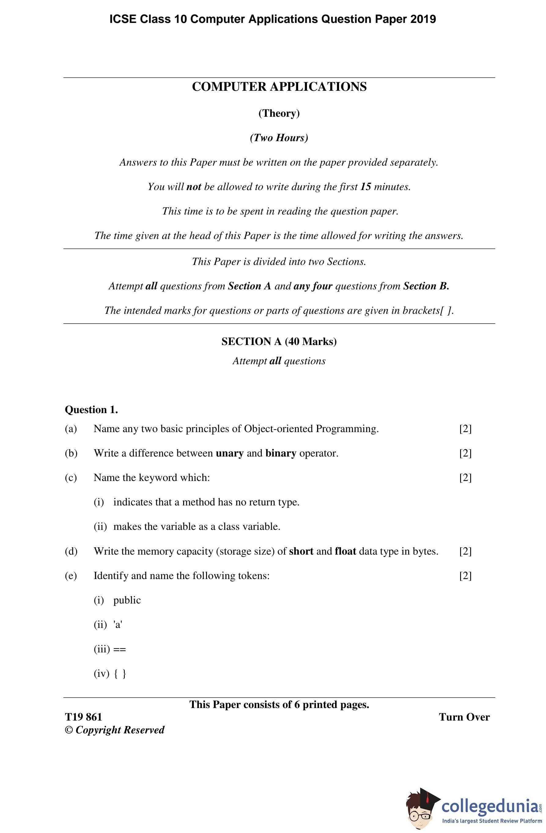 ICSE Class 10 Computer Applications Question Paper 2019 with Answer Key
