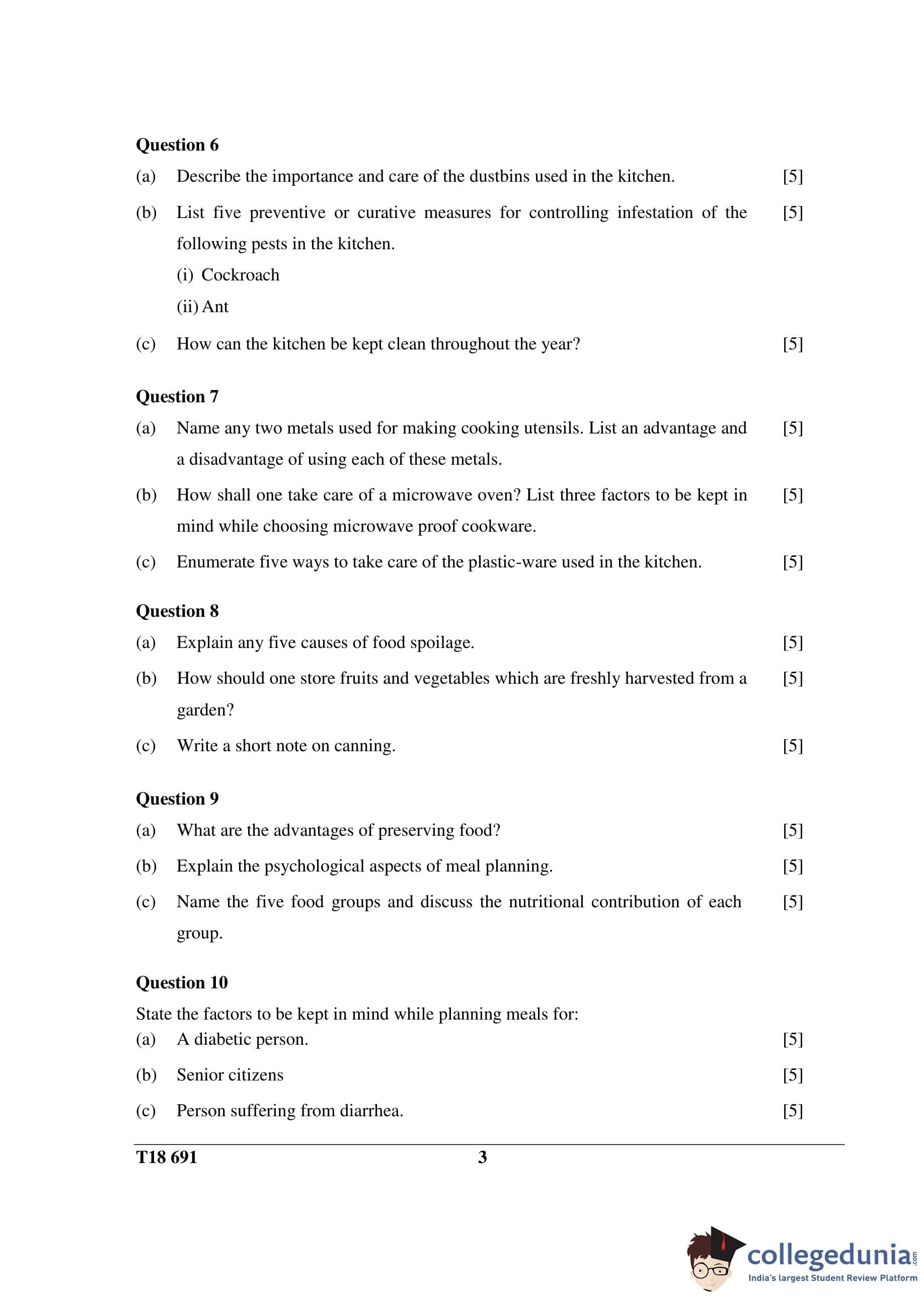 ICSE Class 10 Cookery Question Paper 2018 with Answer Key