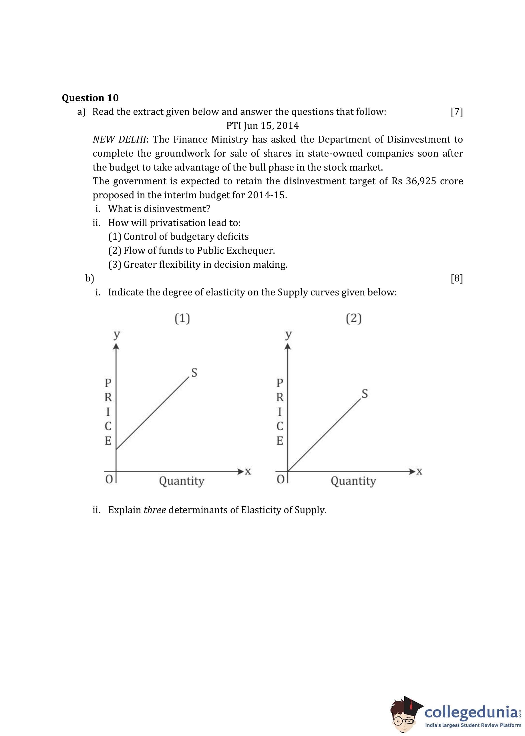 ICSE Class 10 Economic Applications Question Paper 2015 with Answer Key