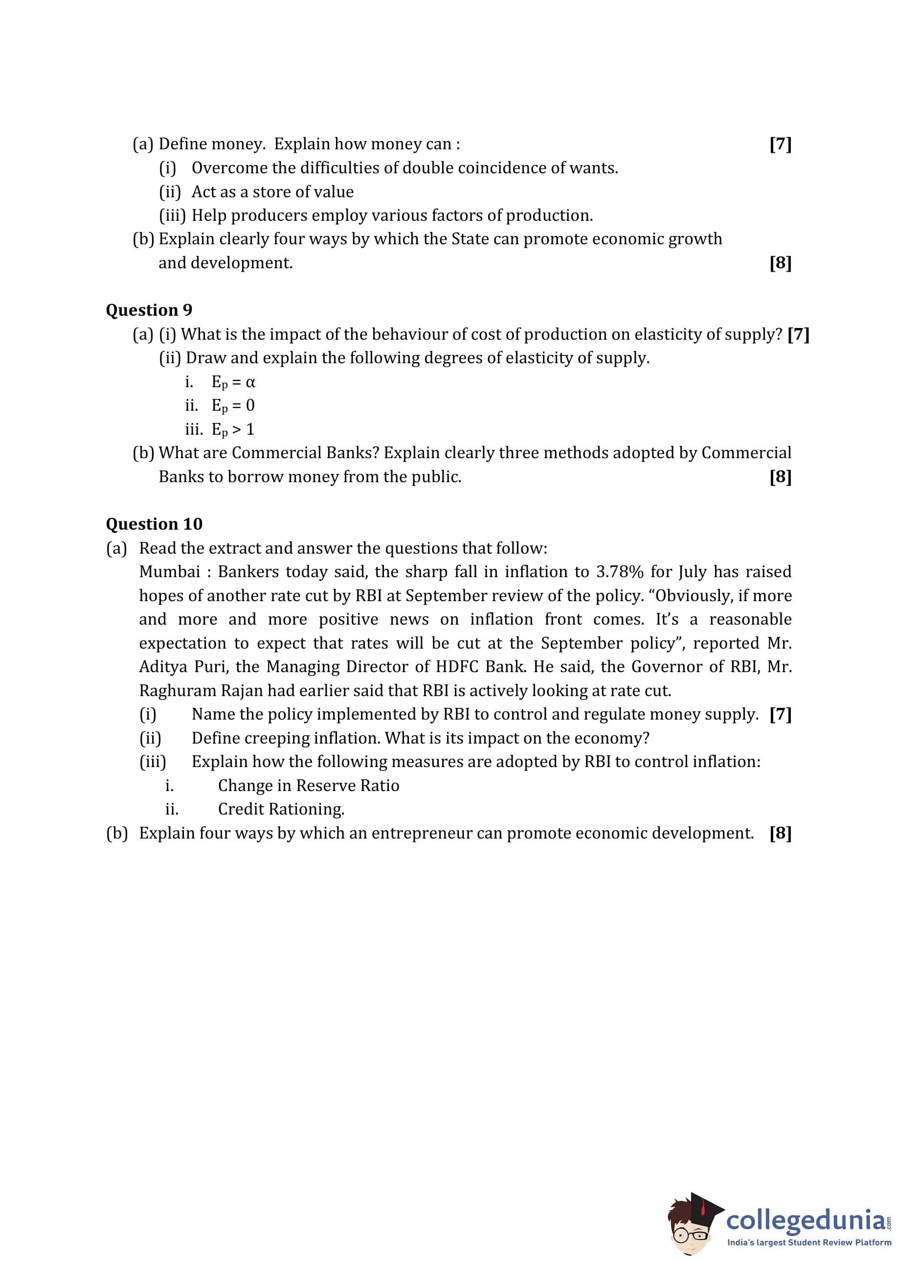 ICSE Class 10 Economic Applications Question Paper 2016 with Answer Key