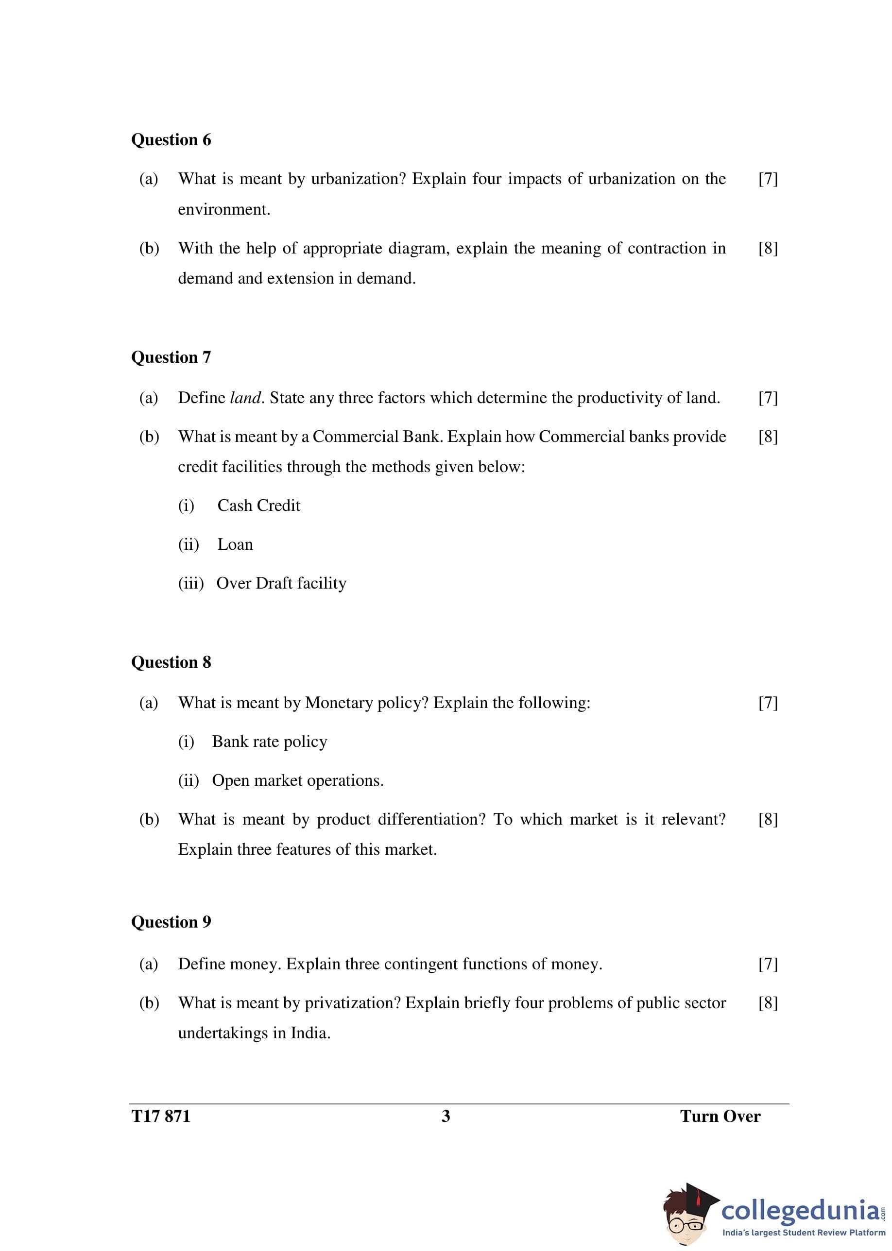 ICSE Class 10 Economic Applications Question Paper 2017 with Answer Key