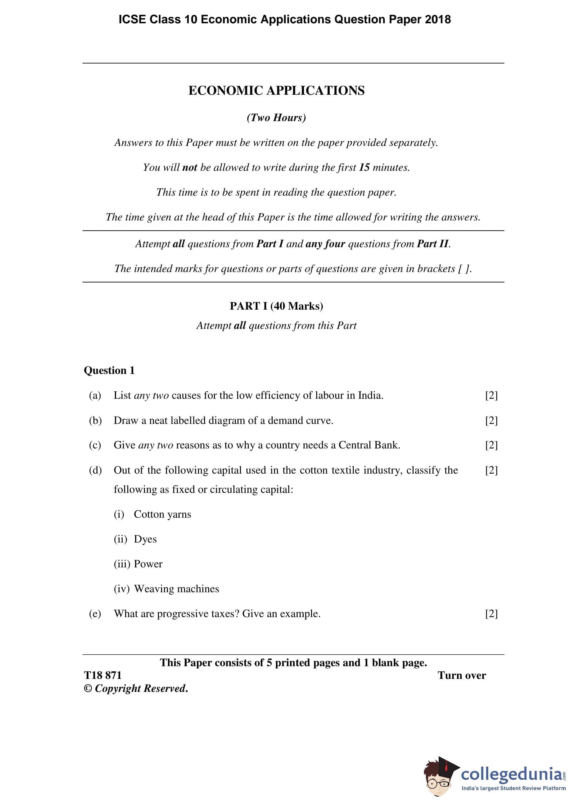 | ICSE Class 10 Economic Applications Question Paper 2018 PDF | ICSE Class 10 Economic Applications Answer Key 2018 PDF |