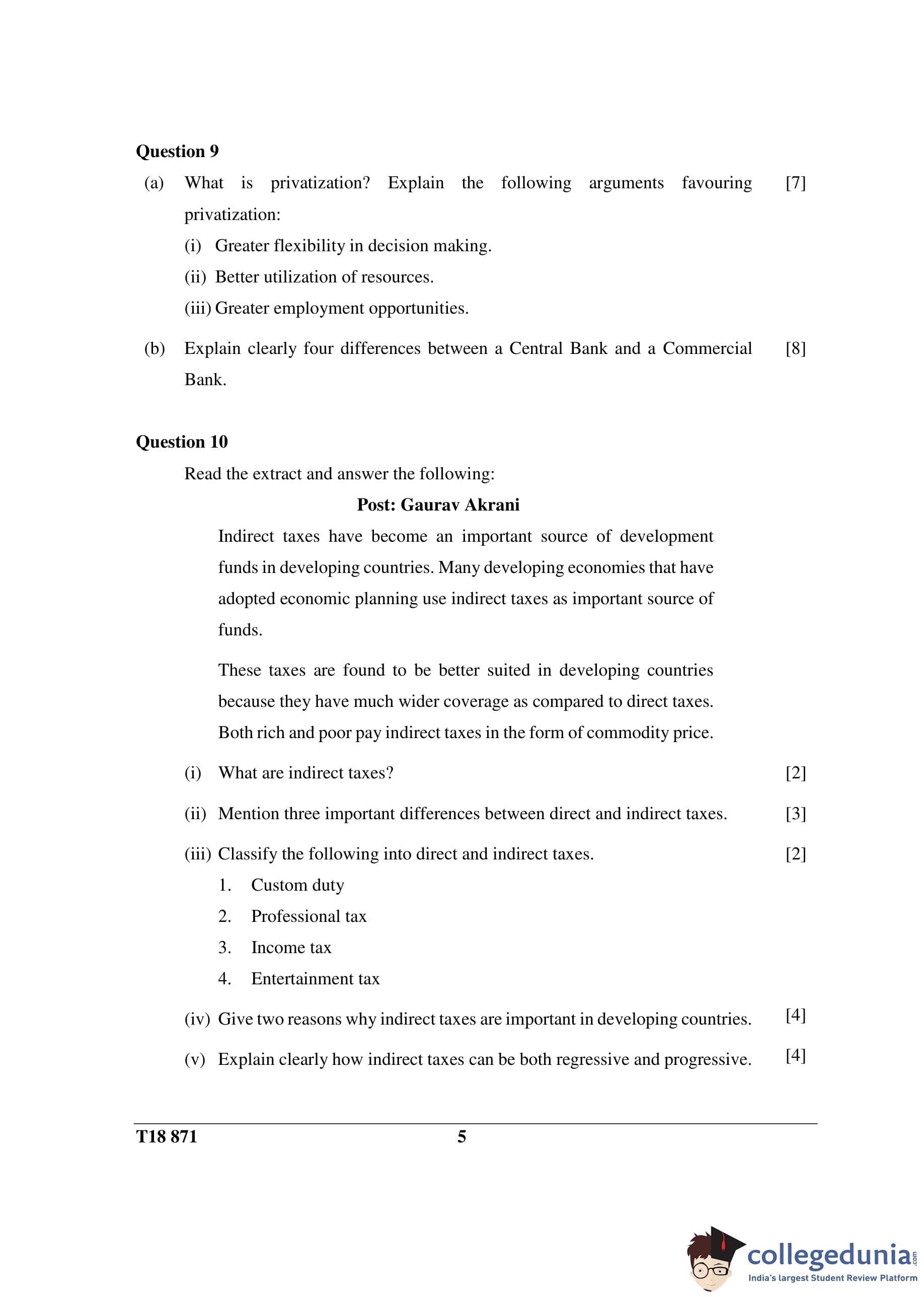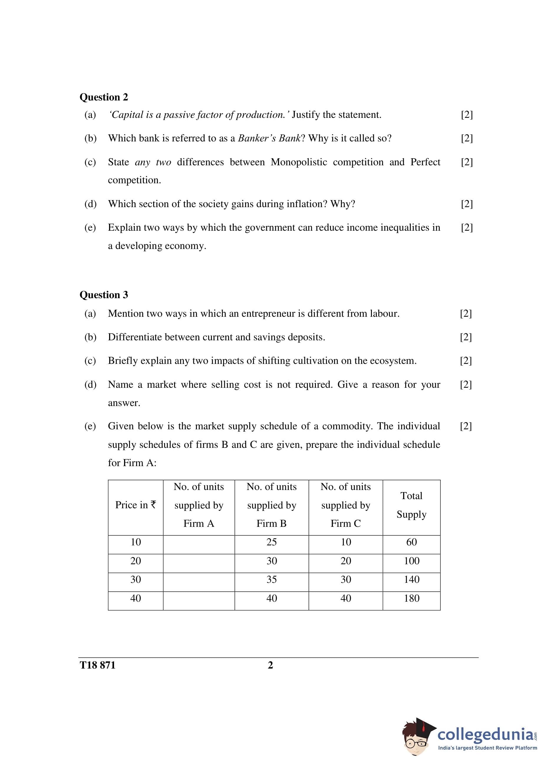 ICSE Class 10 Economic Applications Question Paper 2018 with Answer Key