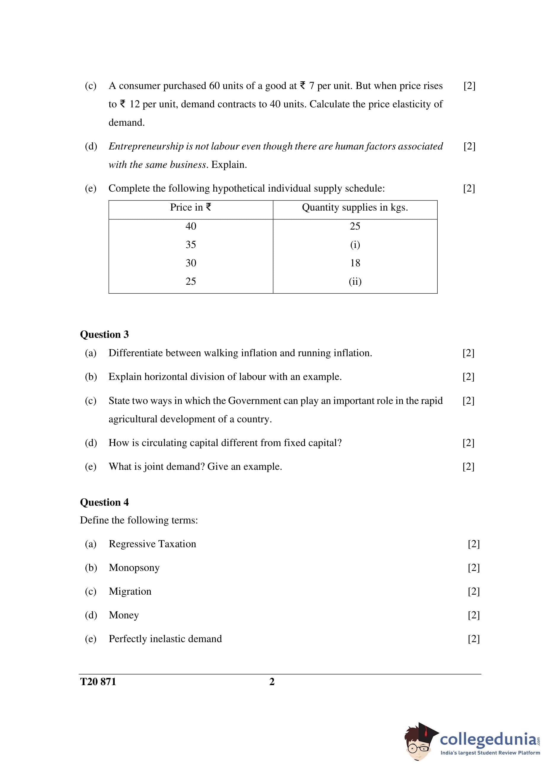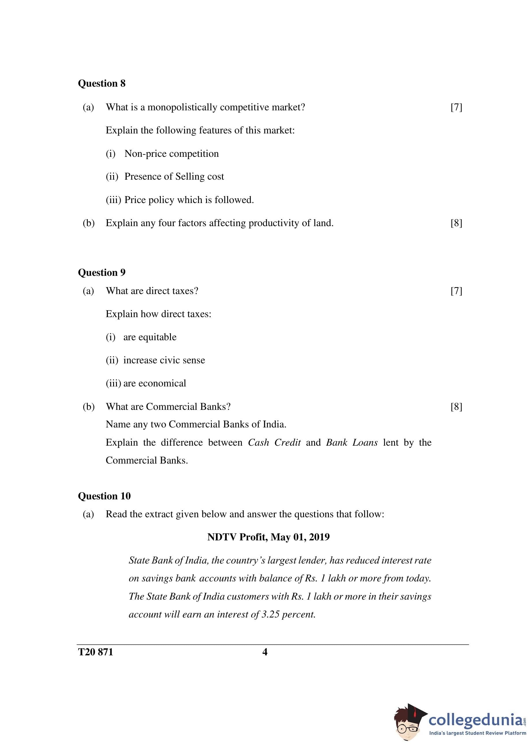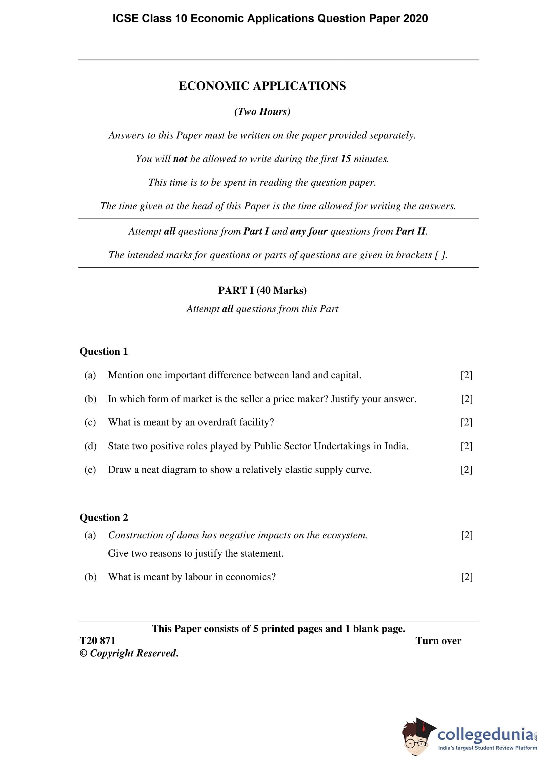 ICSE Class 10 Economic Applications Question Paper 2020 with Answer Key