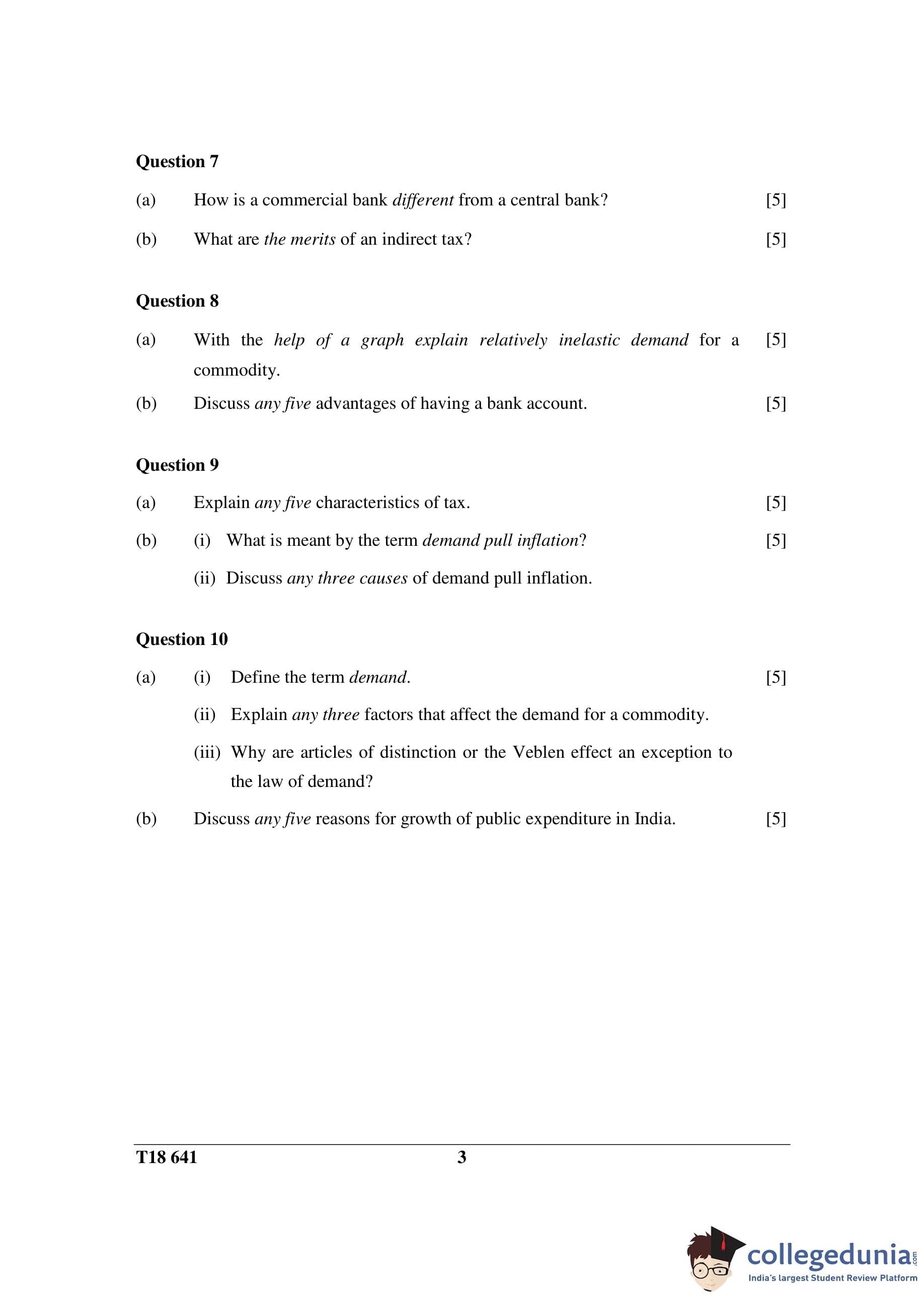 ICSE Class 10 Economics Question Paper 2018 with Answer Key