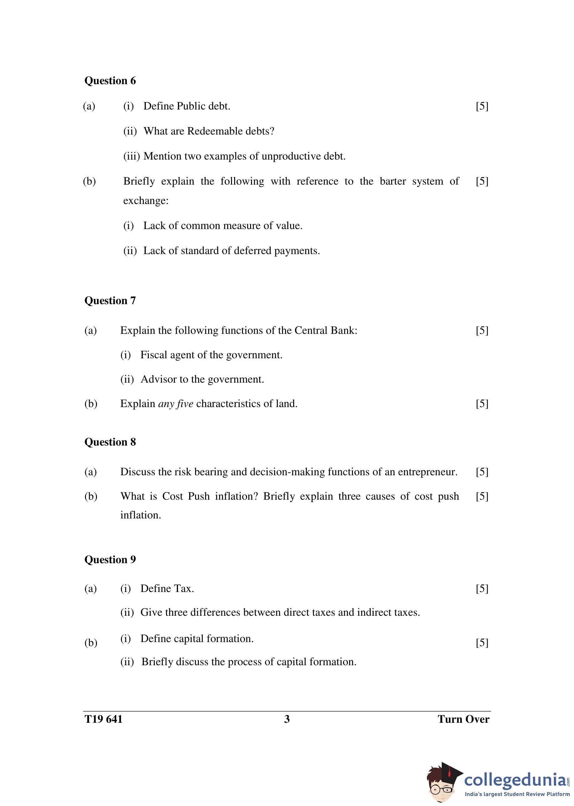 ICSE Class 10 Economics Question Paper 2019 with Answer Key