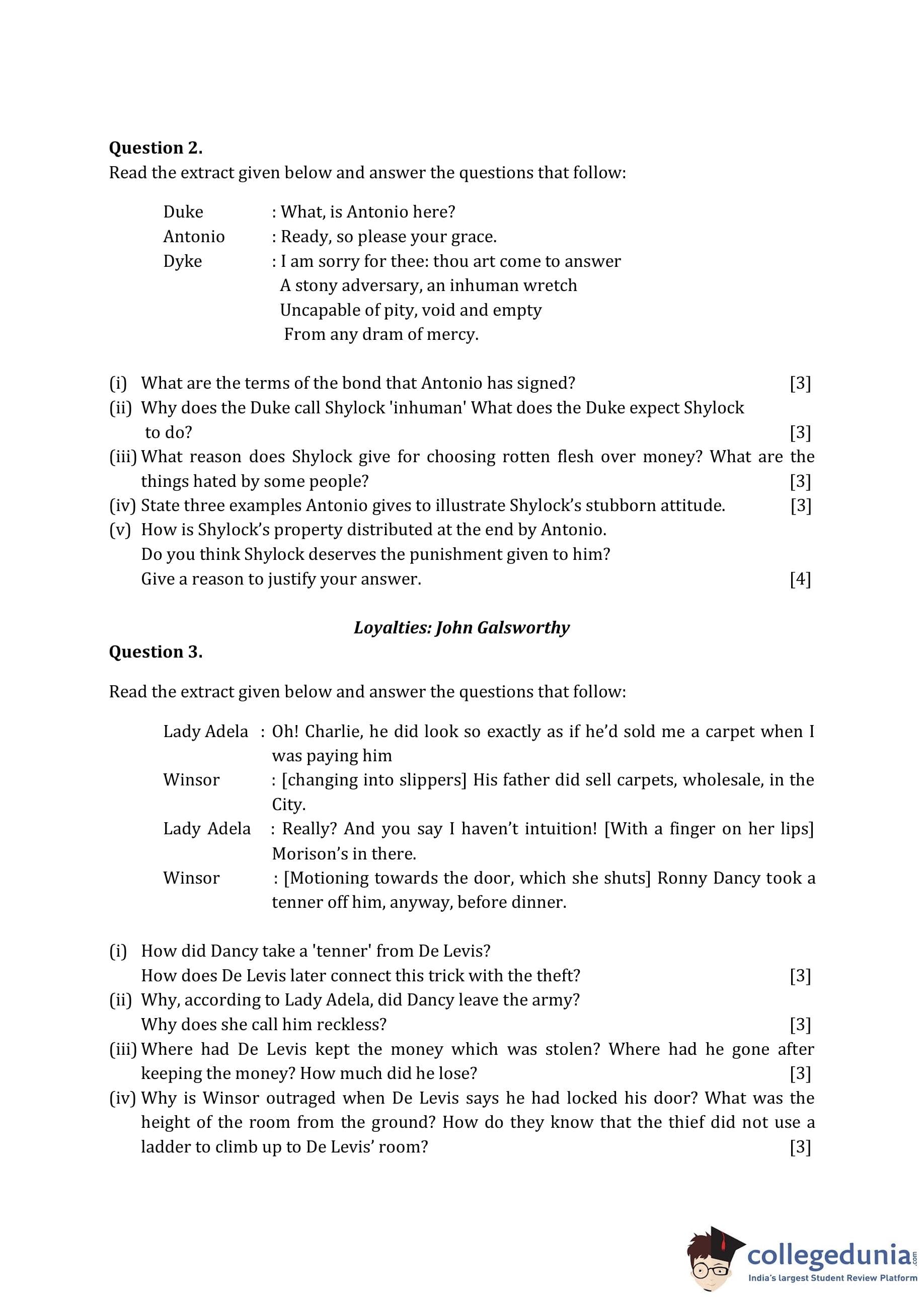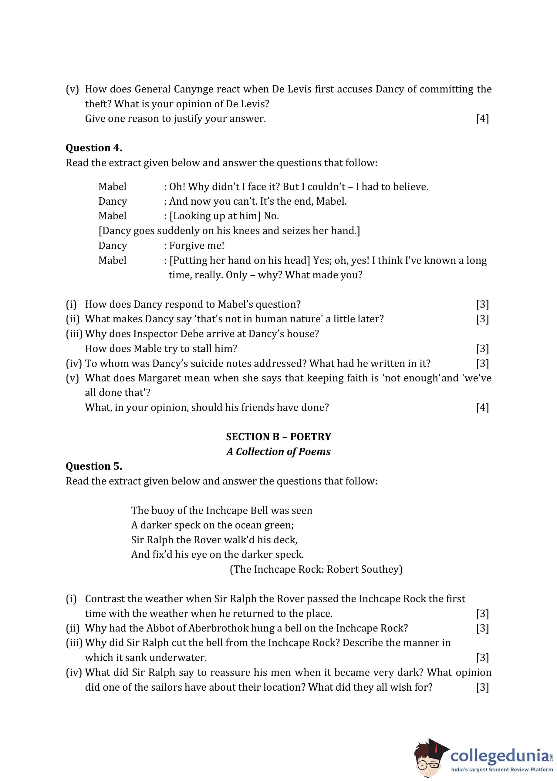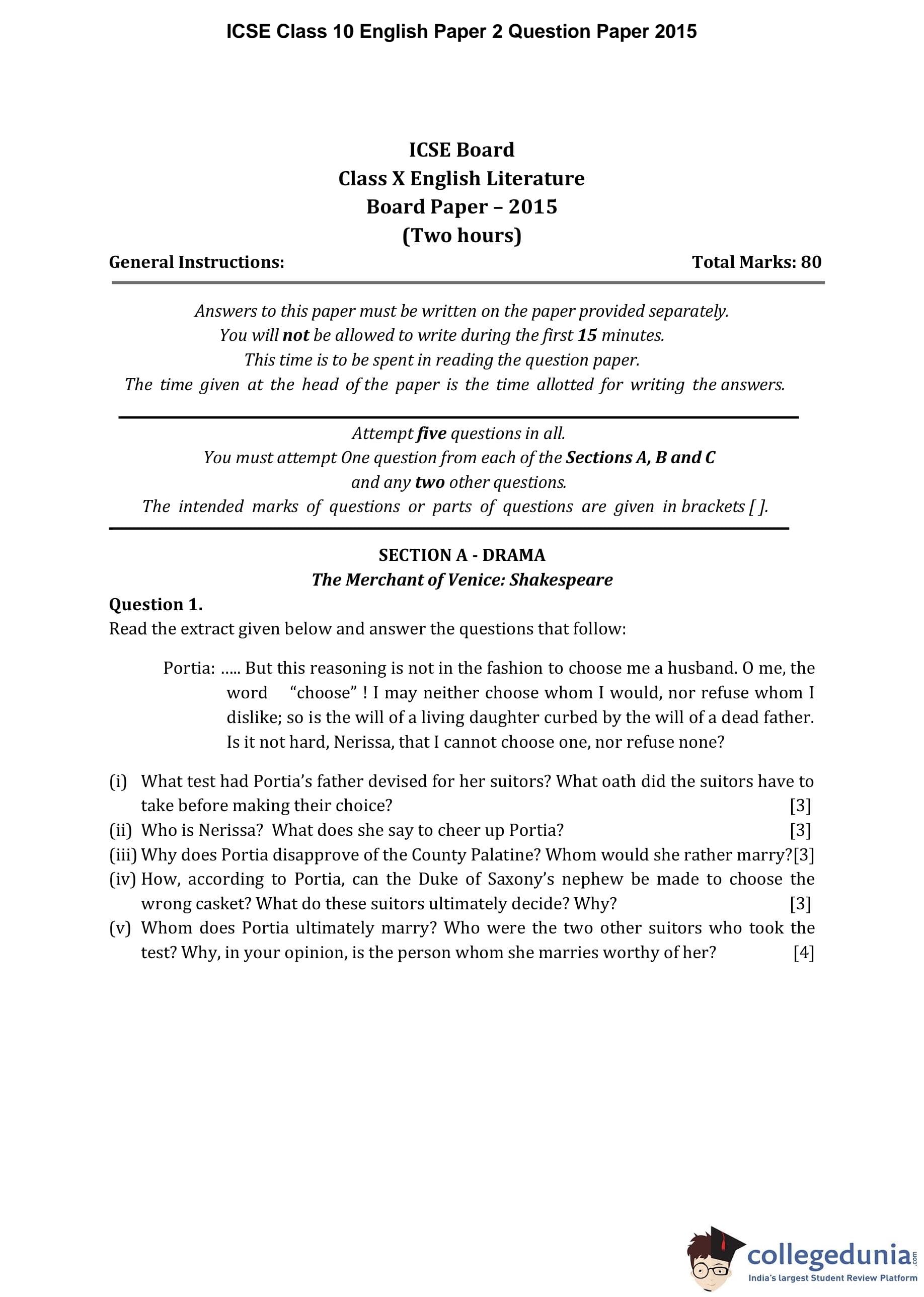 ICSE Class 10 English Paper 2 Question Paper 2015 with Answer Key