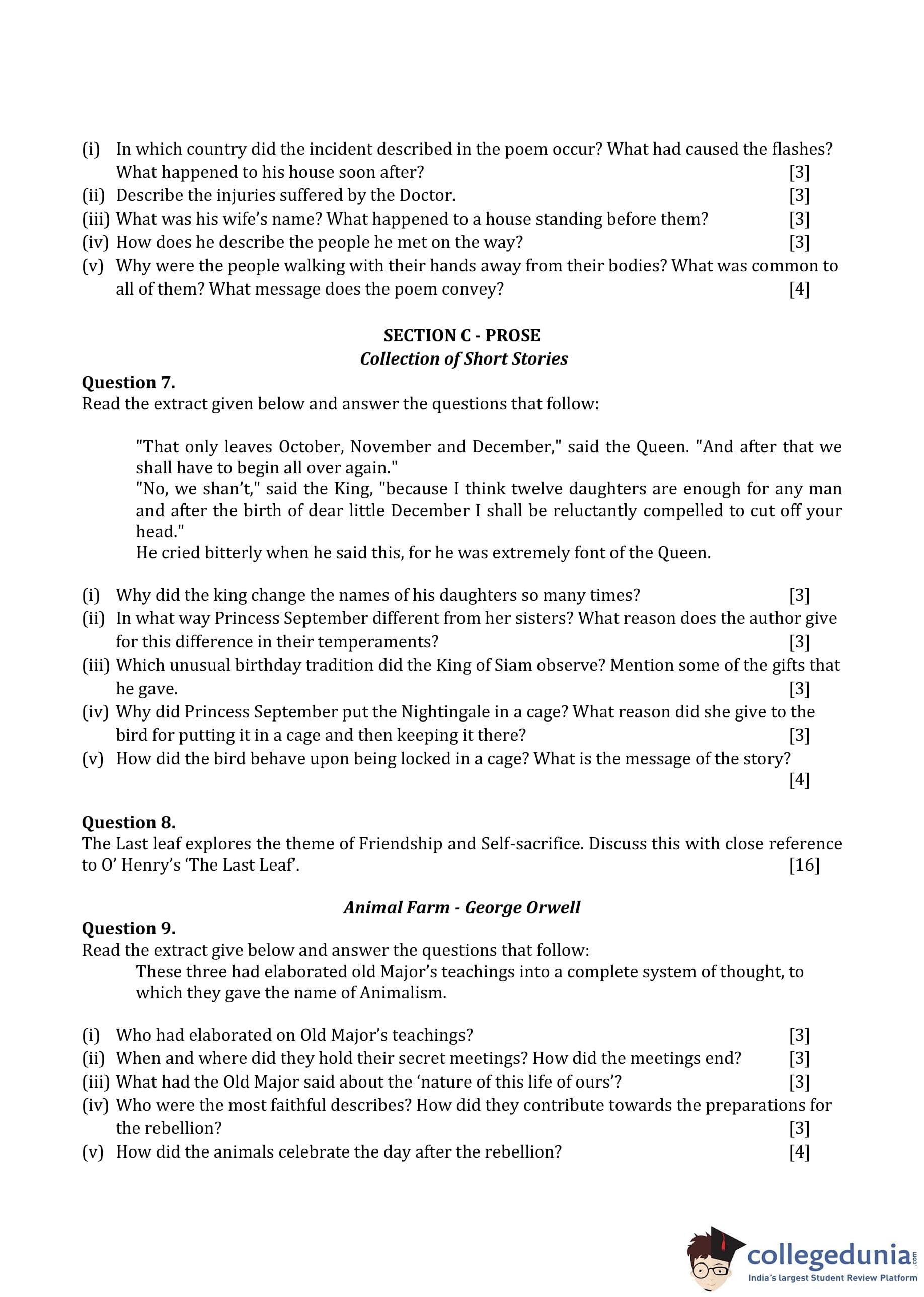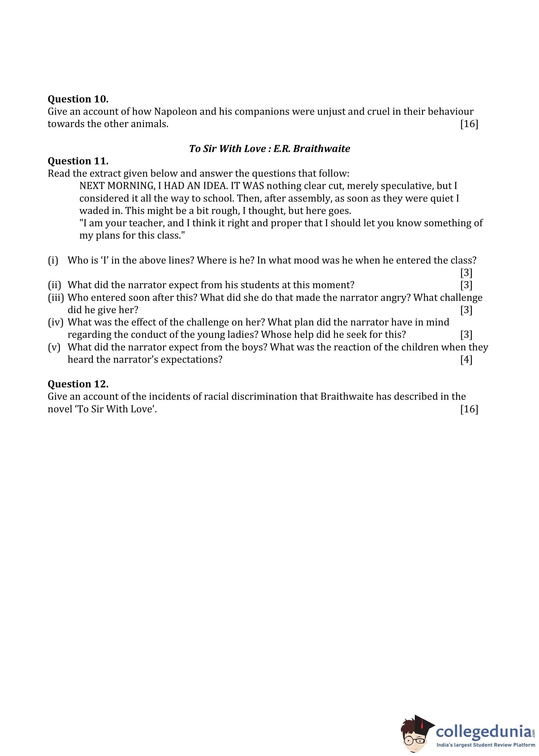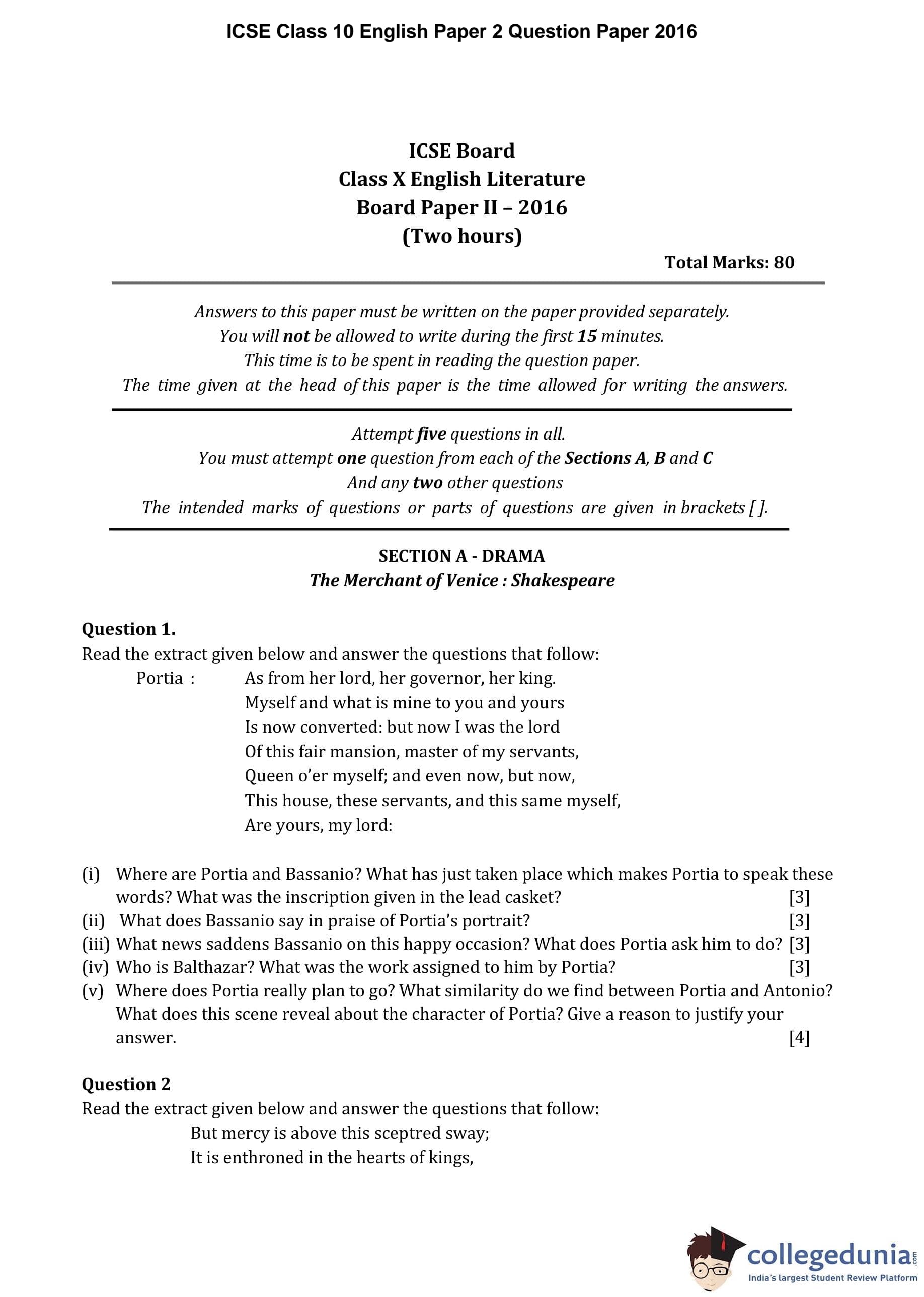 ICSE Class 10 English Paper 2 Question Paper 2016 with Answer Key