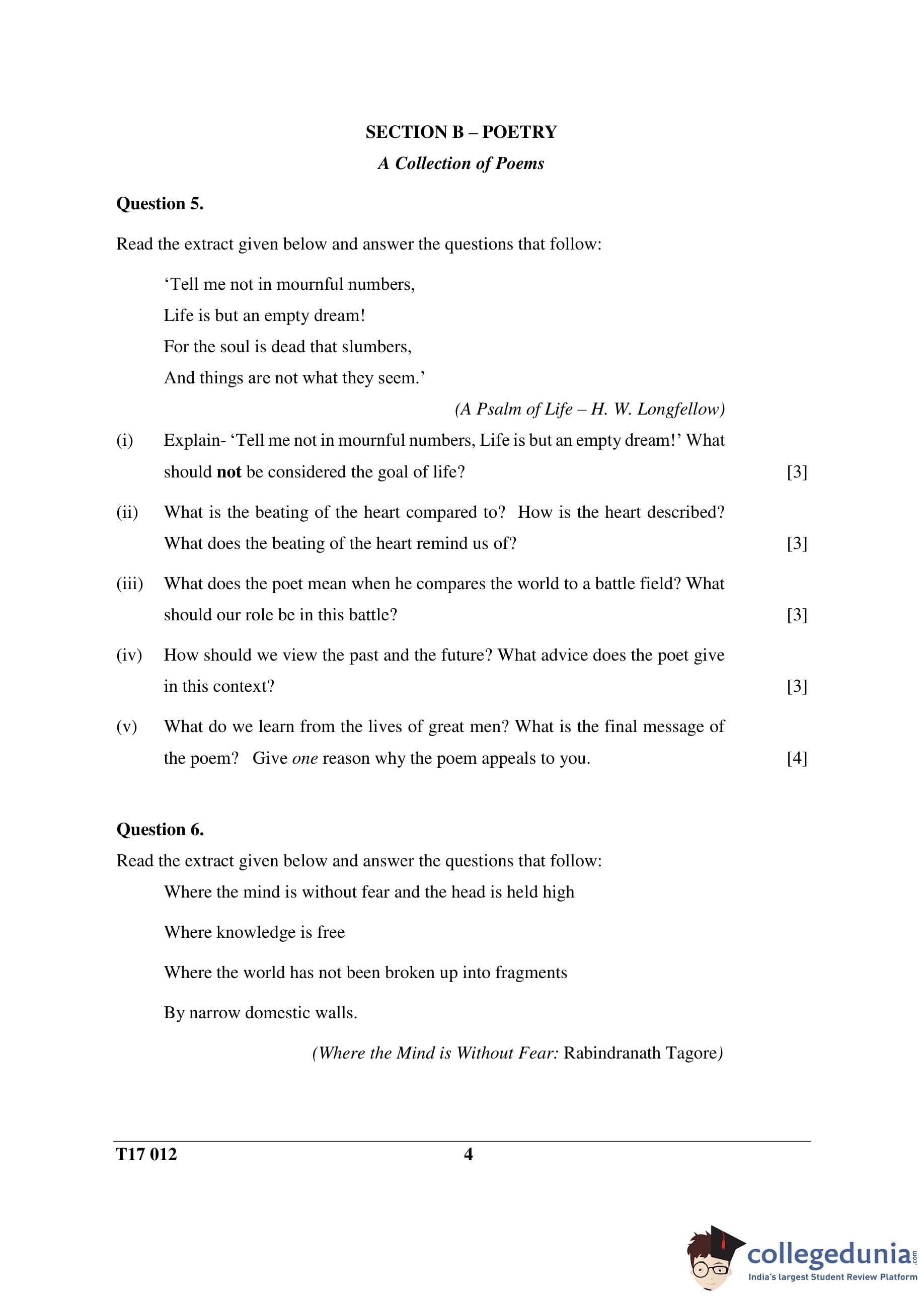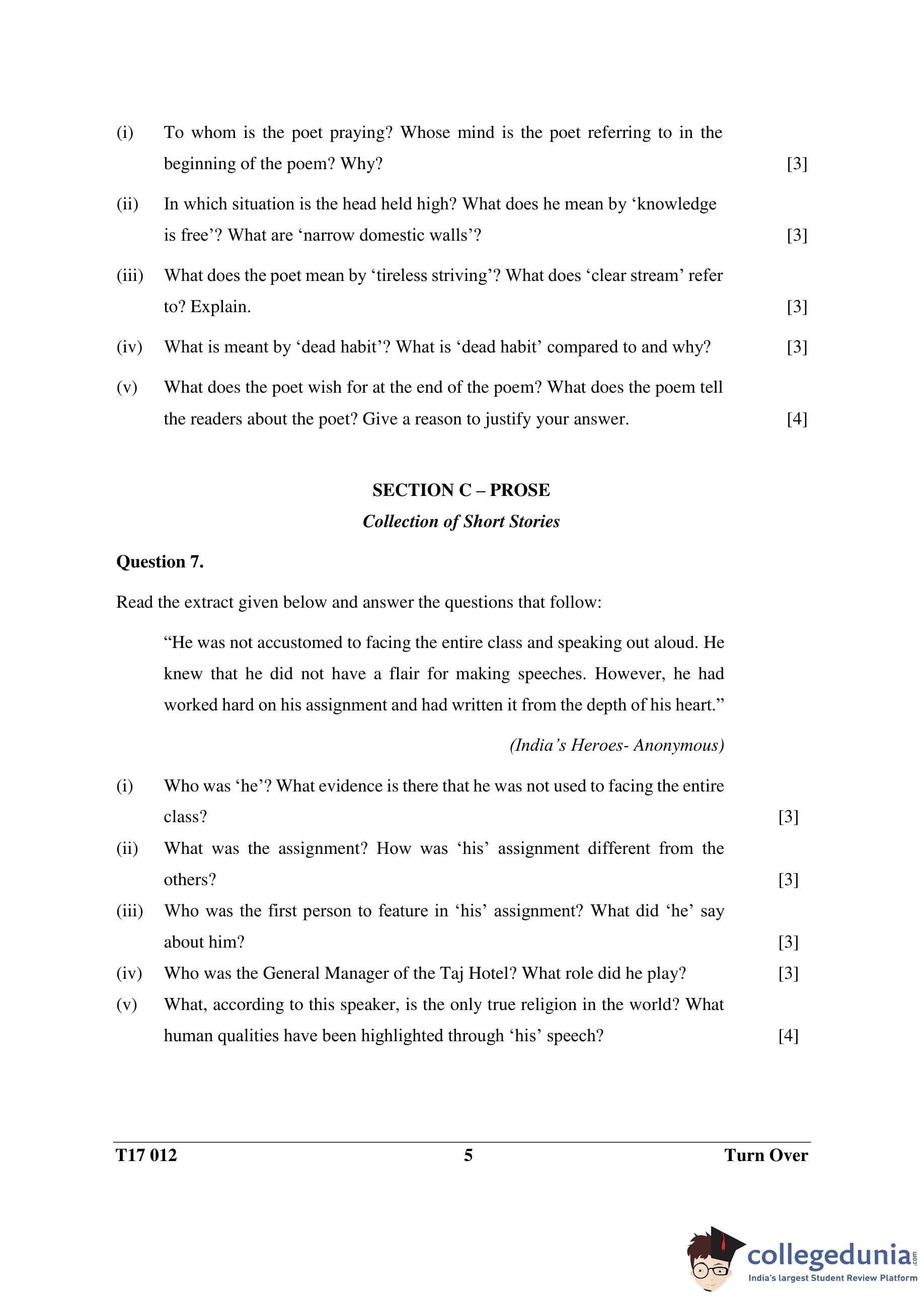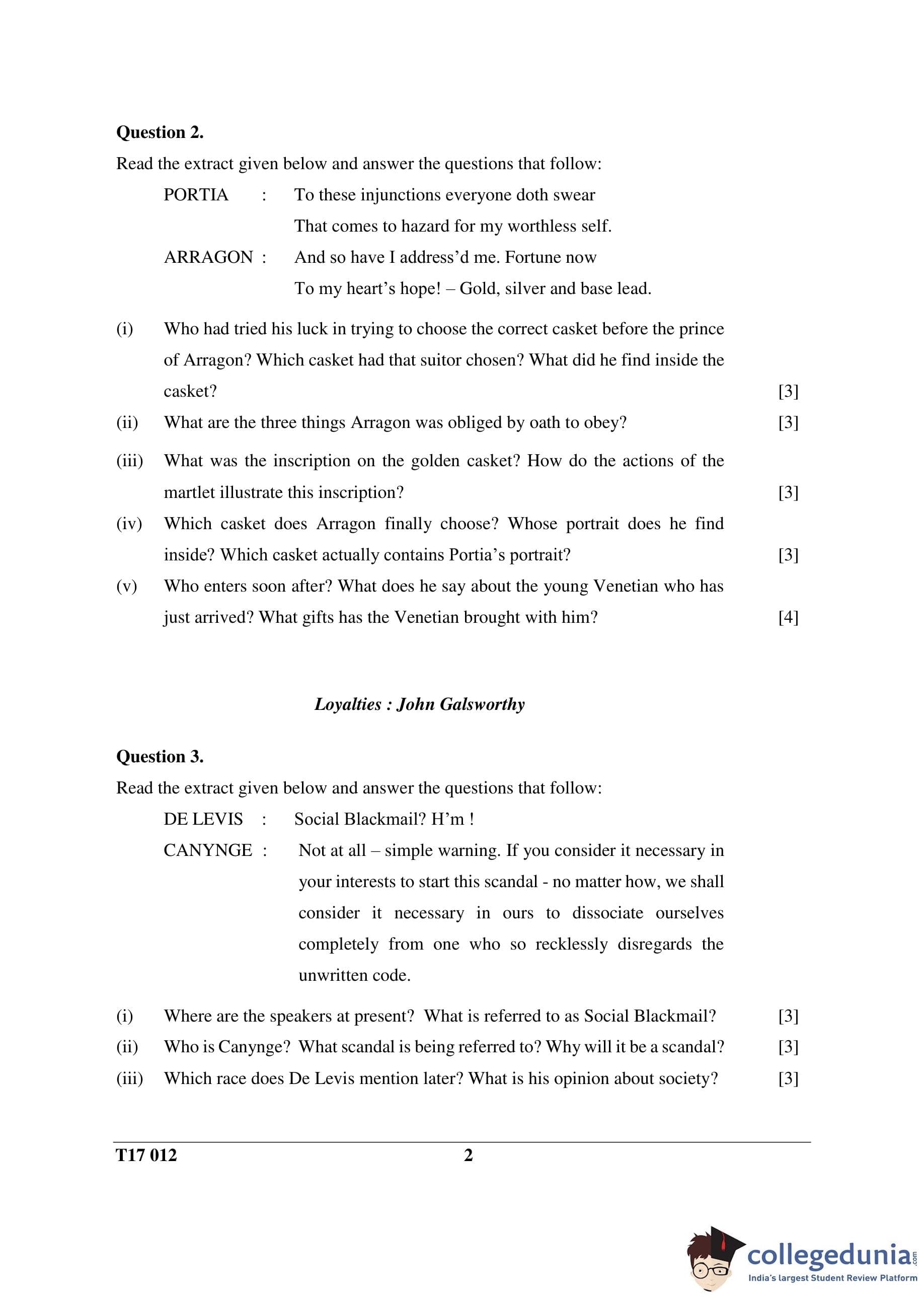 ICSE Class 10 English Paper 2 Question Paper 2017 with Answer Key