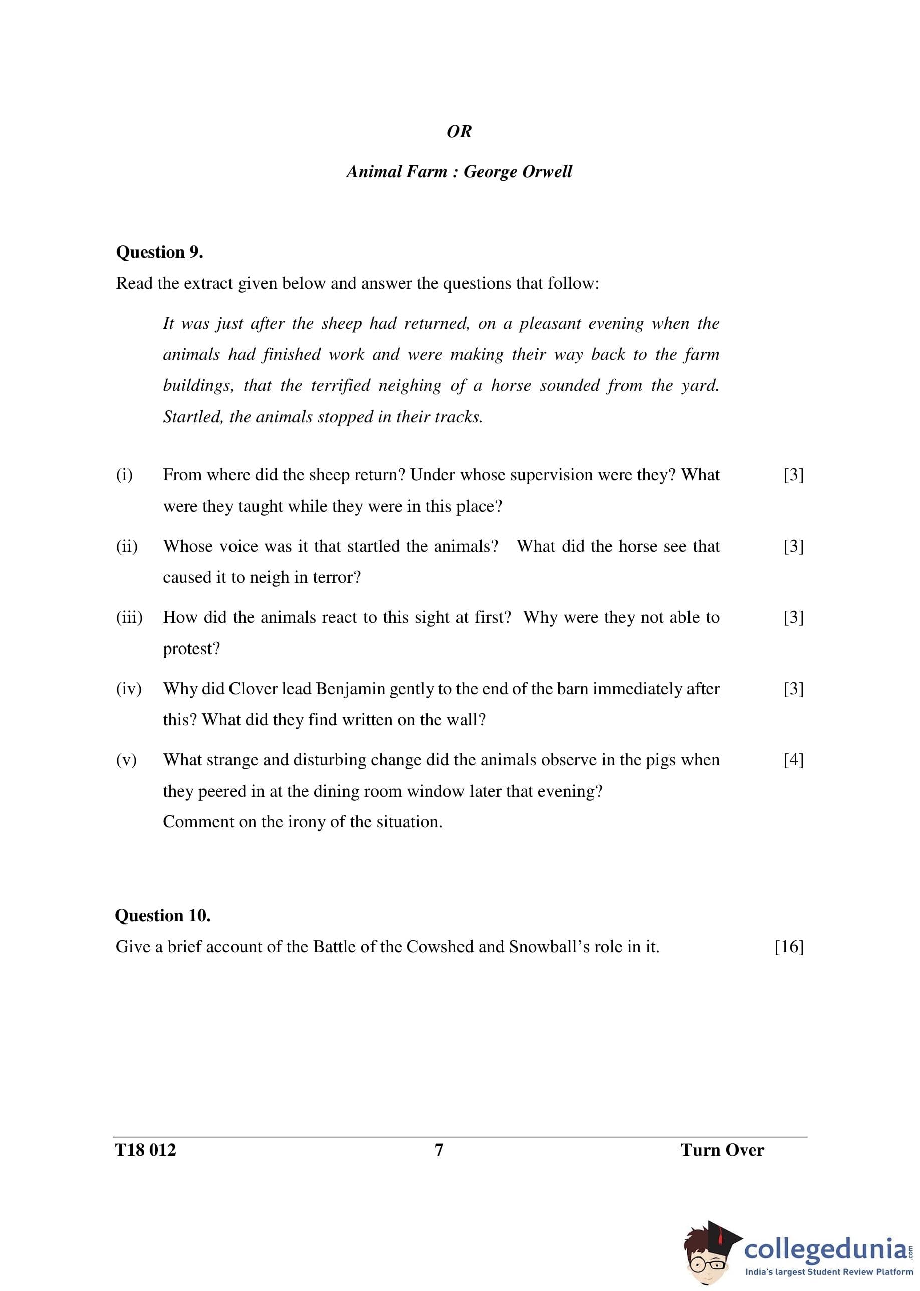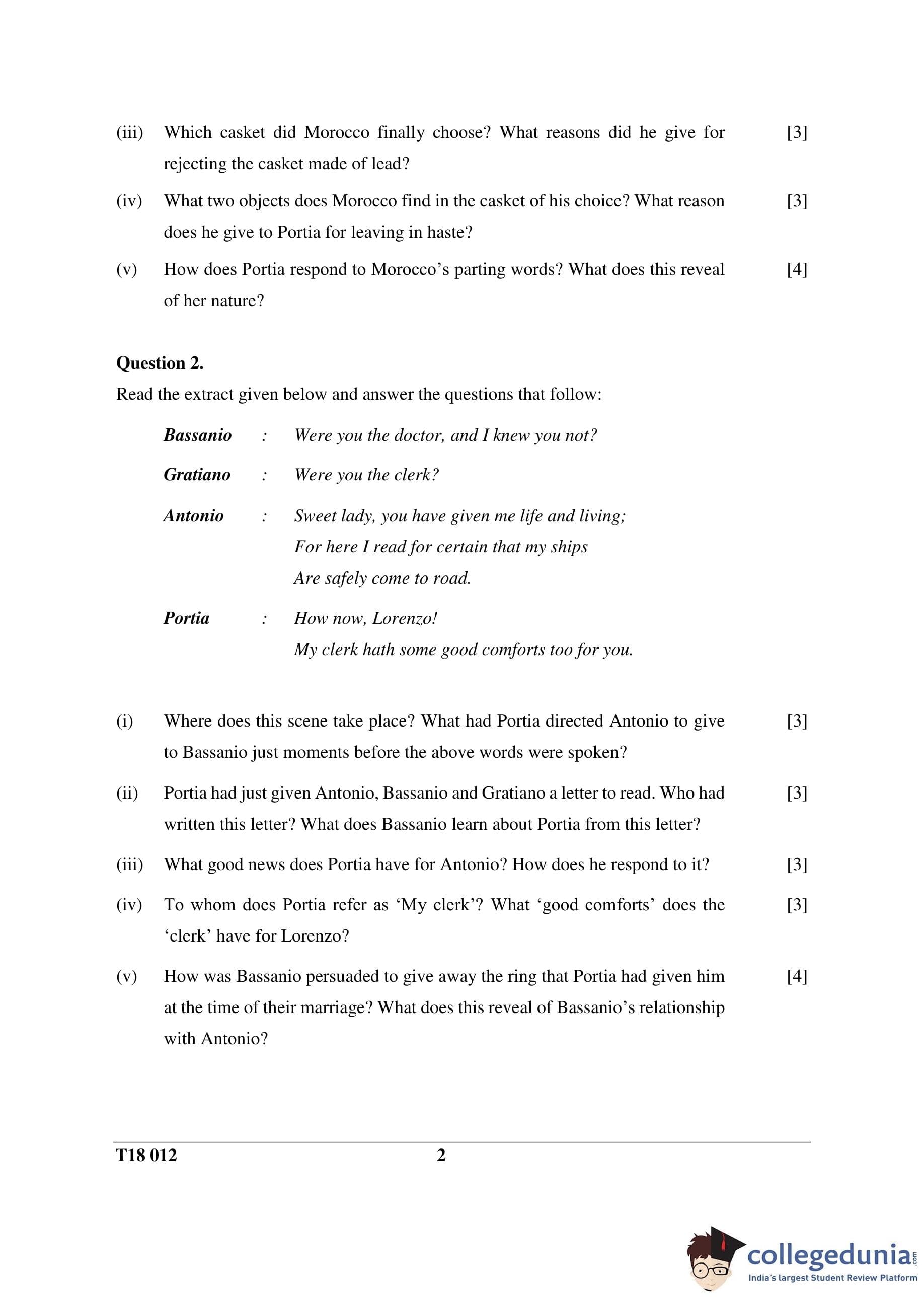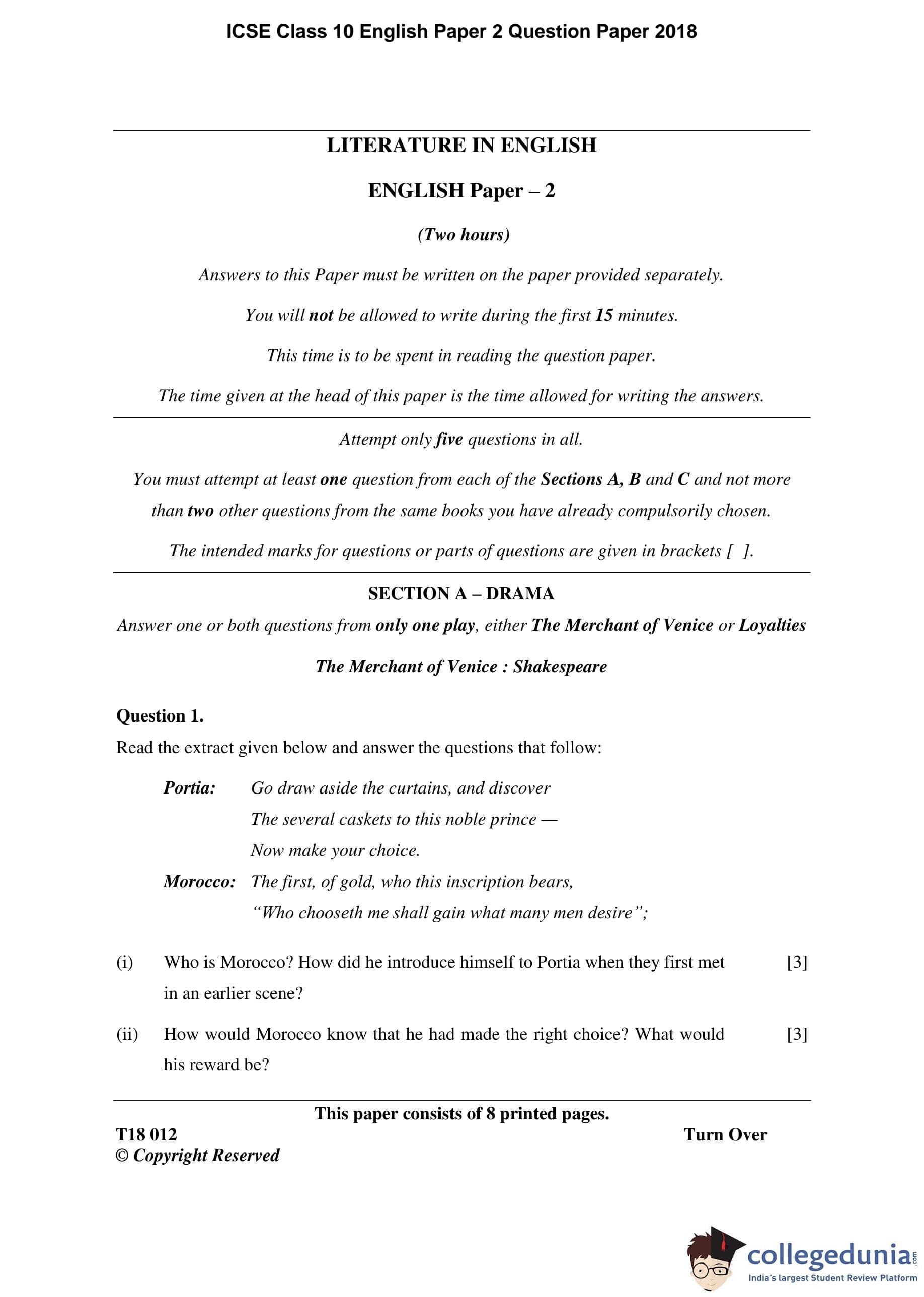 ICSE Class 10 English Paper 2 Question Paper 2018 with Answer Key