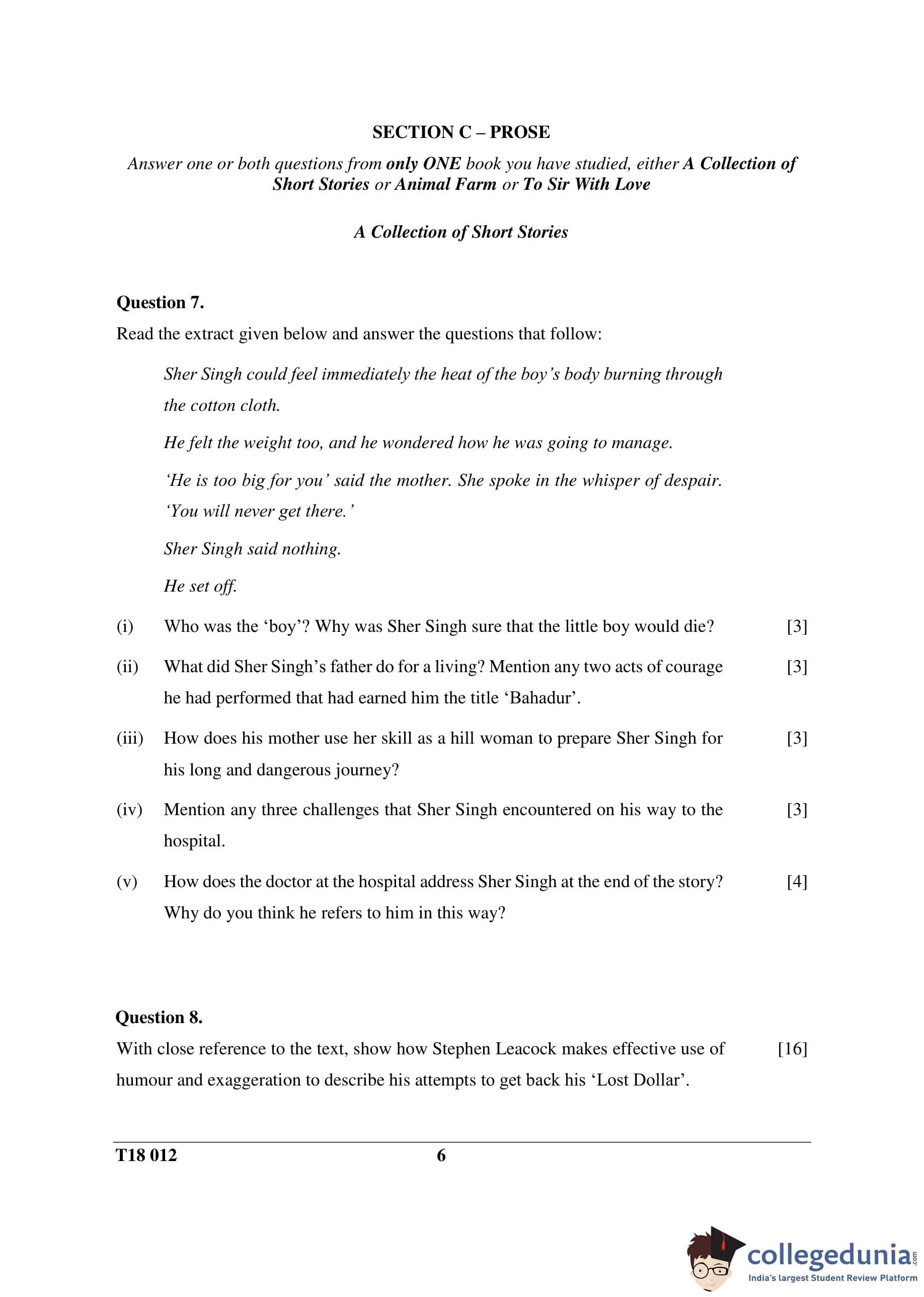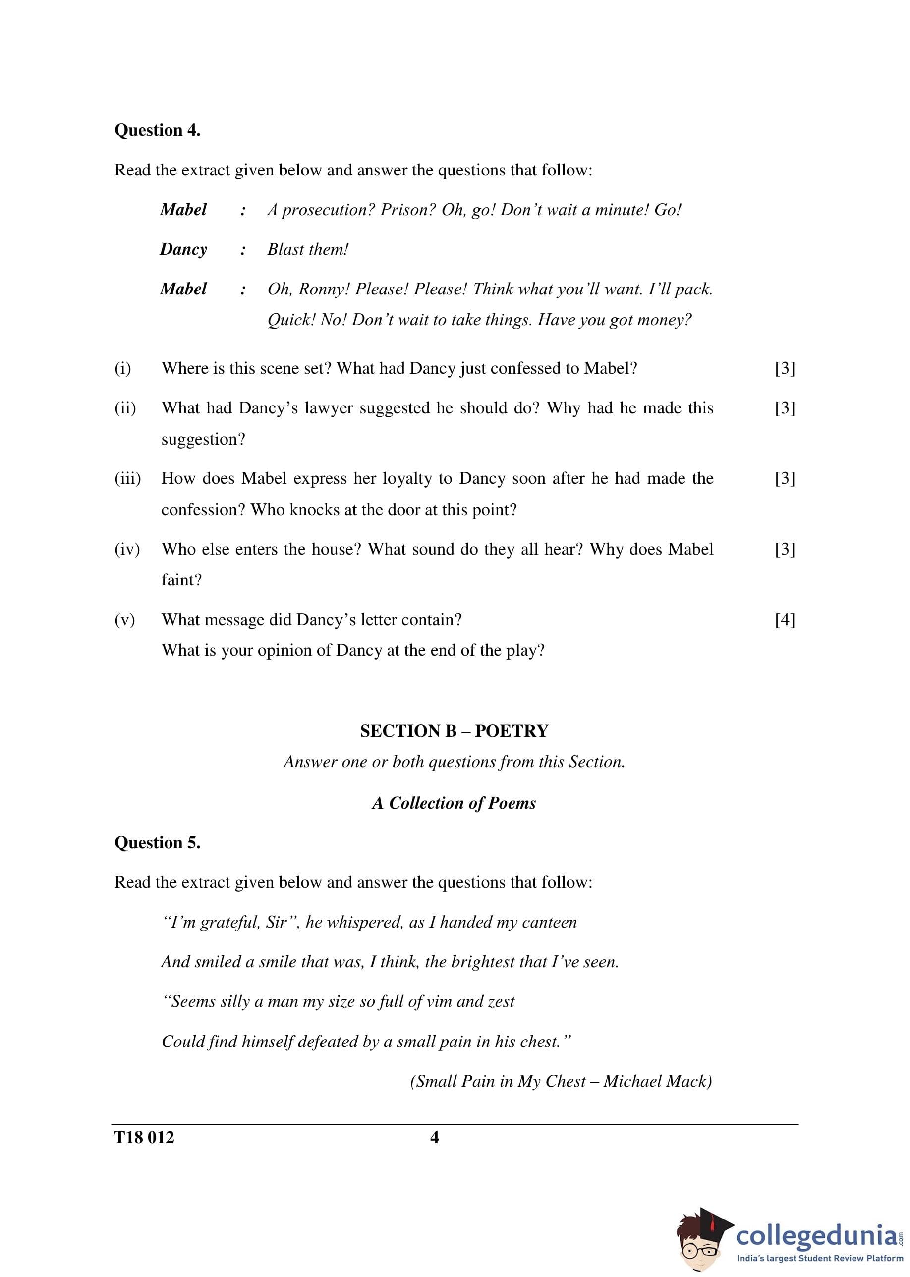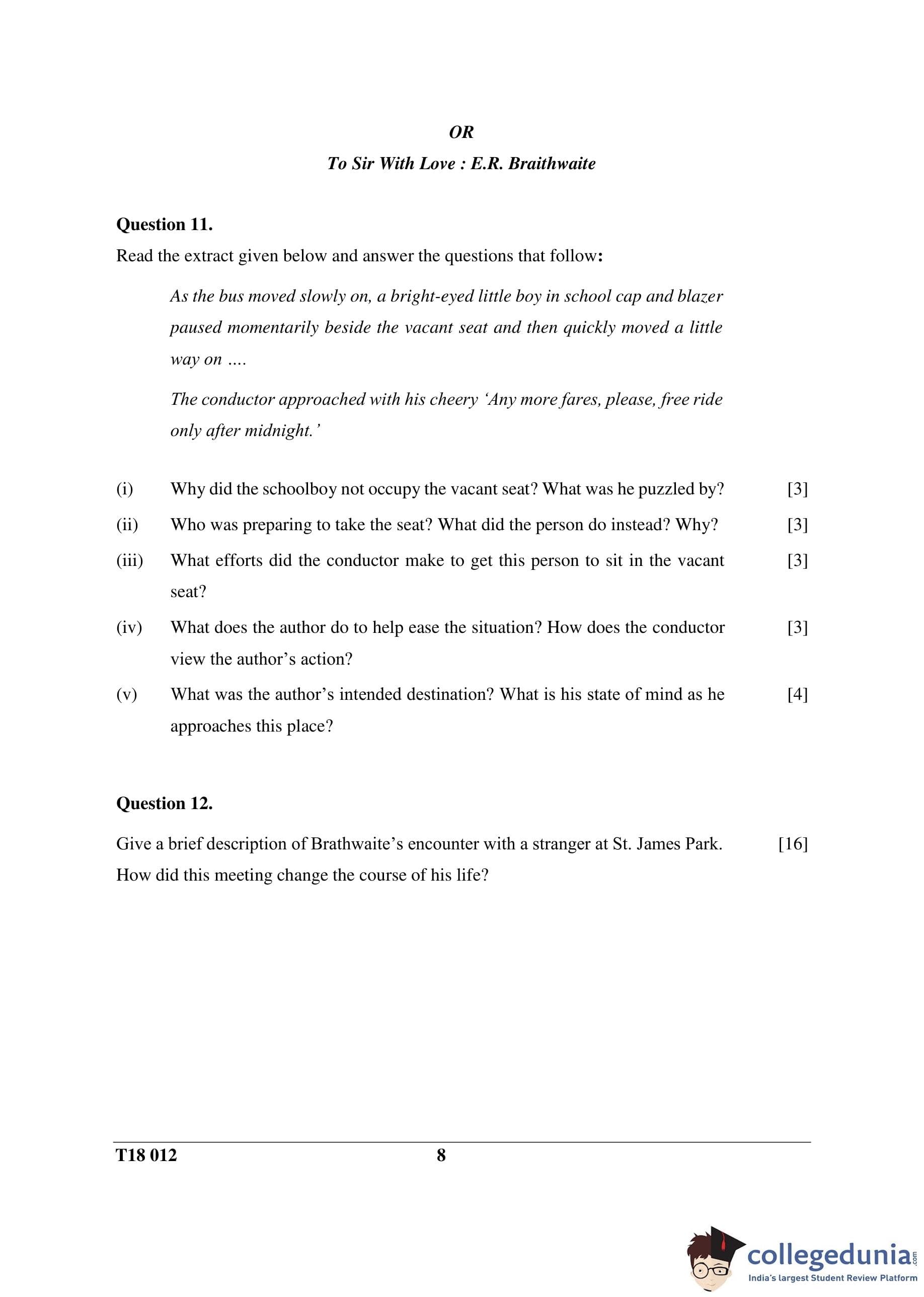 ICSE Class 10 English Paper 2 Question Paper 2018 with Answer Key