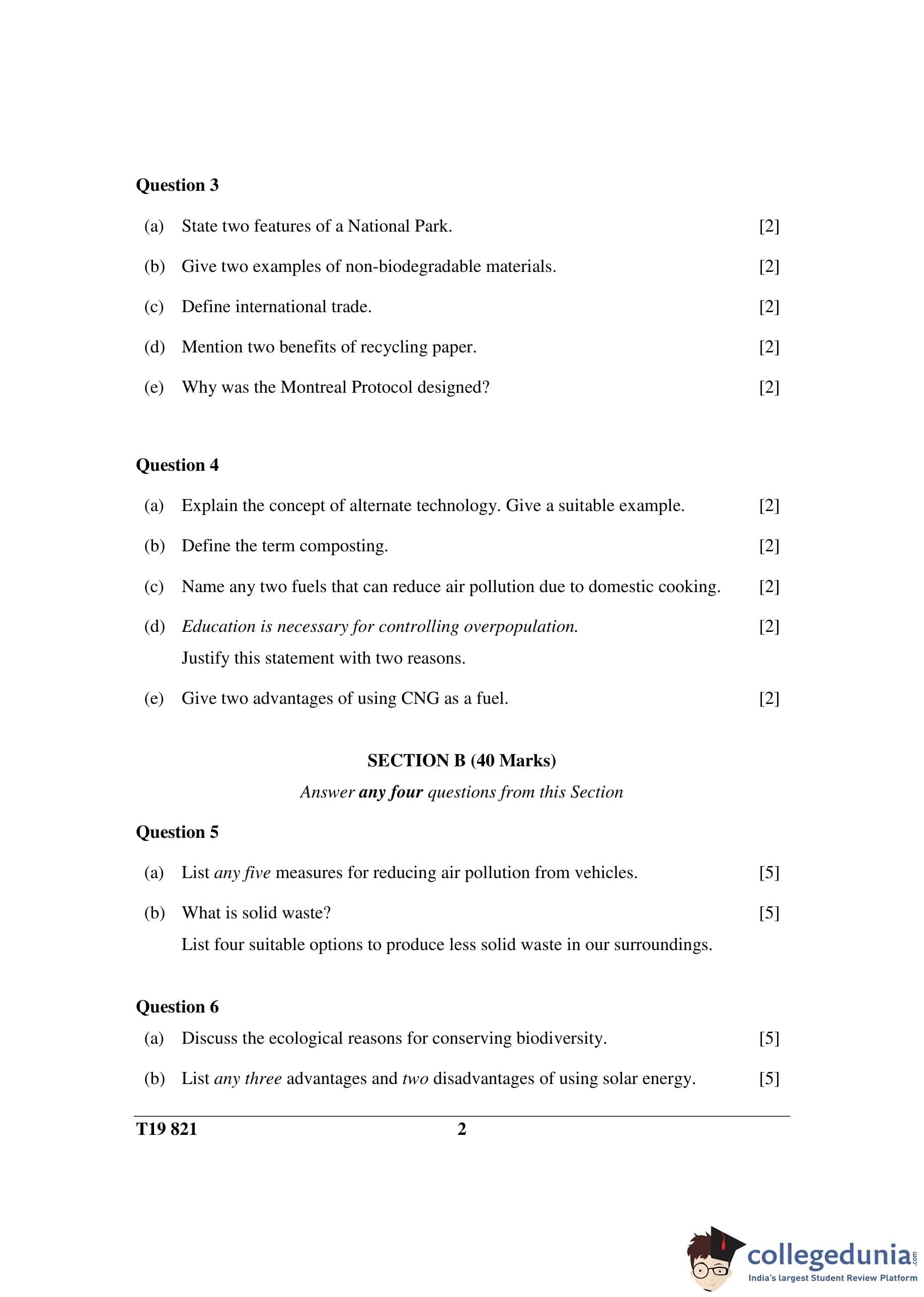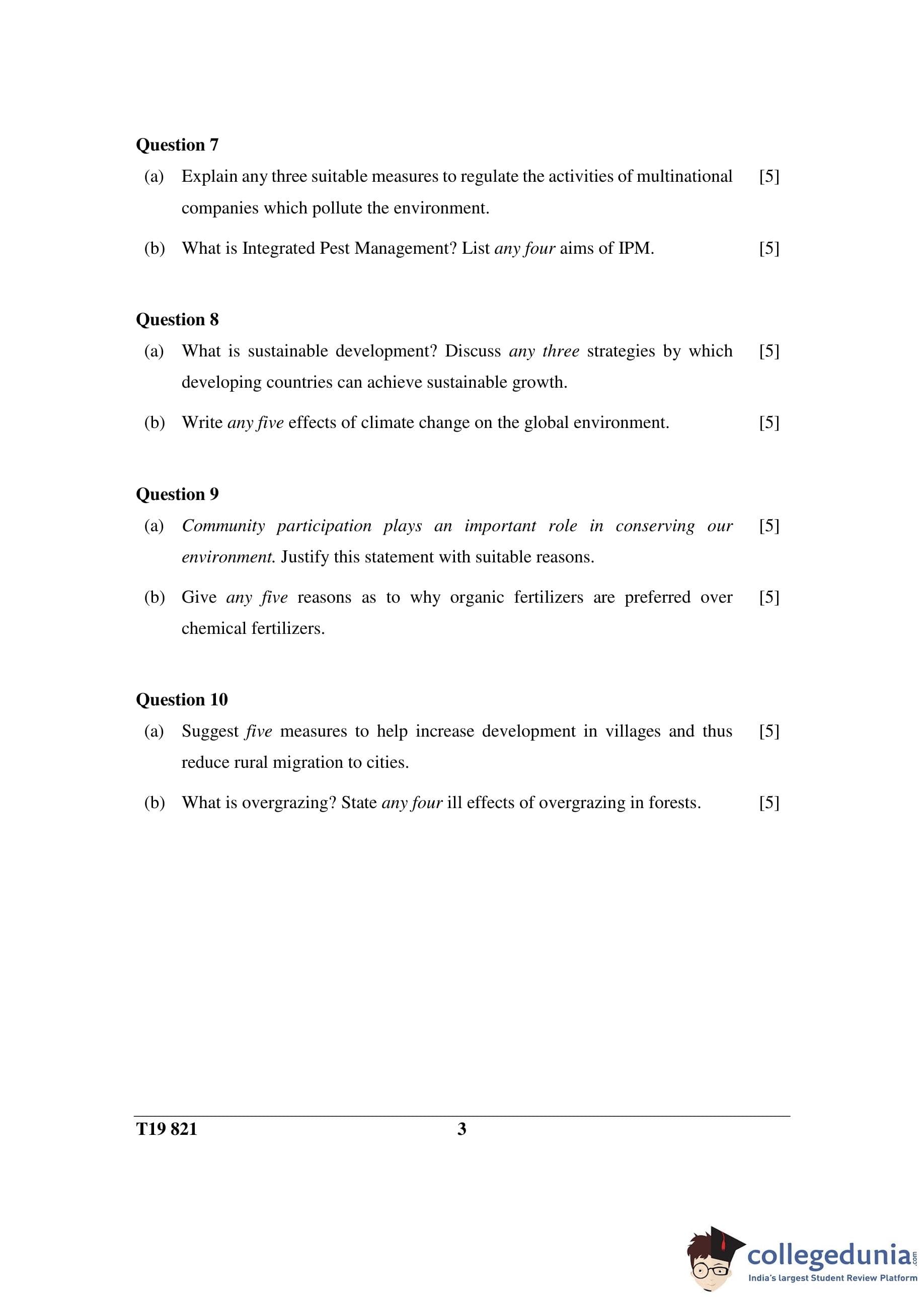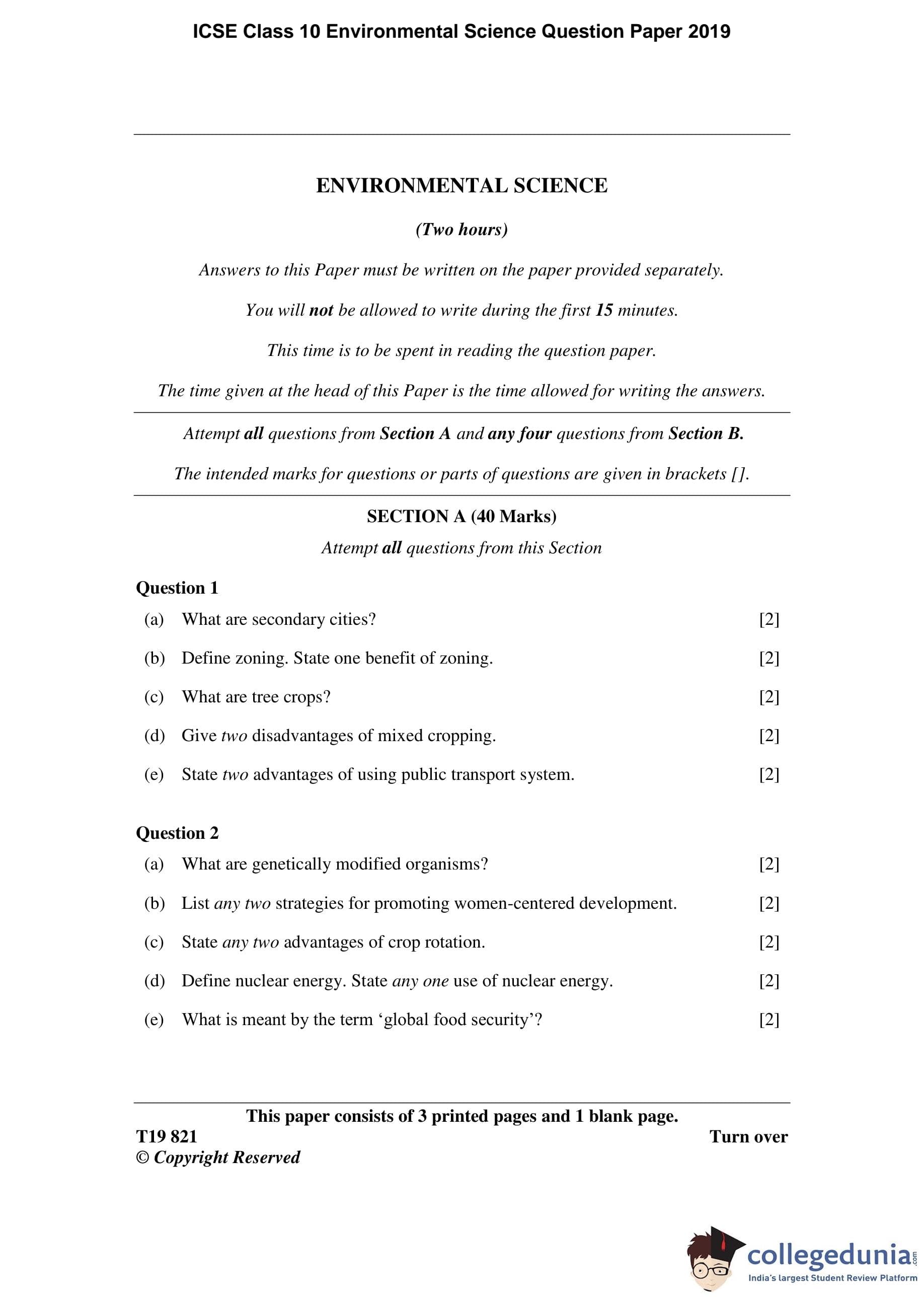 ICSE Class 10 Environmental Science Question Paper 2019 with Answer Key
