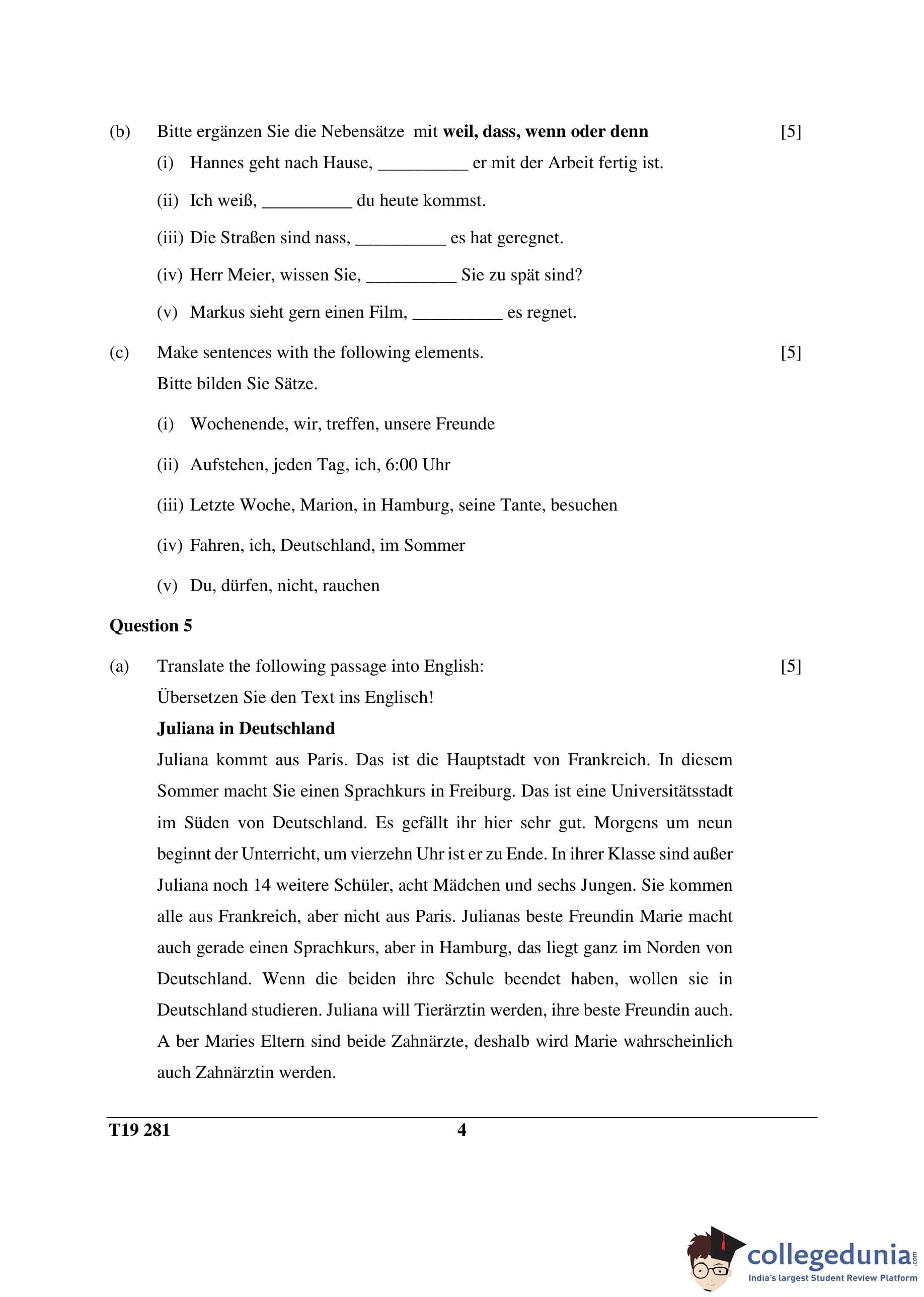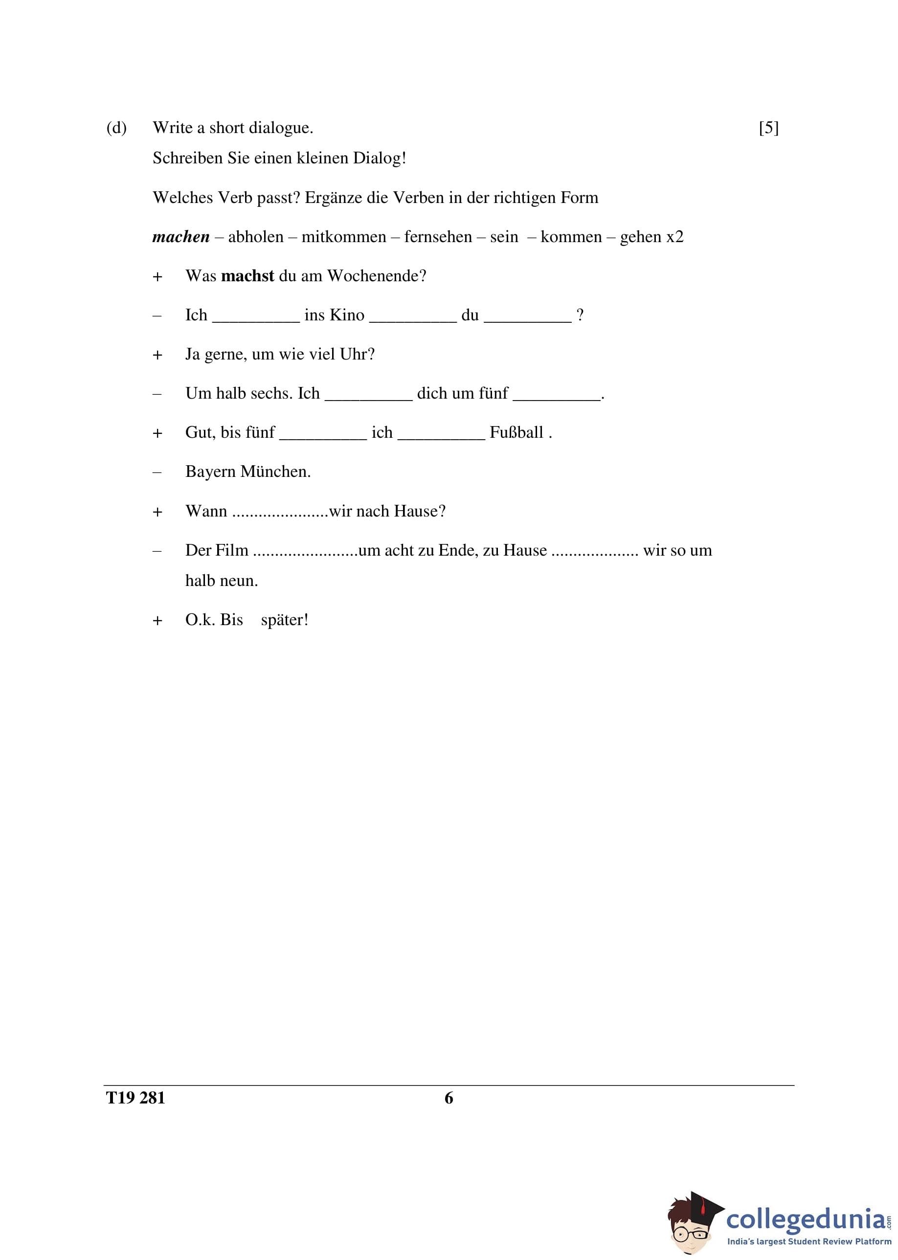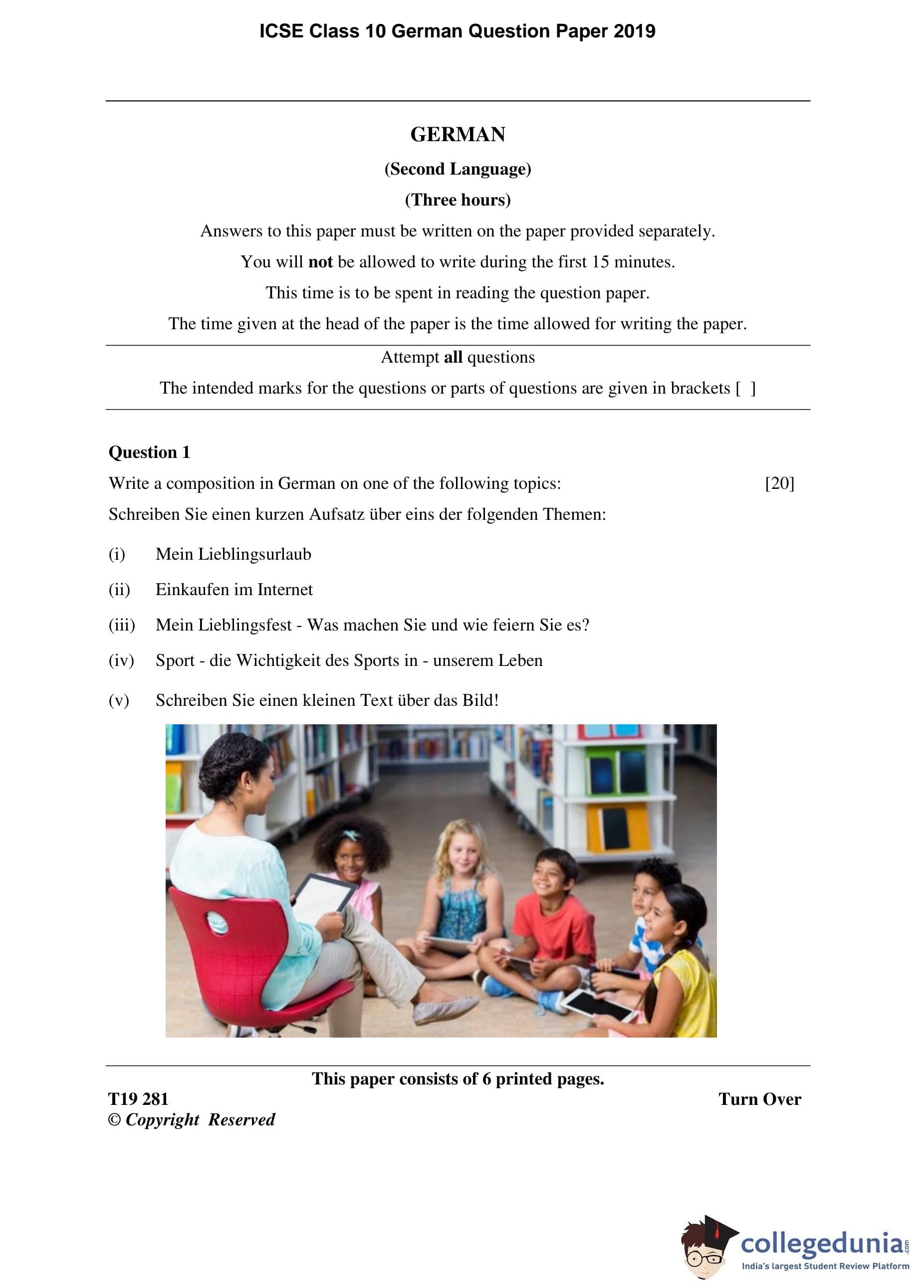 ICSE Class 10 German Question Paper 2019 with Answer Key pdf is available for download here. The exam was conducted by Council for the Indian School Certificate Examinations on March 13, 2019 in the Morning Session 11 AM to 2 PM. The question paper comprised a total of 5 questions.