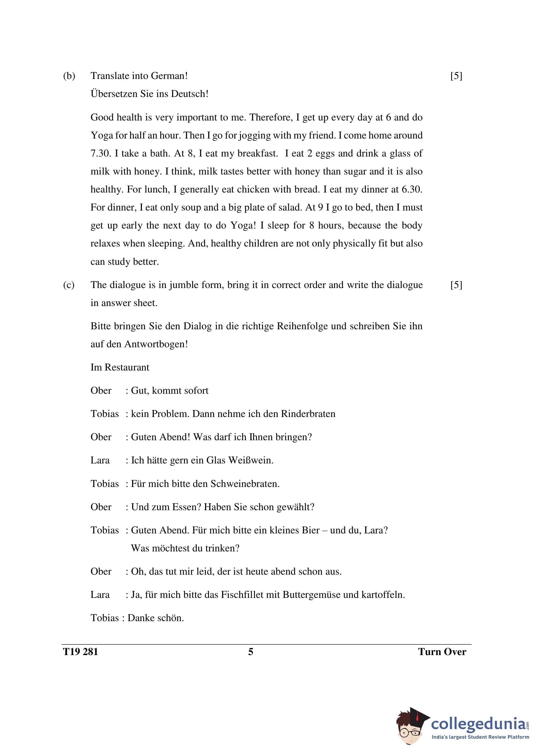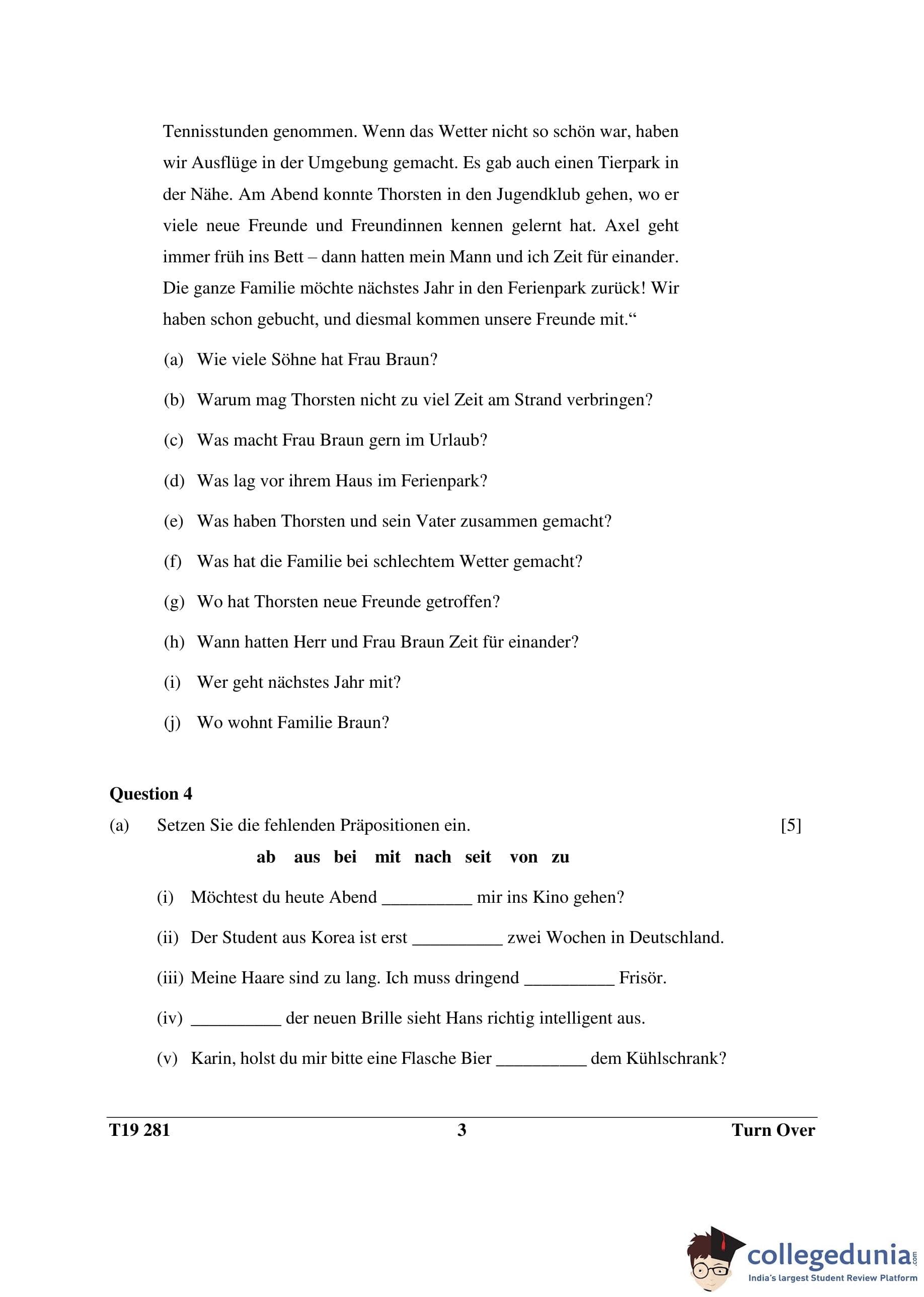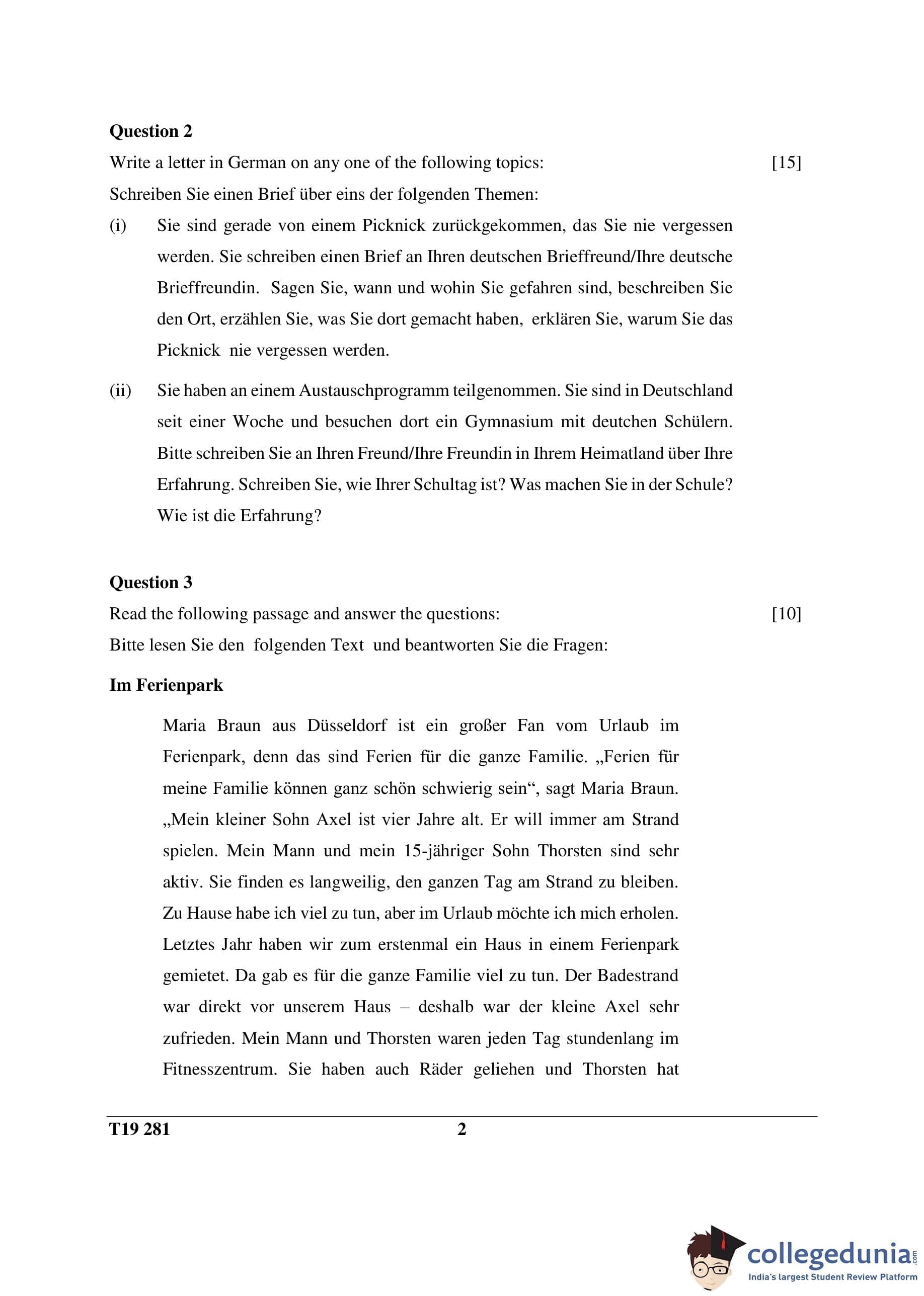 ICSE Class 10 German Question Paper 2019 with Answer Key