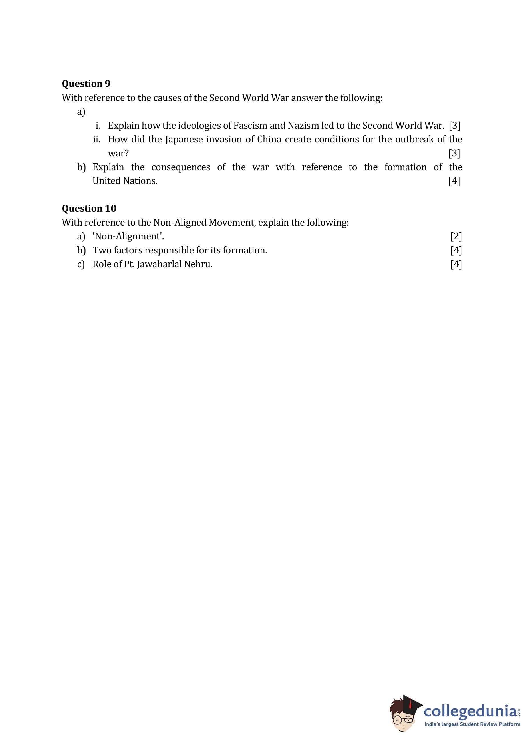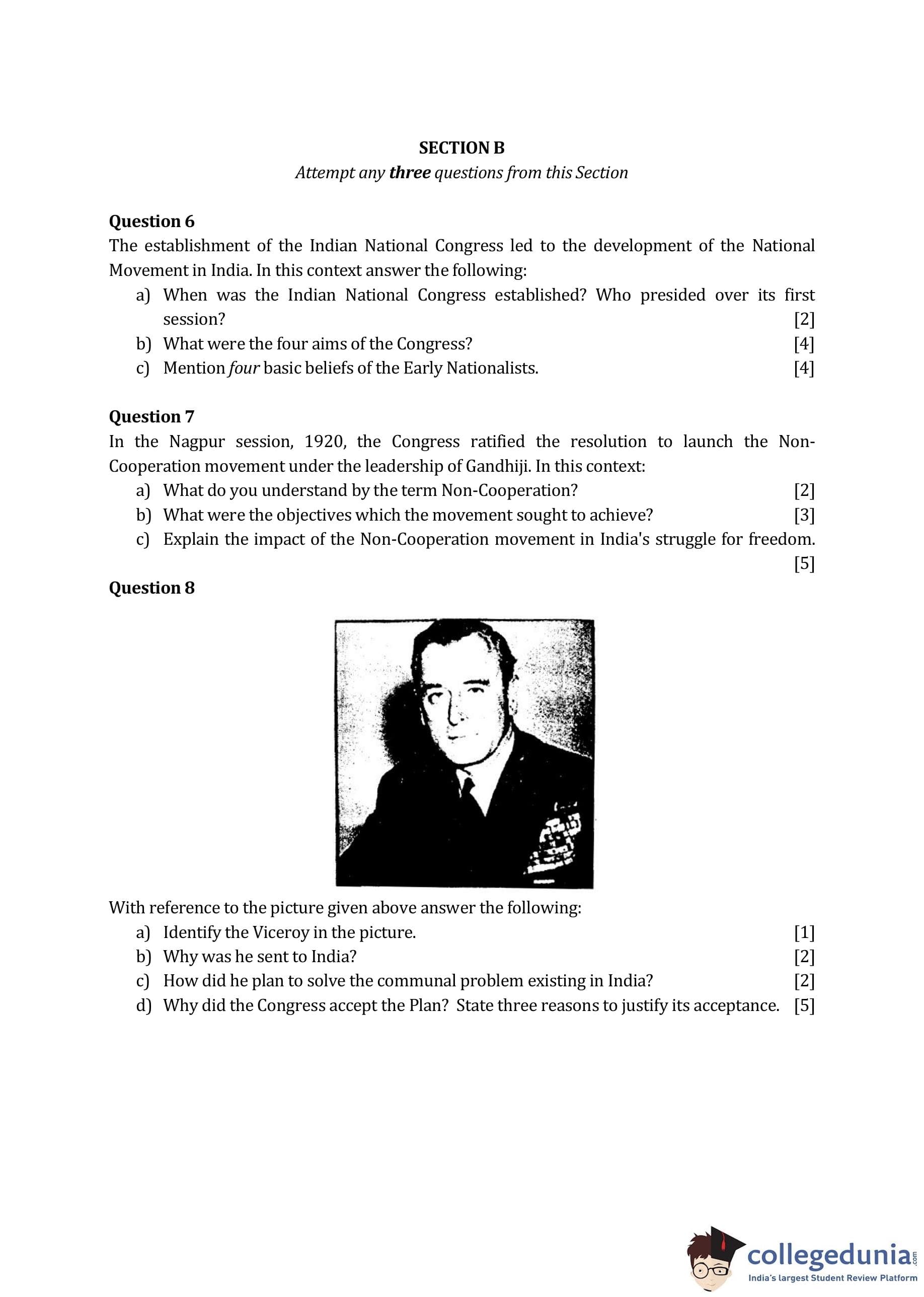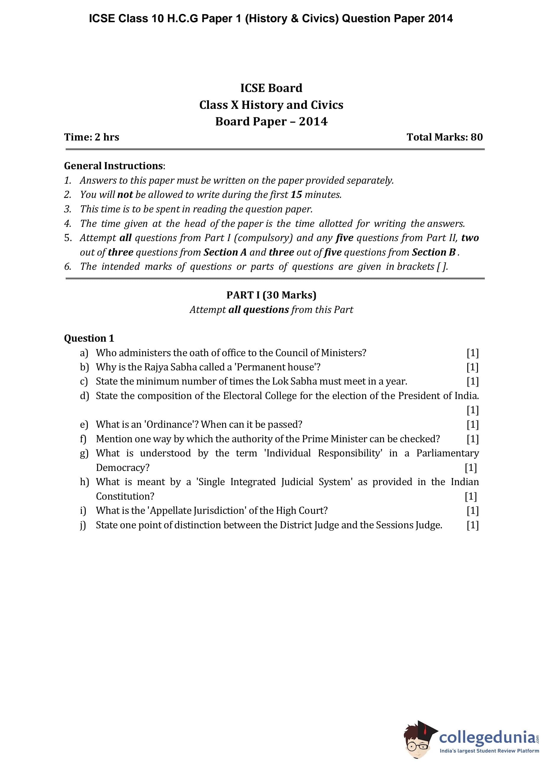 ICSE Class 10 H.C.G Paper 1 (History & Civics) Question Paper 2014 with Answer Key