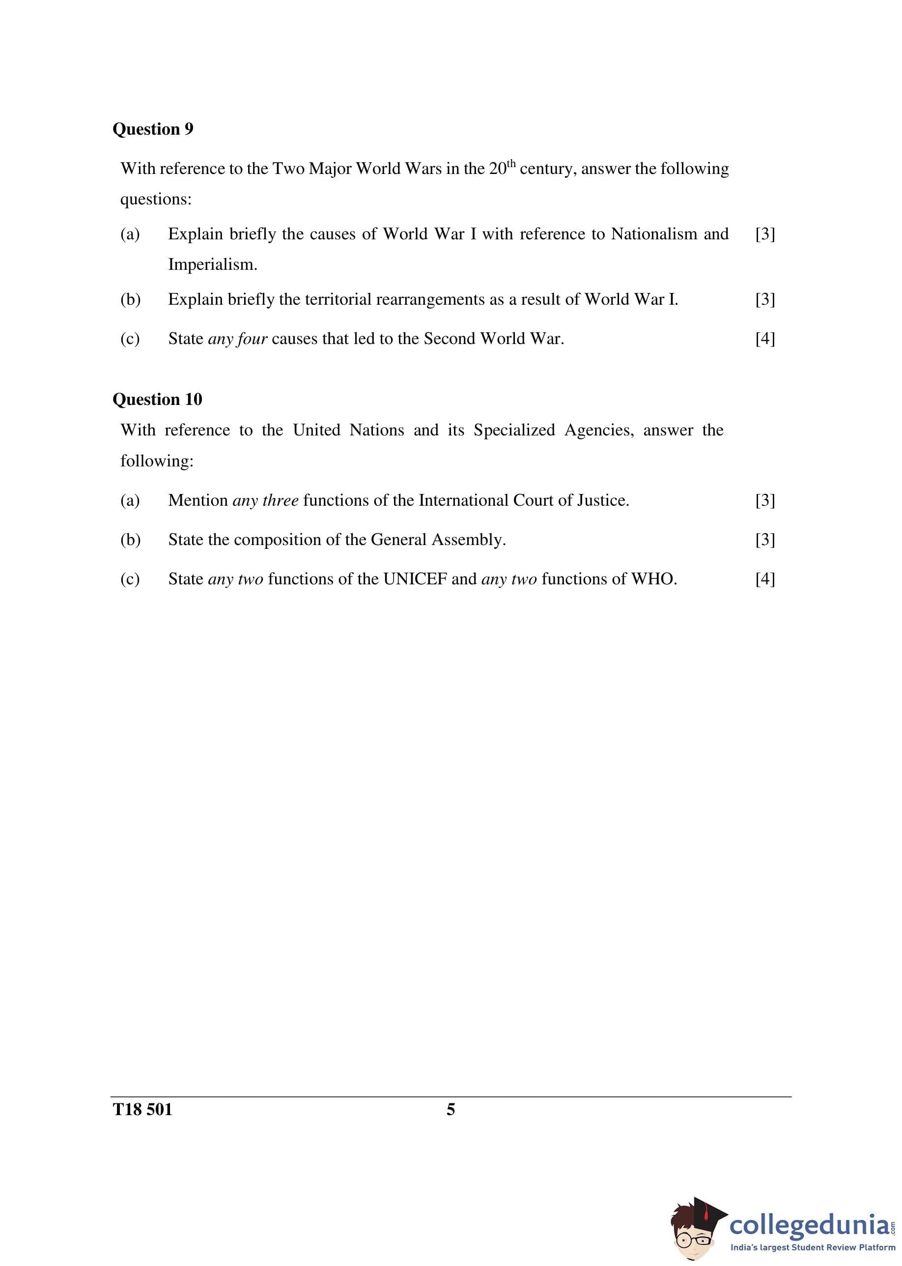 | ICSE Class 10 H.C.G Paper 1 (History & Civics) Question Paper 2018 PDF | ICSE Class 10 H.C.G Paper 1 (History & Civics) Answer Key 2018 PDF |