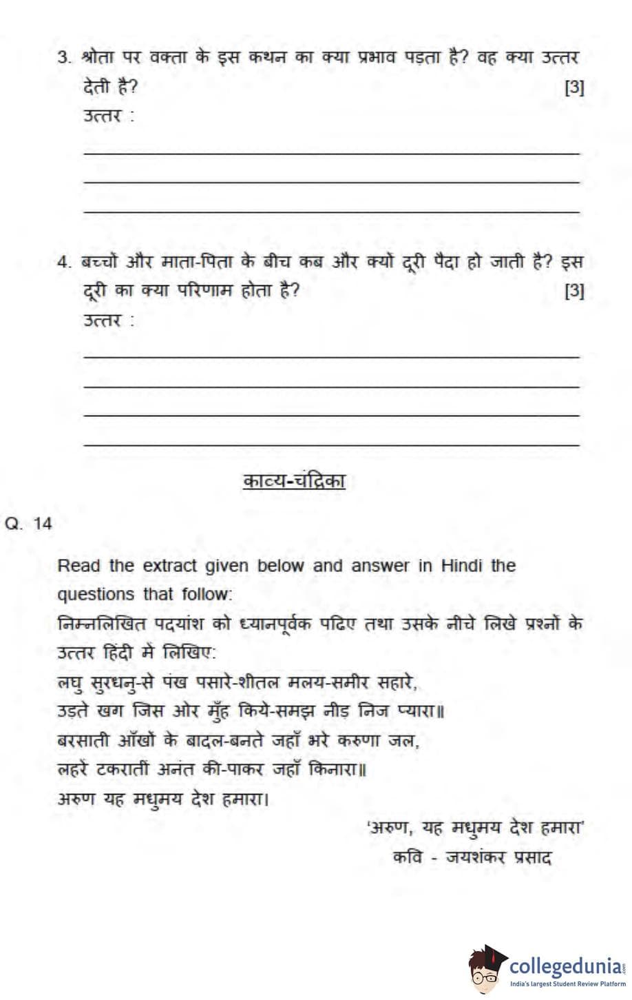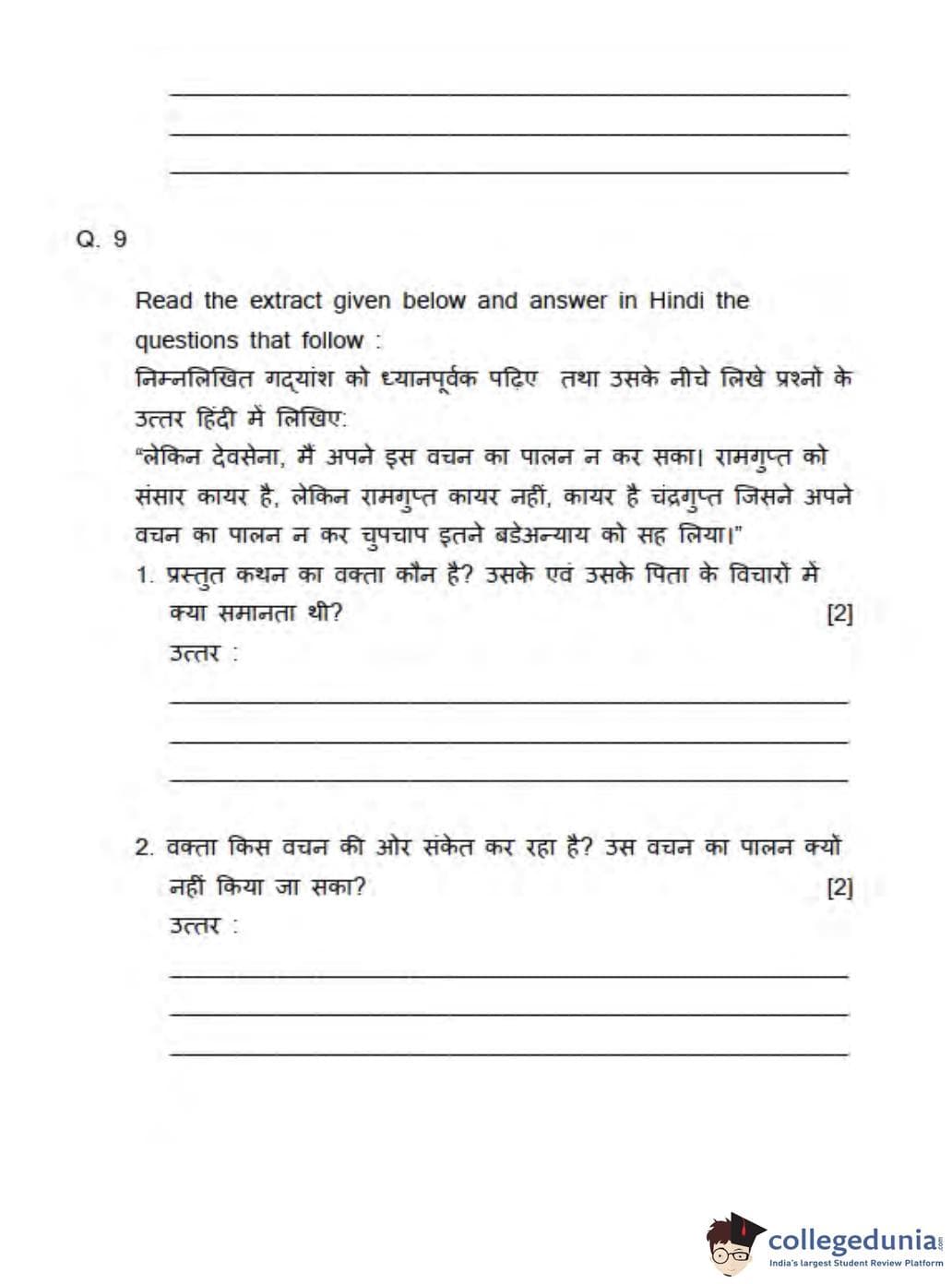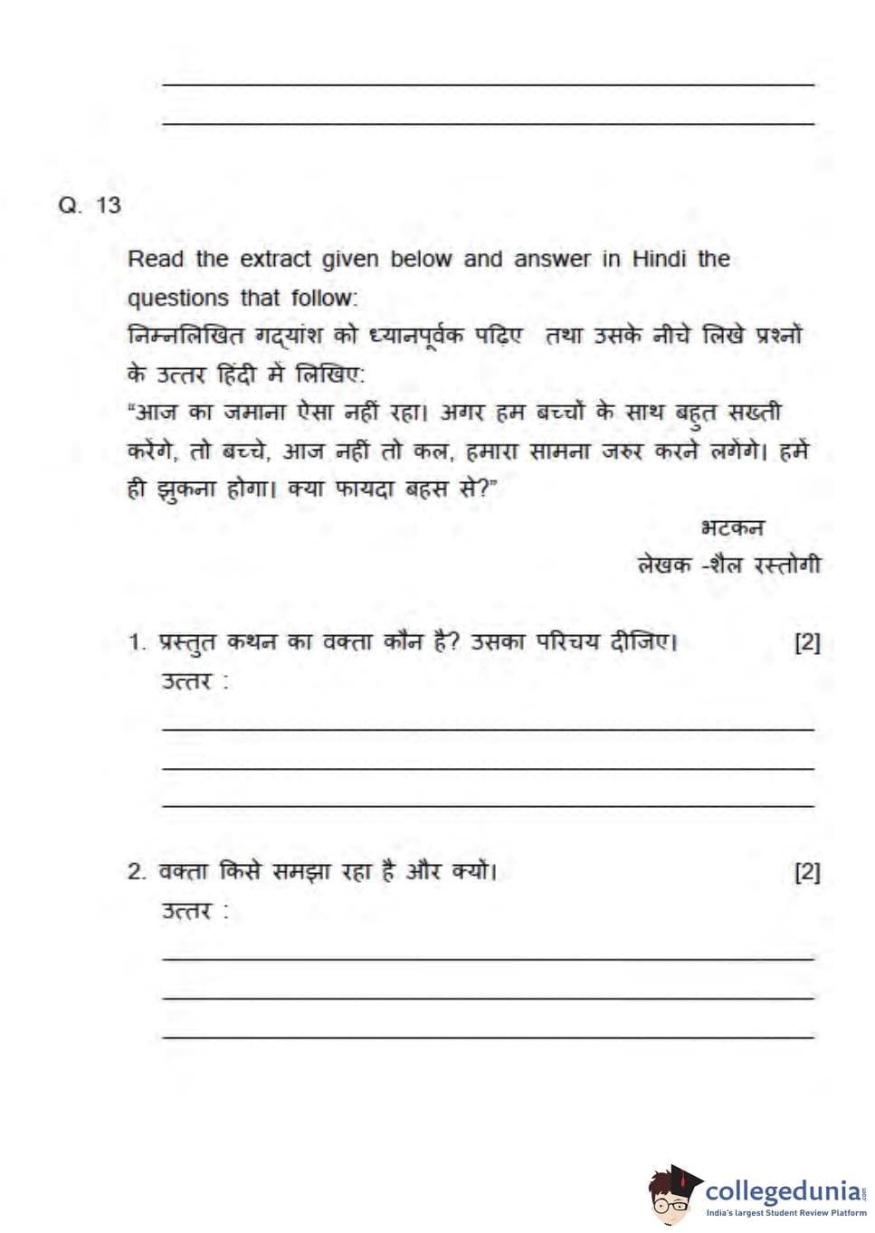 ICSE Class 10 Hindi Question Paper 2013 with Answer Key
