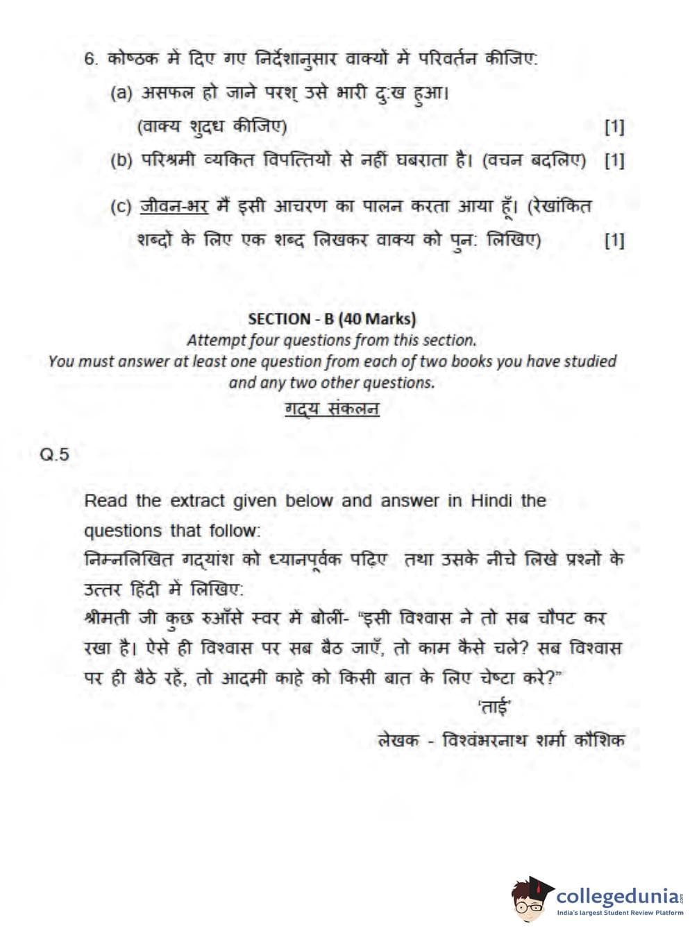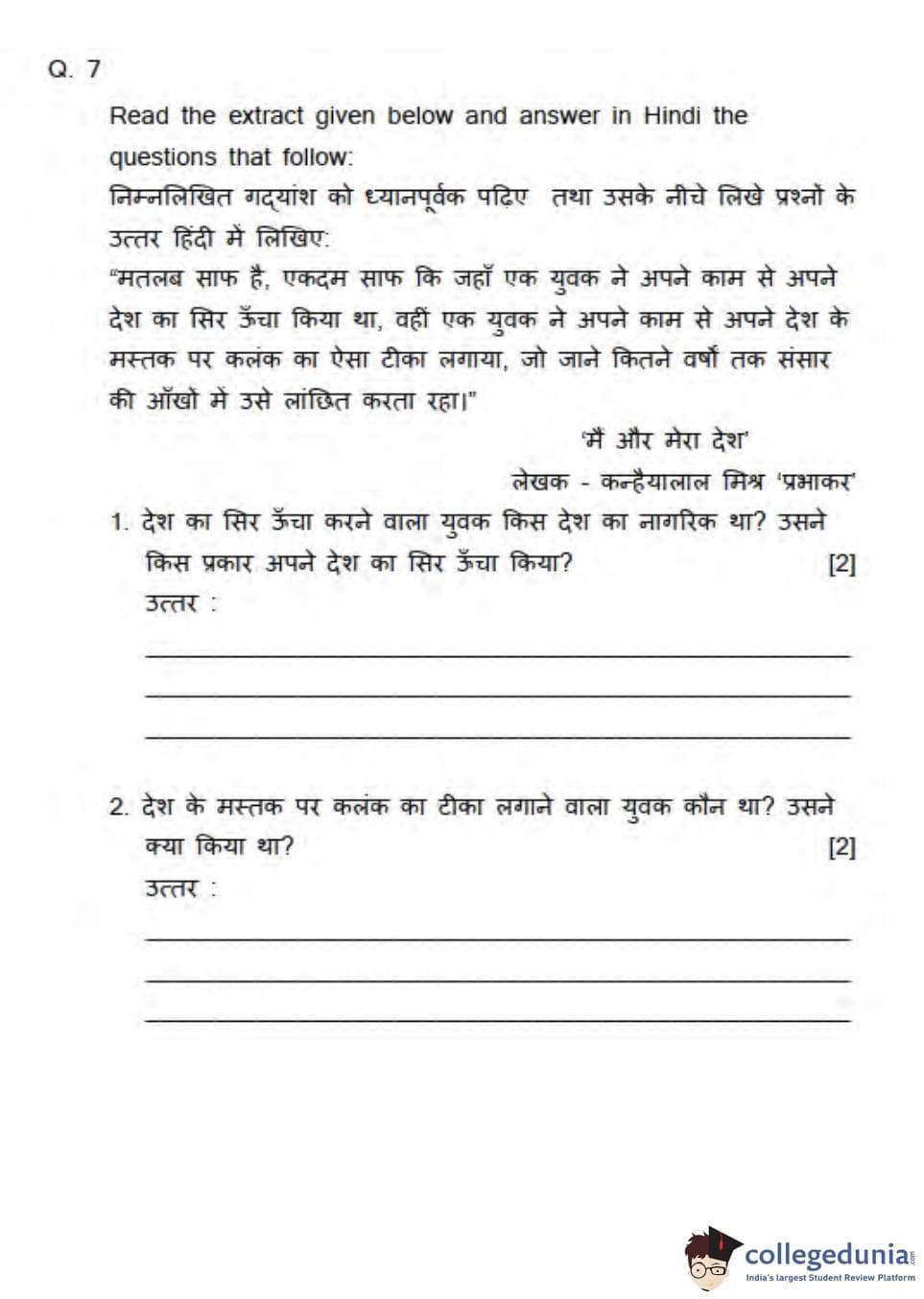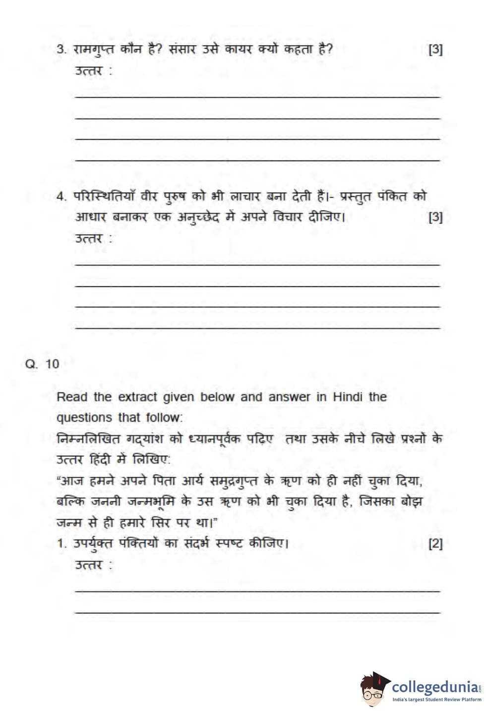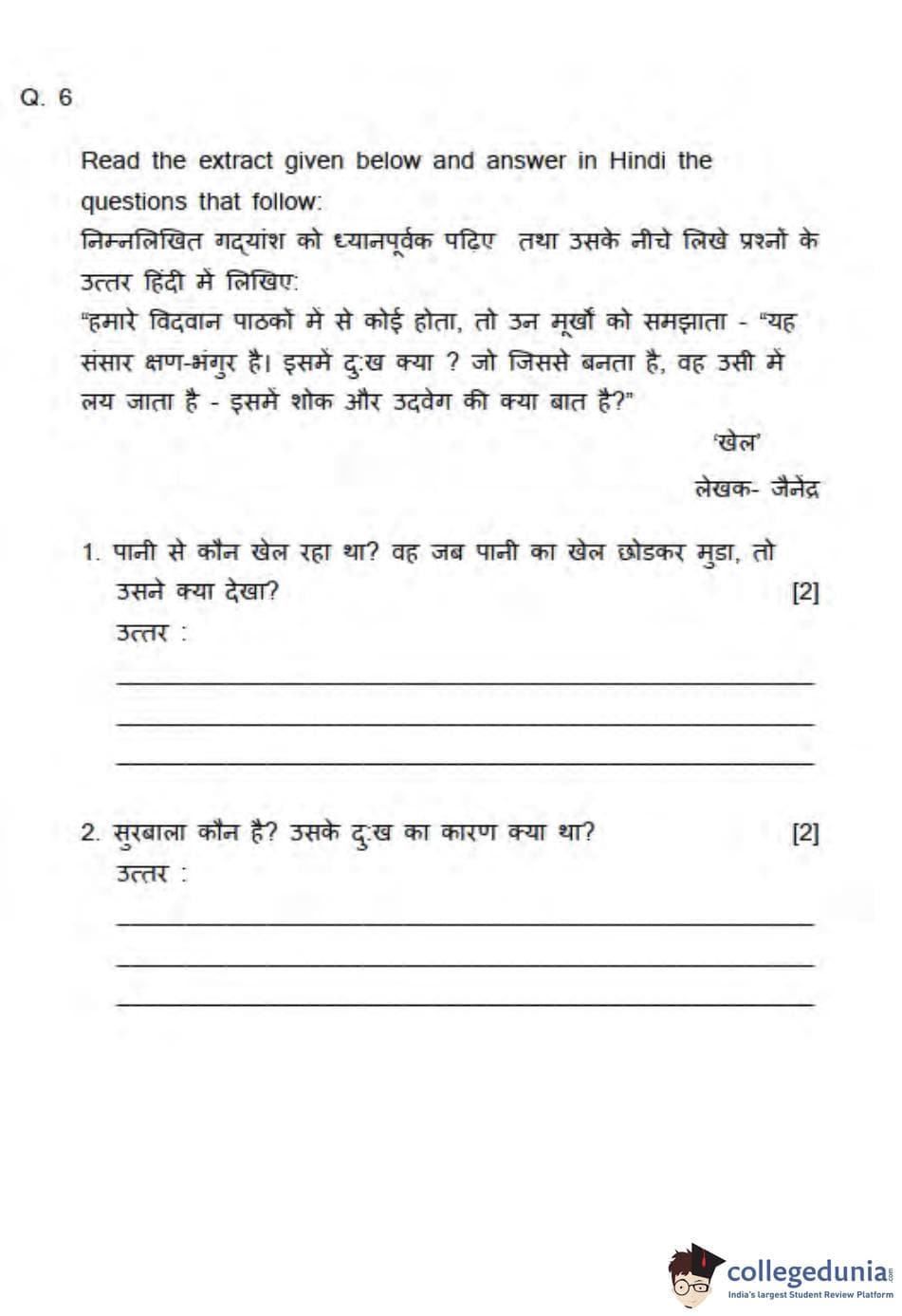 ICSE Class 10 Hindi Question Paper 2013 with Answer Key