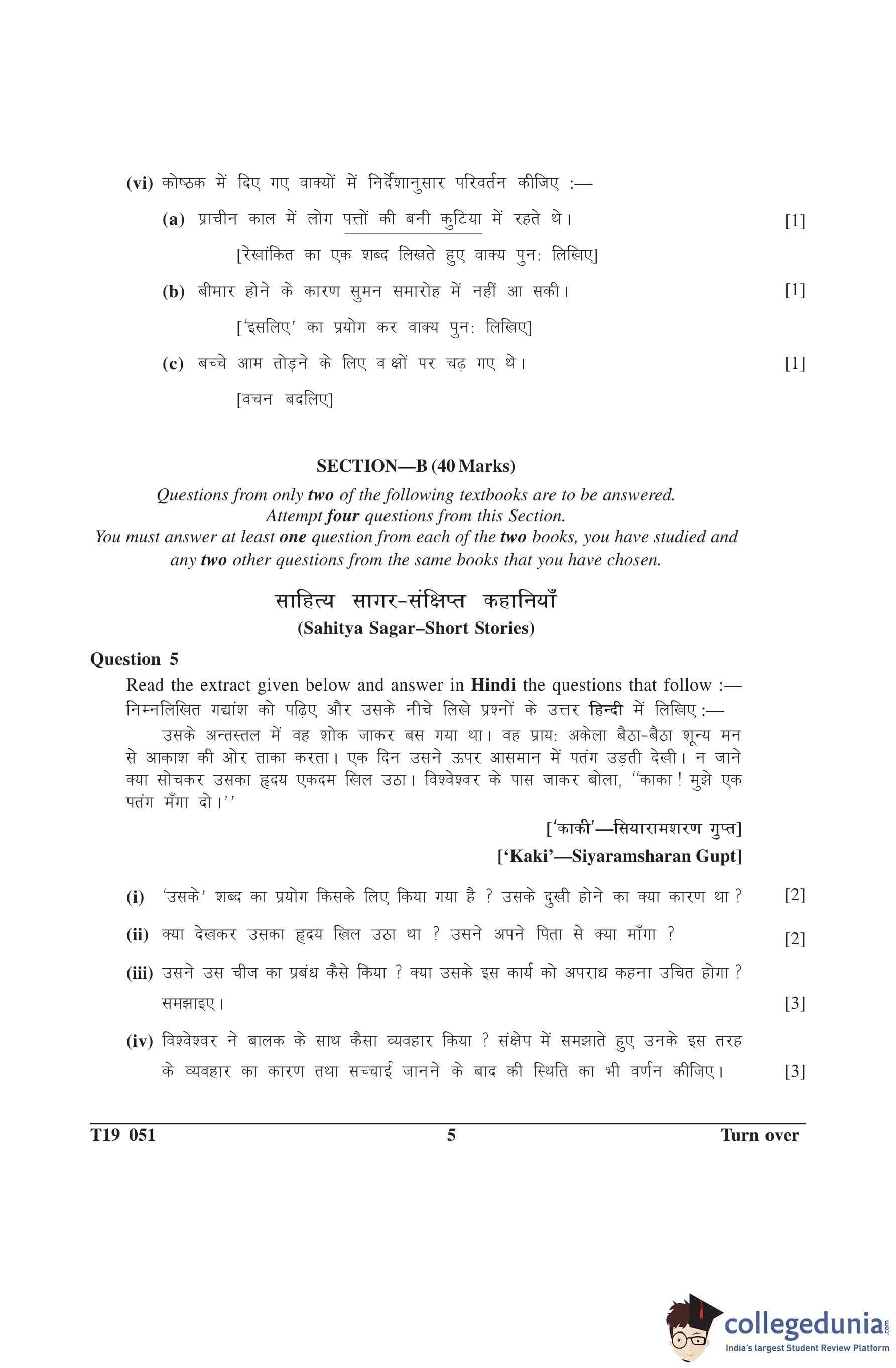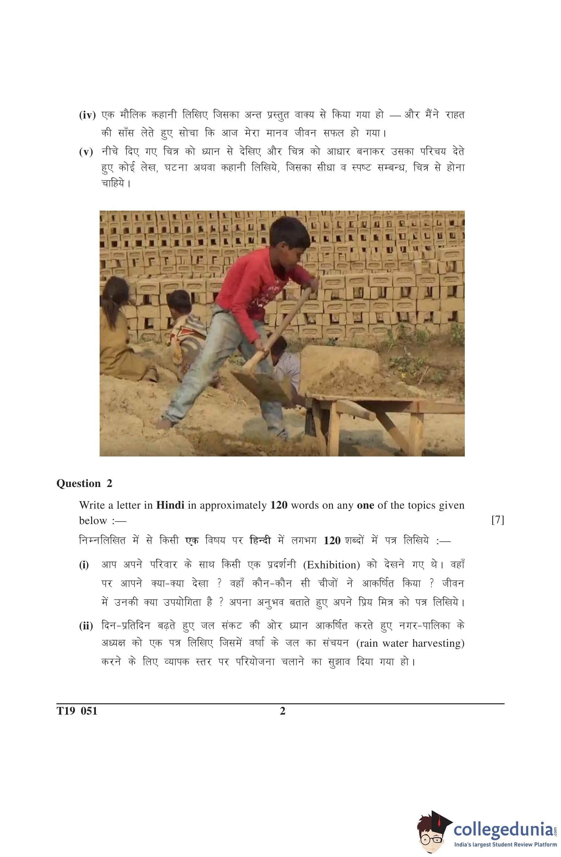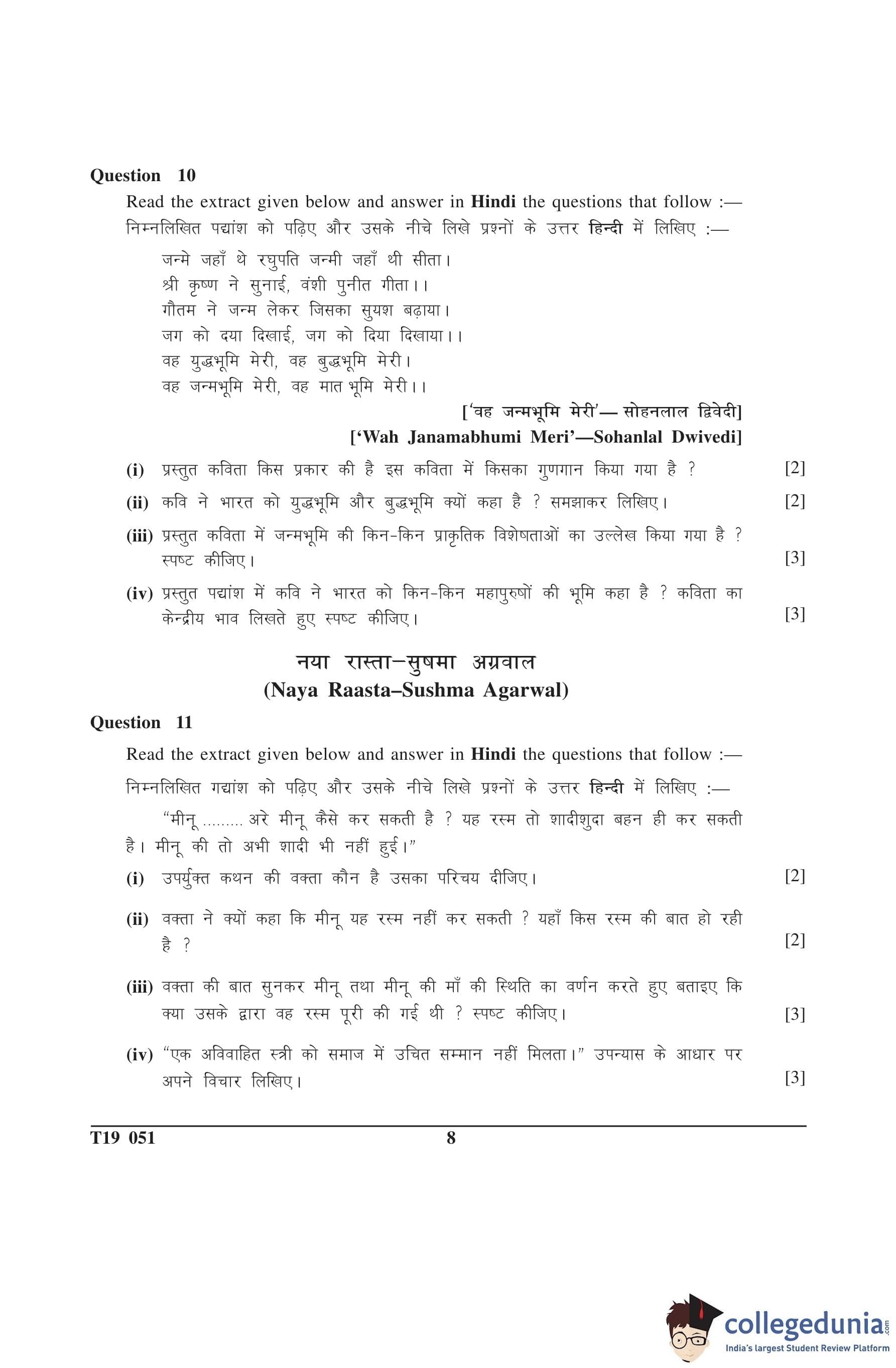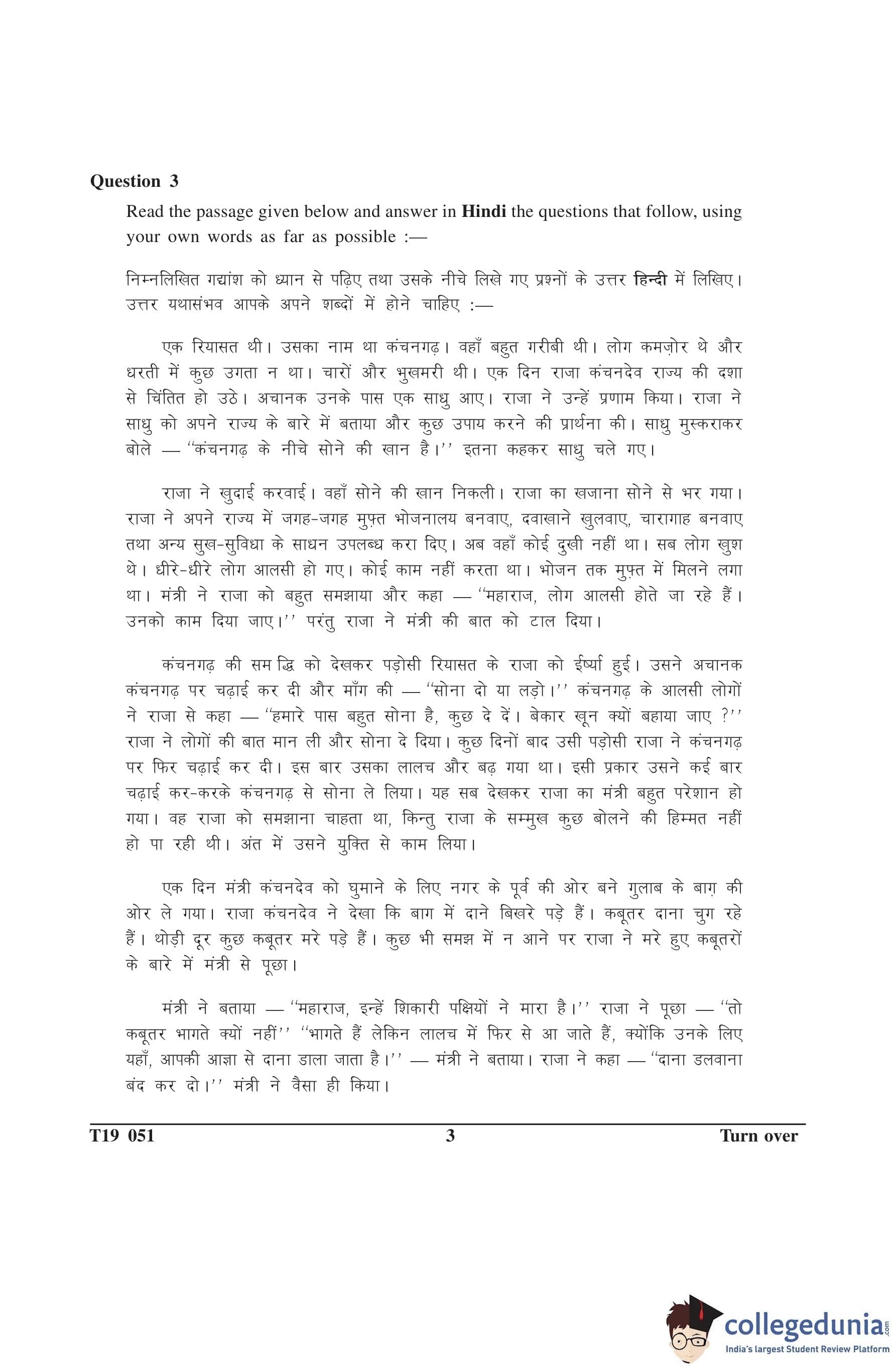 ICSE Class 10 Hindi Question Paper 2019 with Answer Key