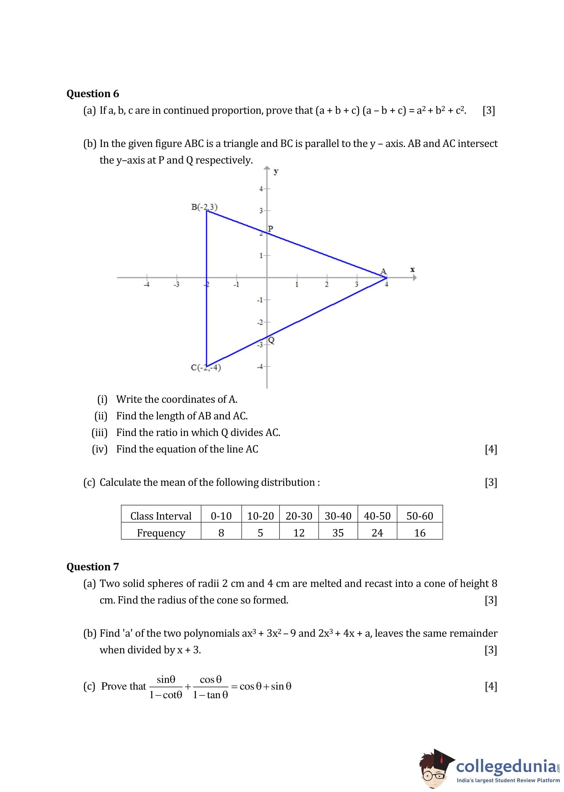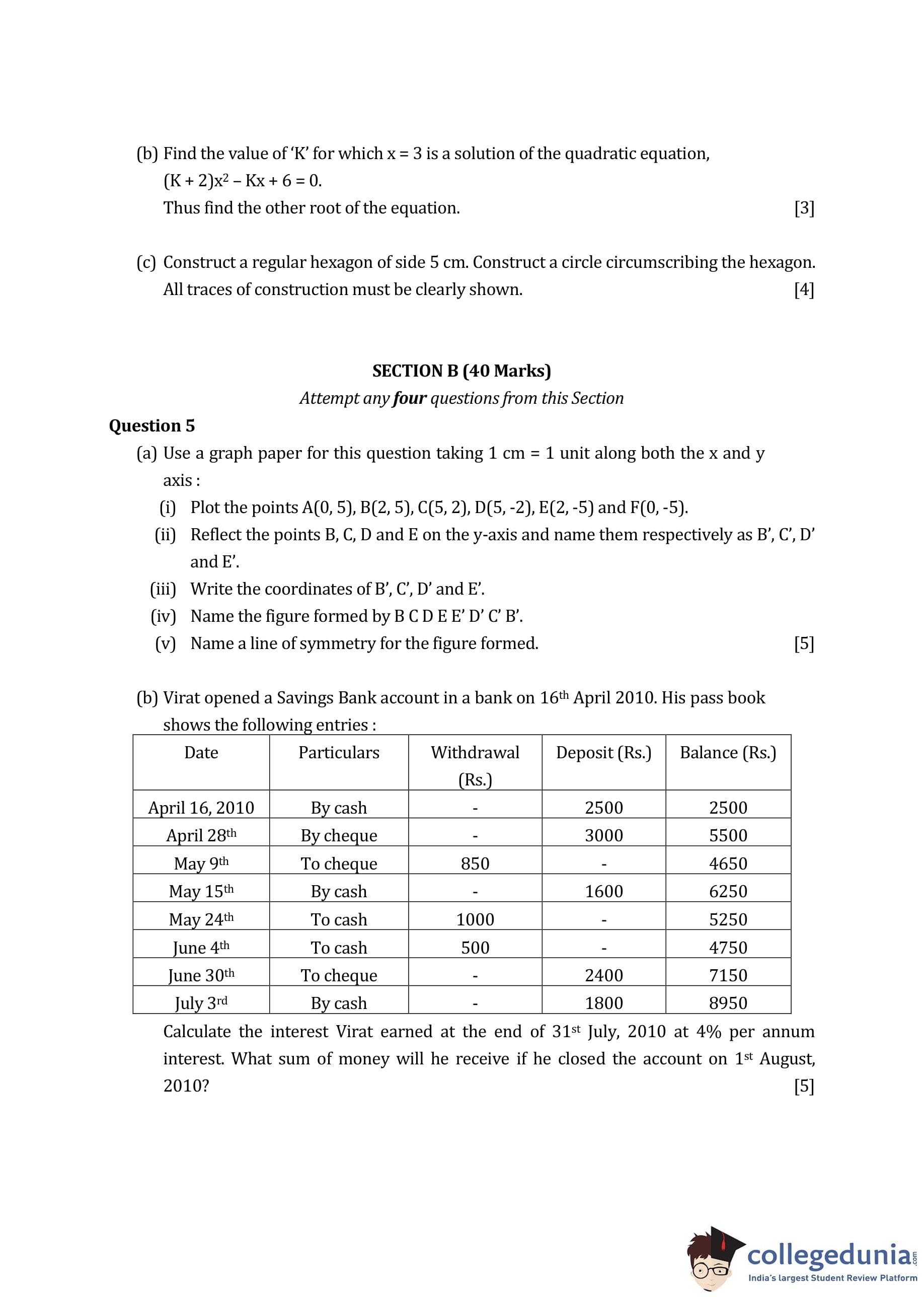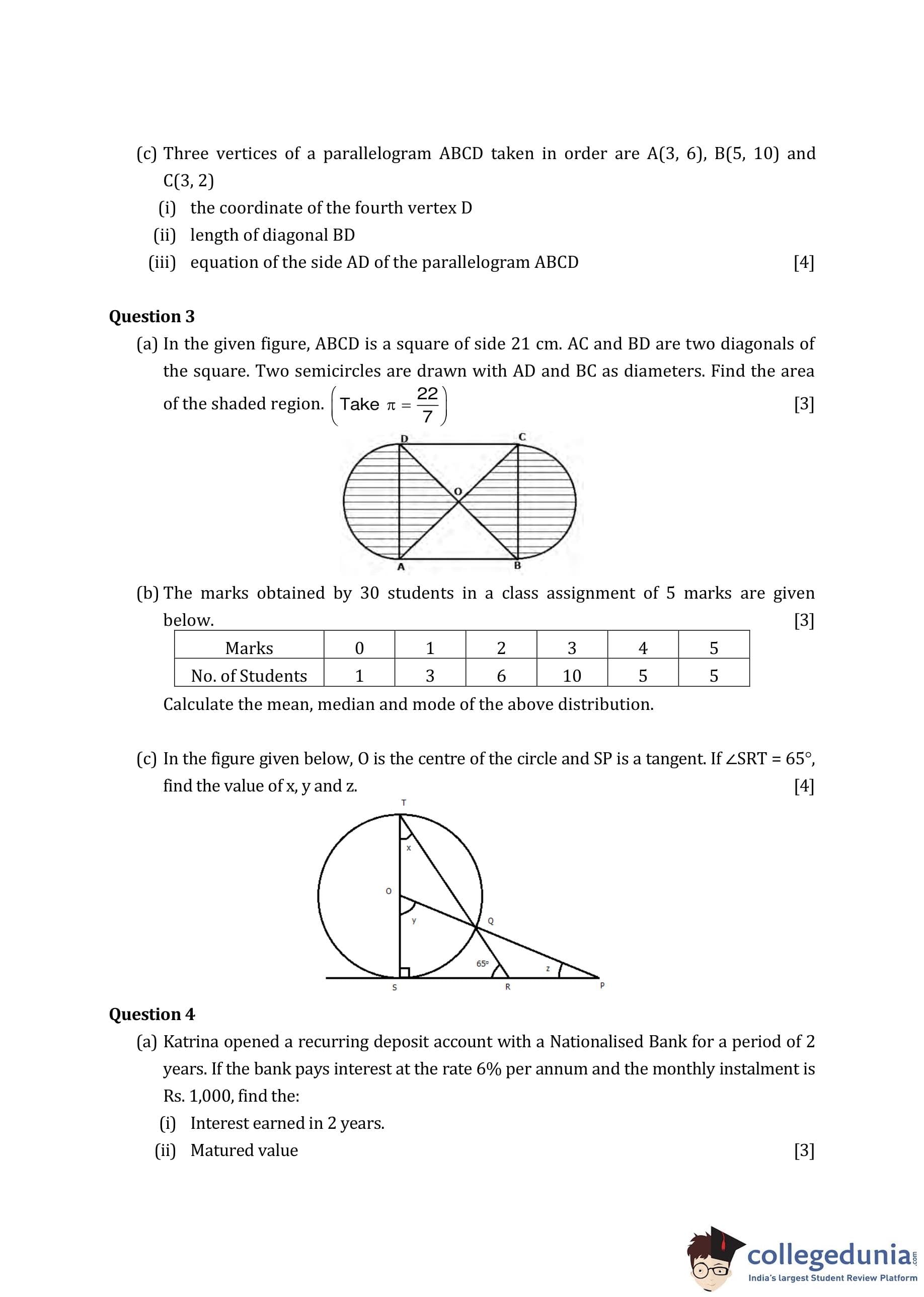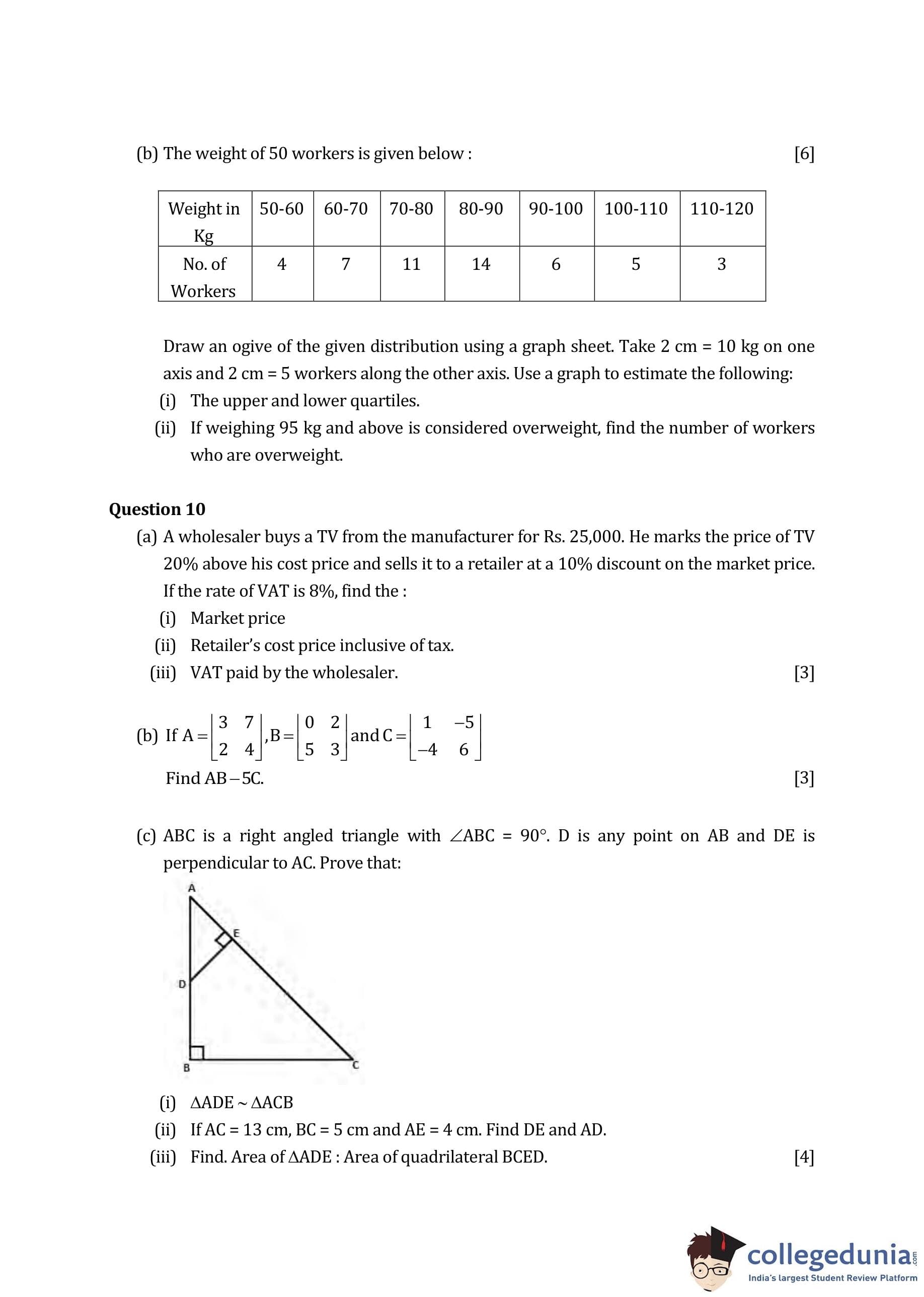 ICSE Class 10 Mathematics Question Paper 2015 with Answer Key