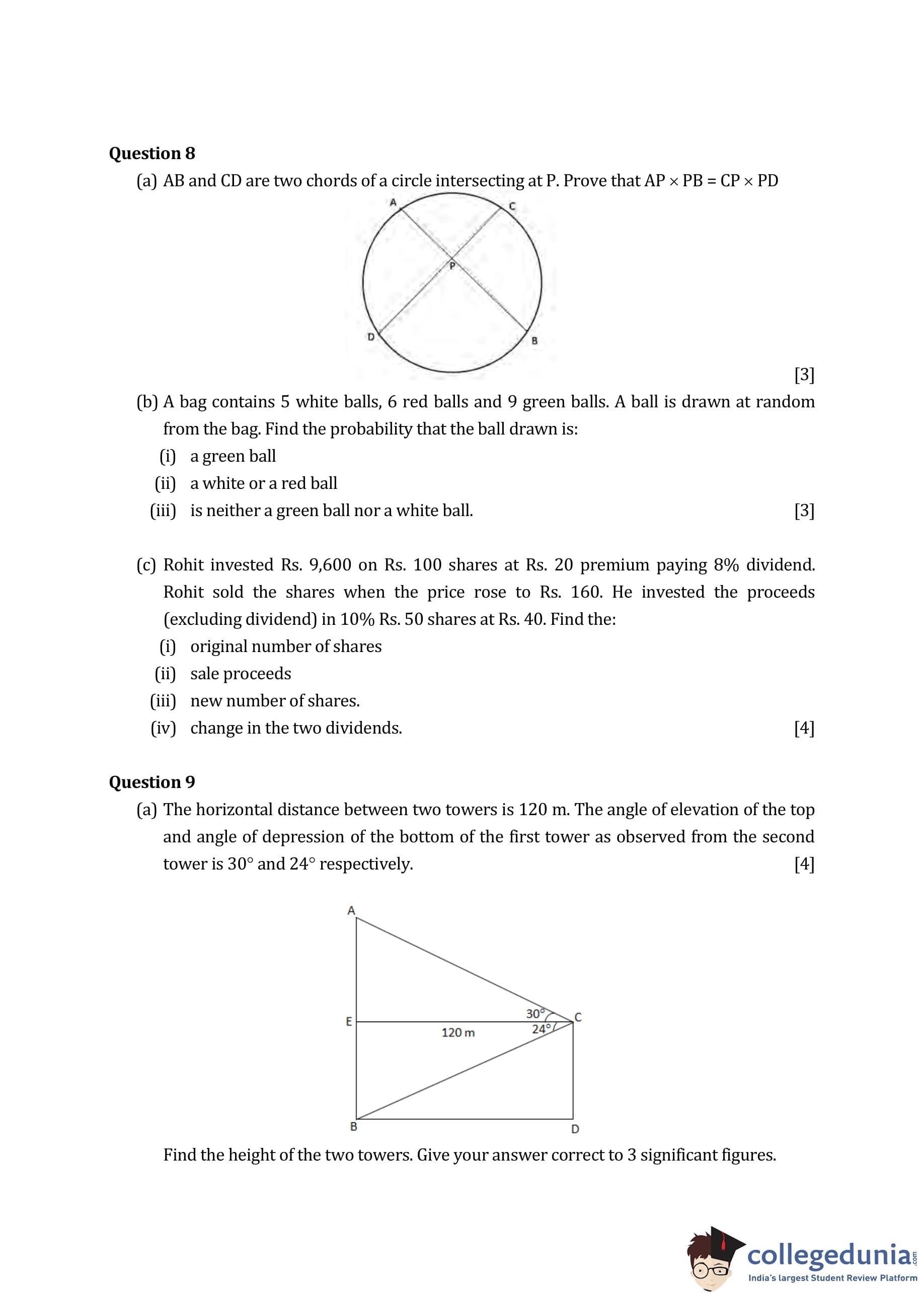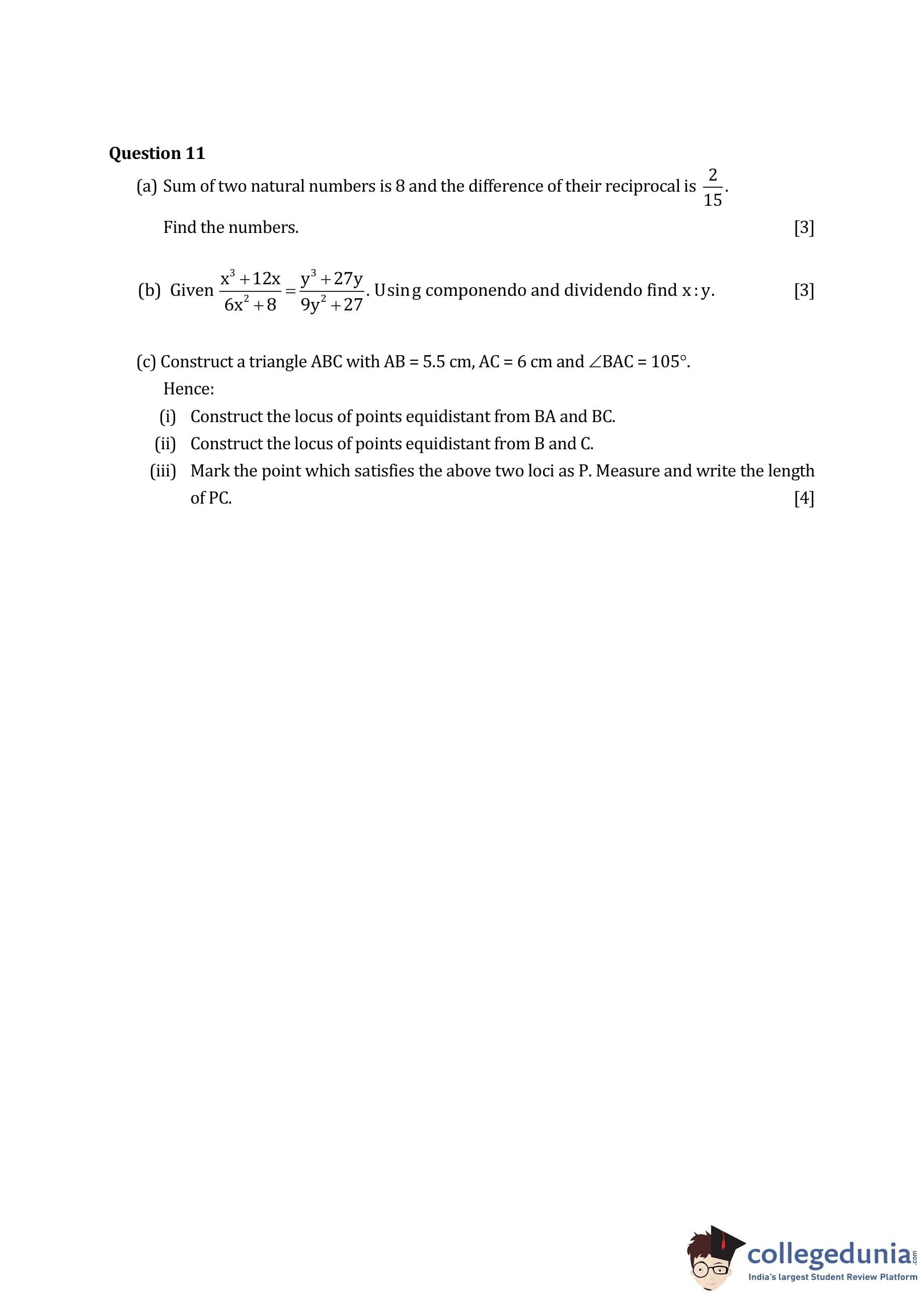 ICSE Class 10 Mathematics Question Paper 2015 with Answer Key pdf is available for download here. The exam was conducted by Council for the Indian School Certificate Examinations on March 9, 2015 in the Morning Session 11 AM to 1:30 PM. The question paper comprised a total of 11 questions divided among 2 sections.