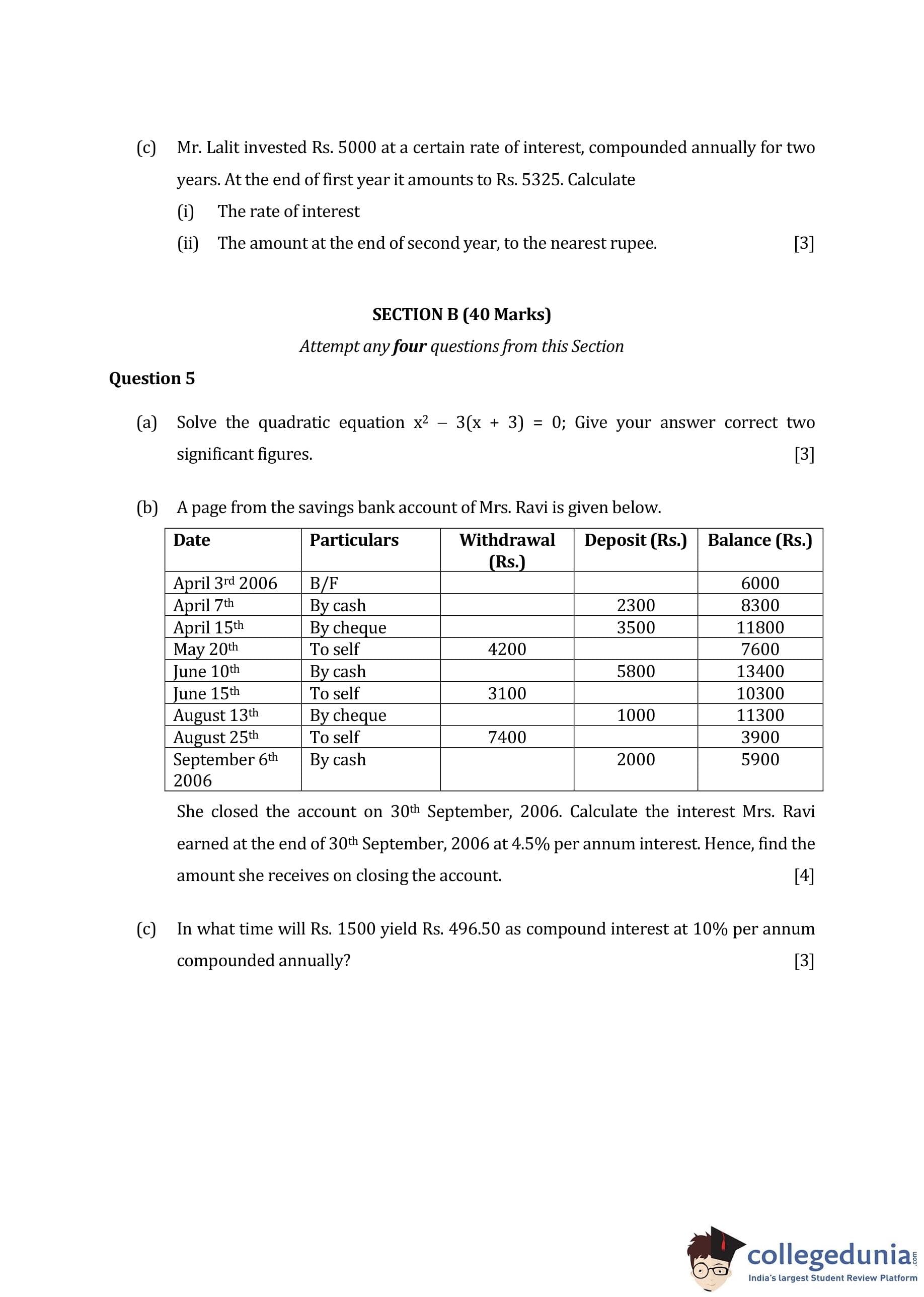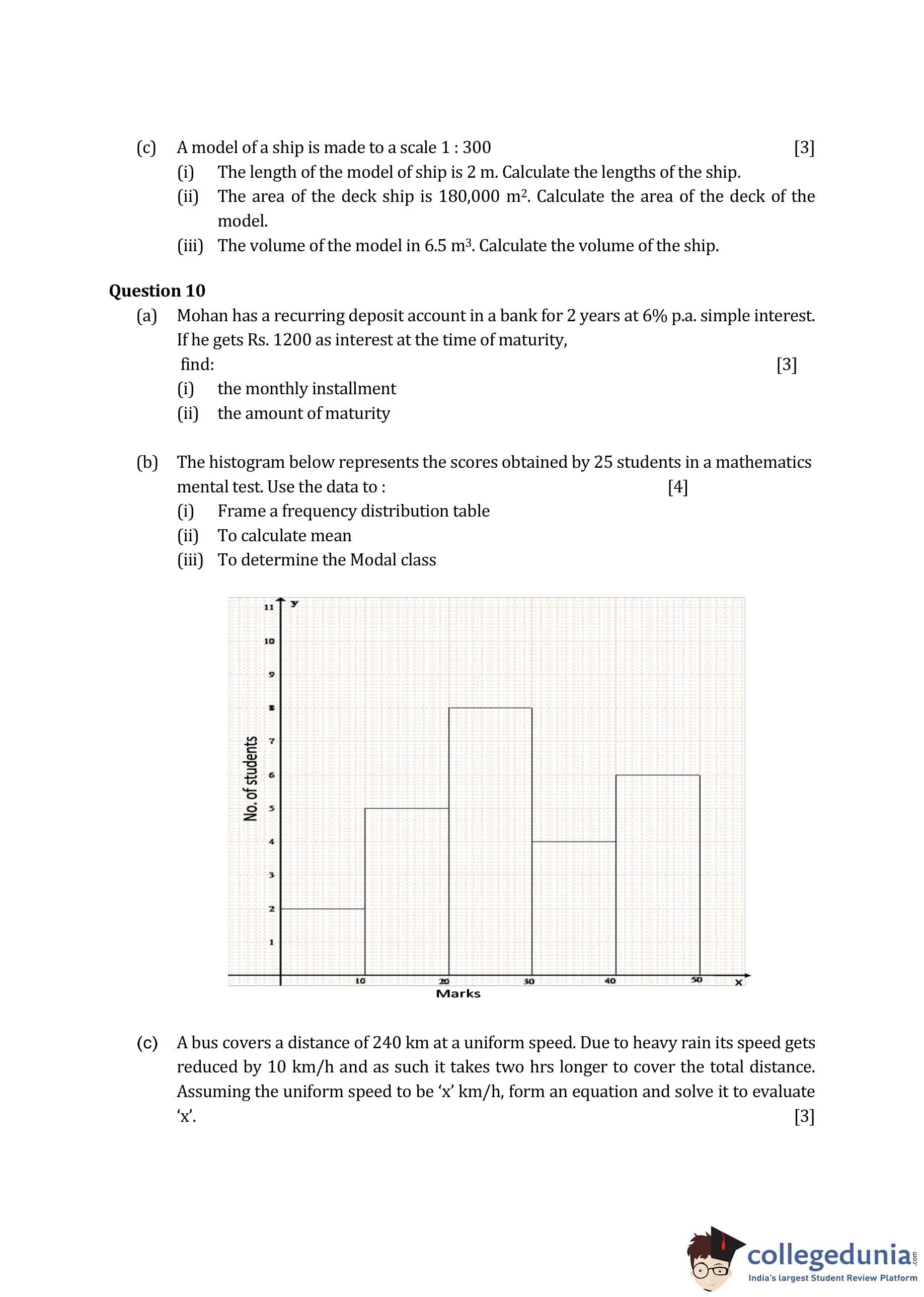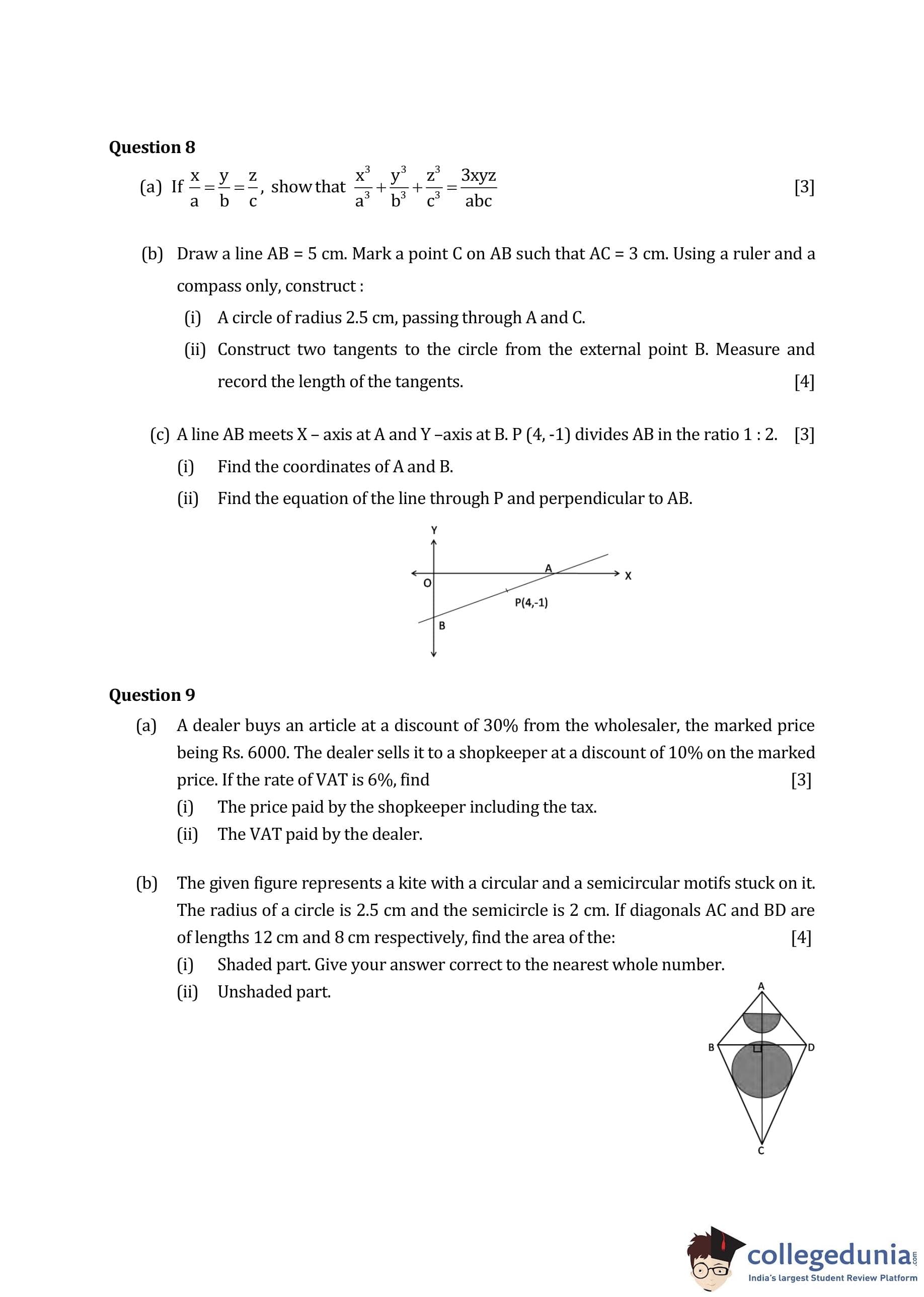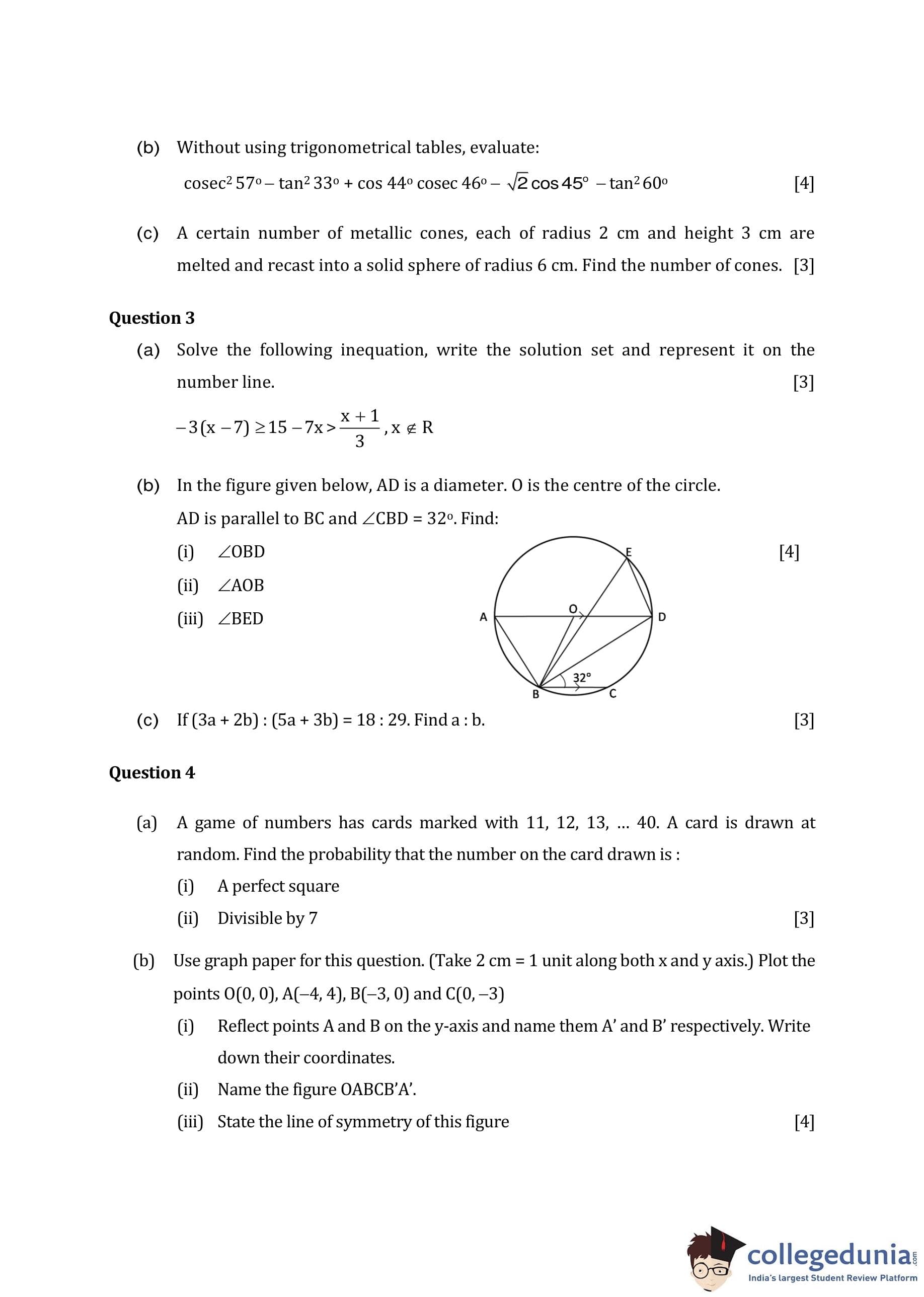 ICSE Class 10 Mathematics Question Paper 2016 with Answer Key
