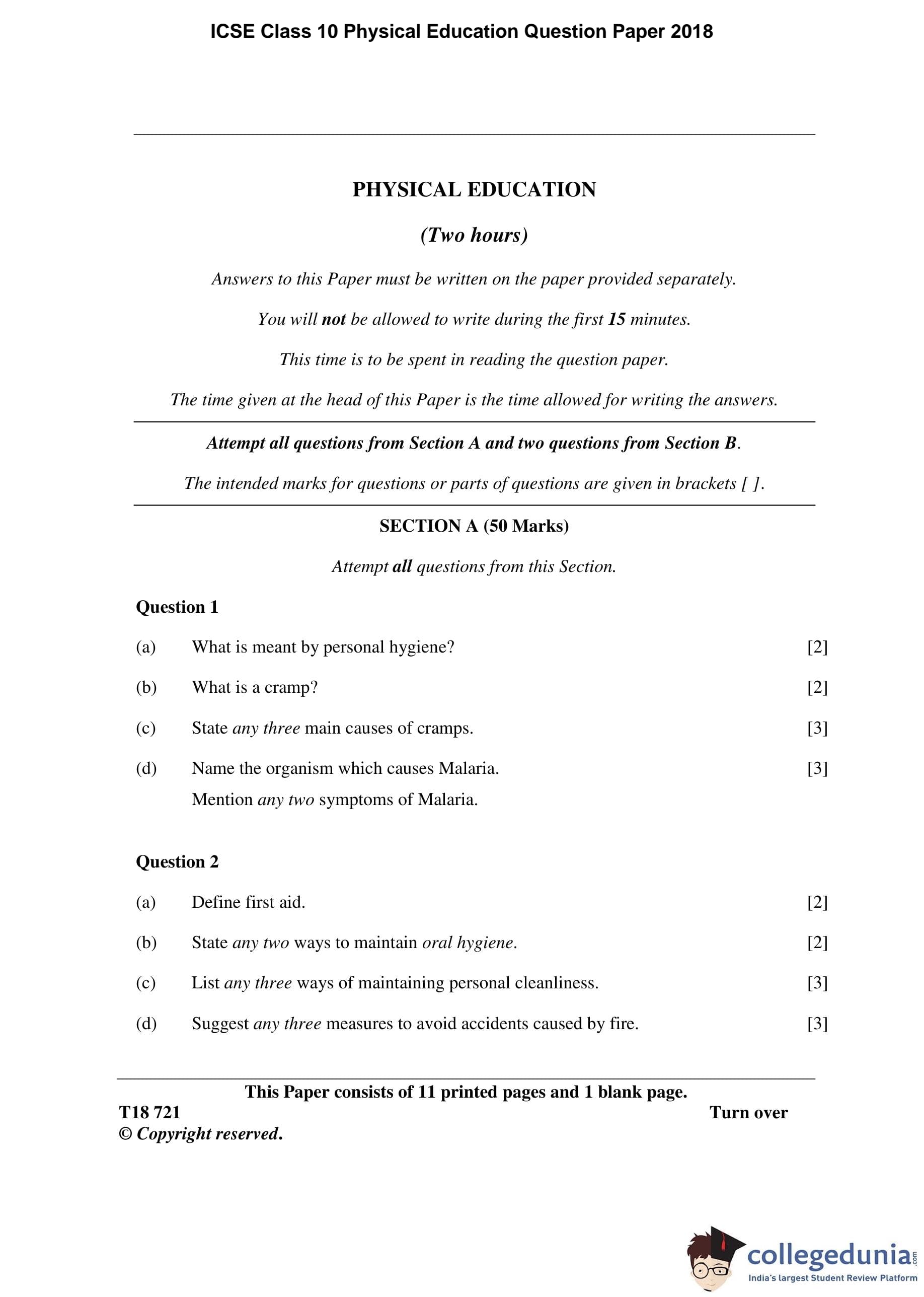 | ICSE Class 10 Physical Education Question Paper 2018 PDF | ICSE Class 10 Physical Education Answer Key 2018 PDF |