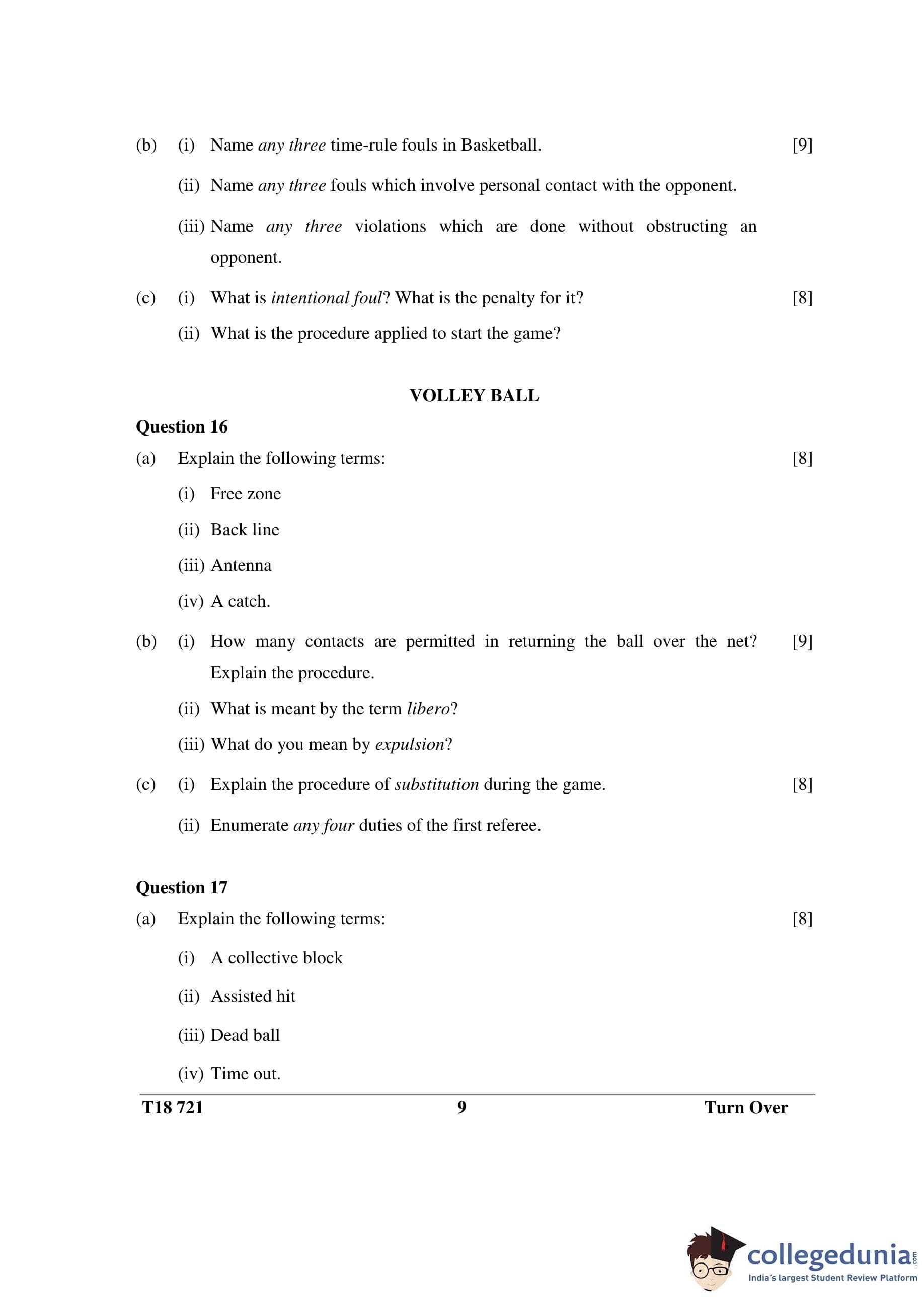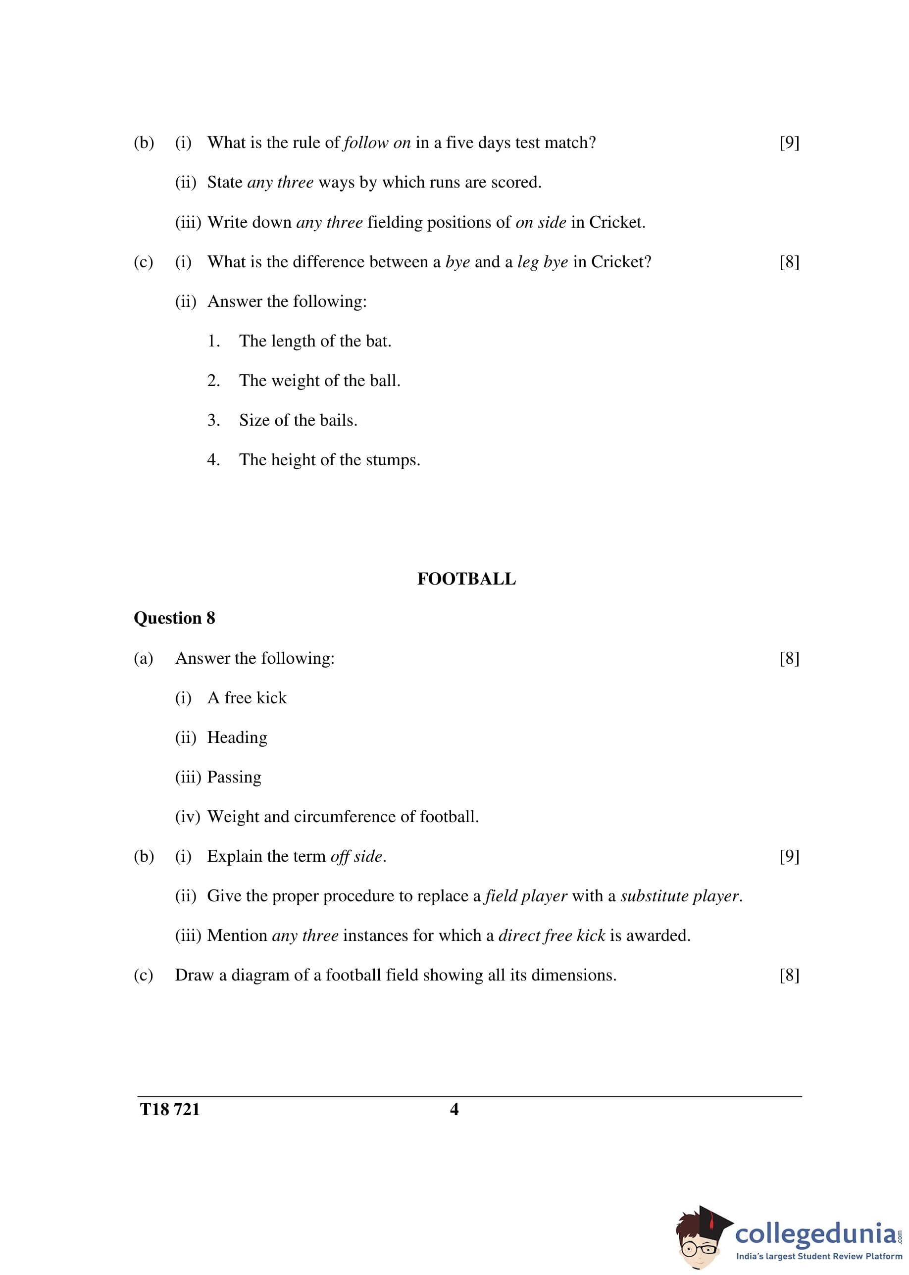 ICSE Class 10 Physical Education Question Paper 2018 with Answer Key