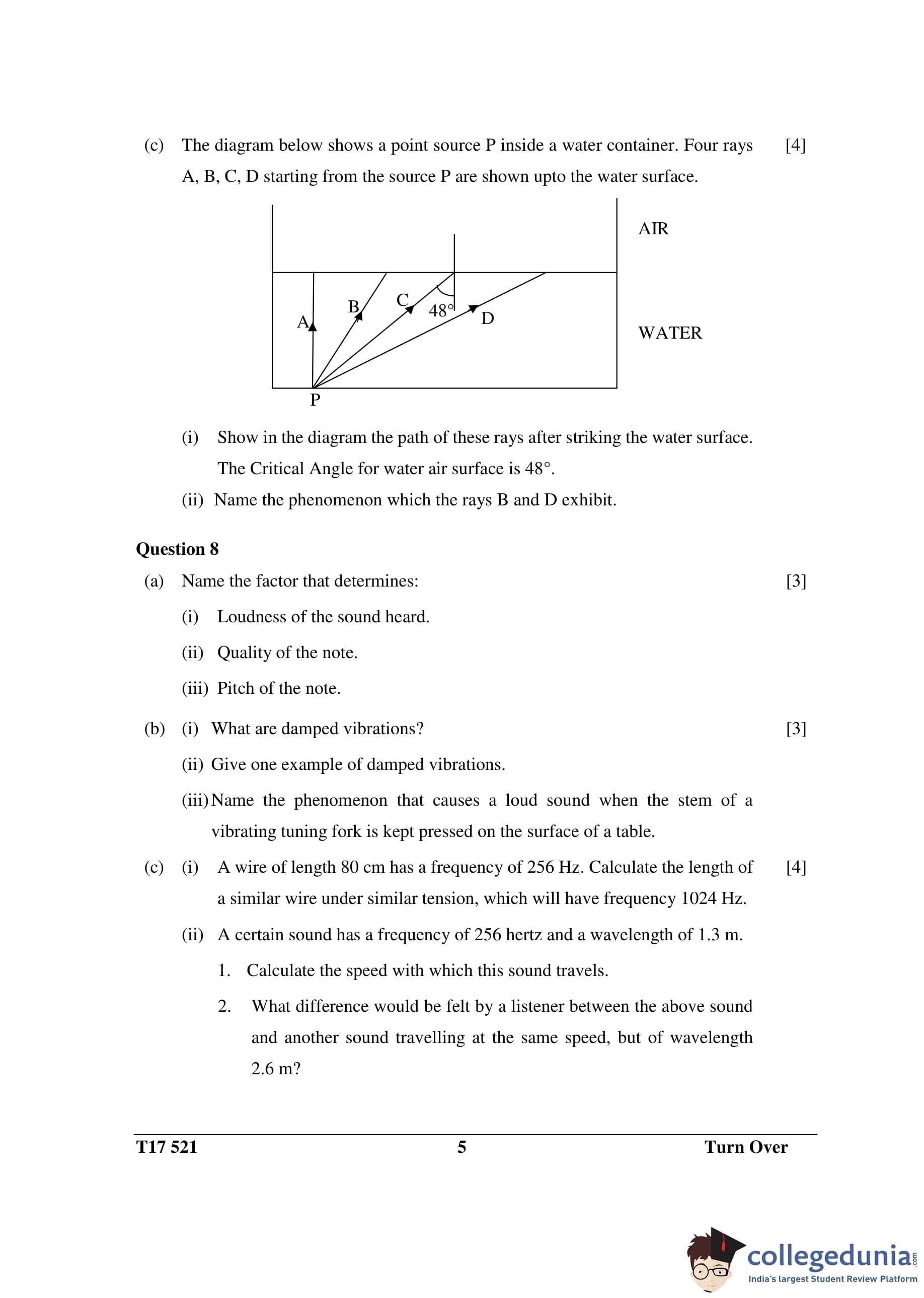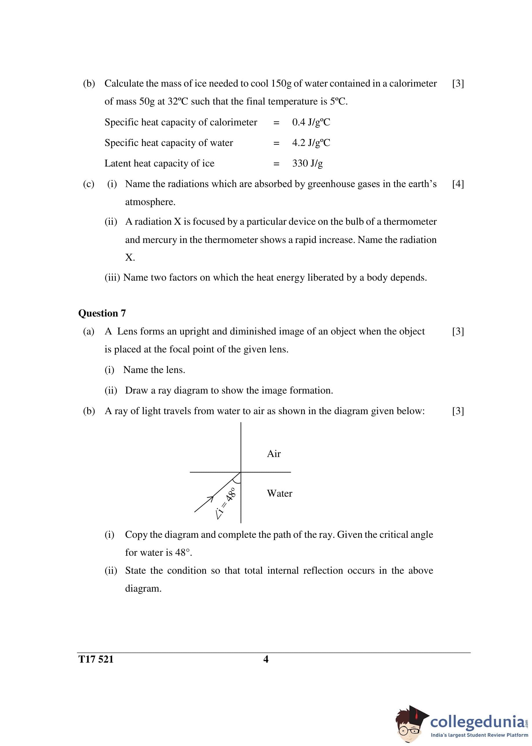 ICSE Class 10 Science Paper 1 (Physics) Question Paper 2017 with Answer Key