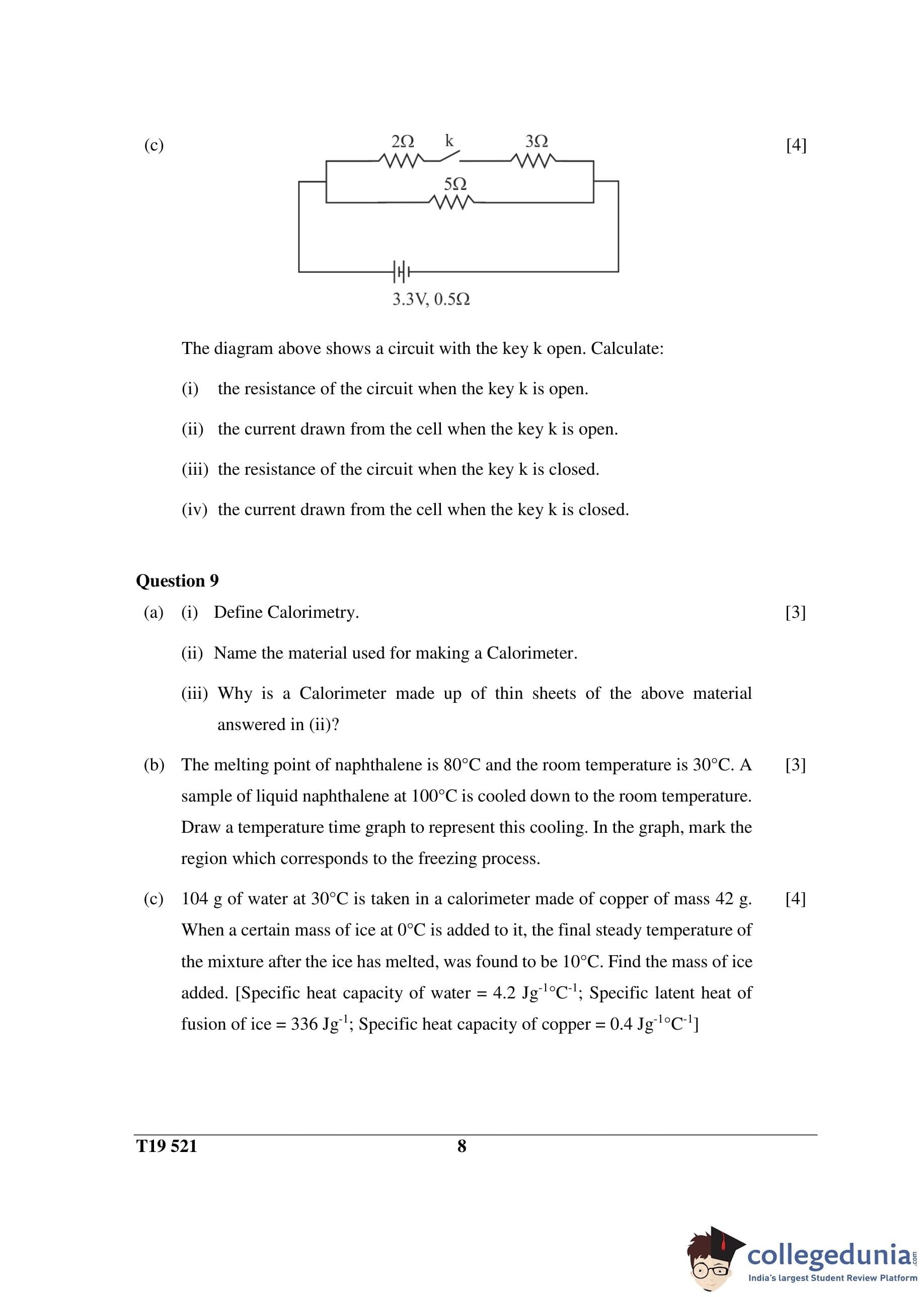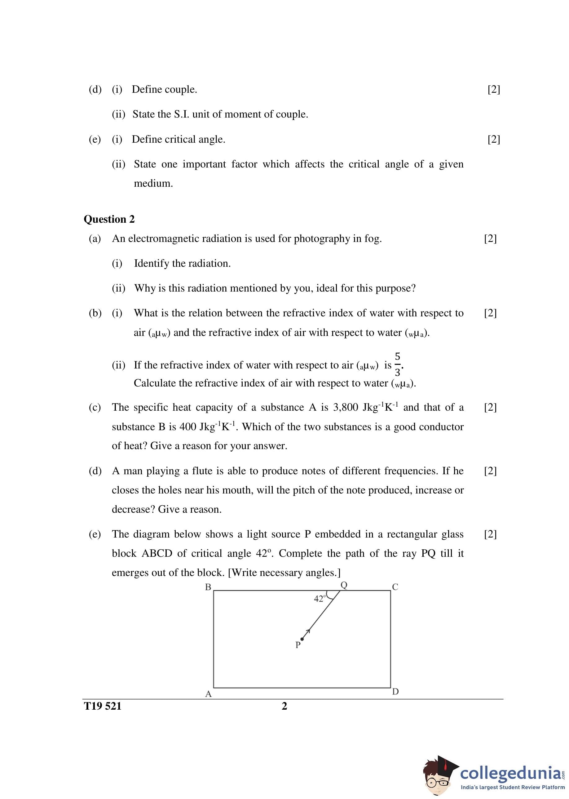 ICSE Class 10 Science Paper 1 (Physics) Question Paper 2019 with Answer Key