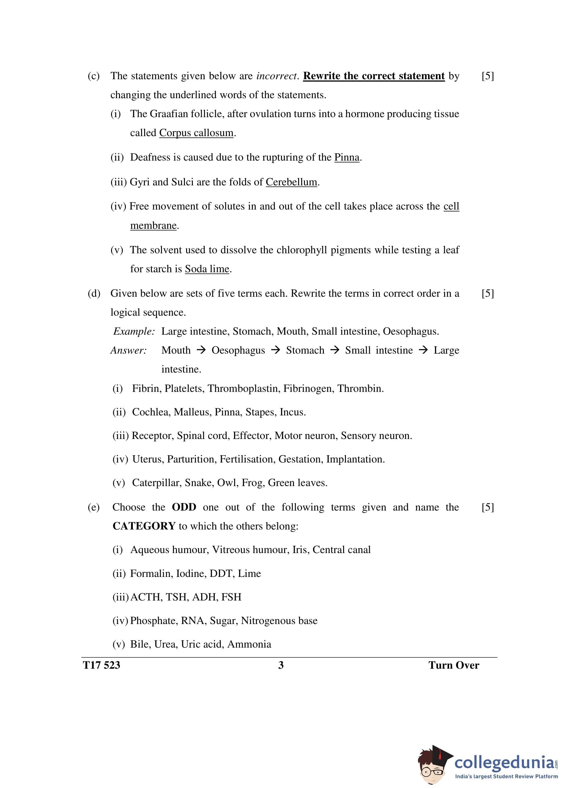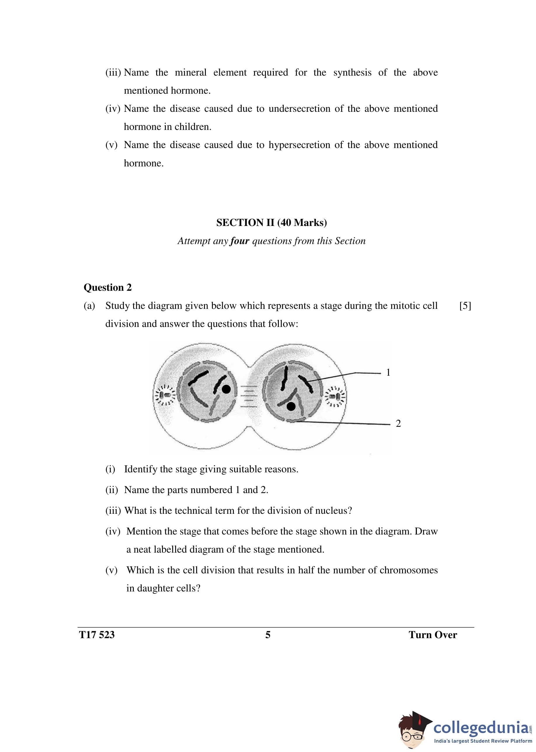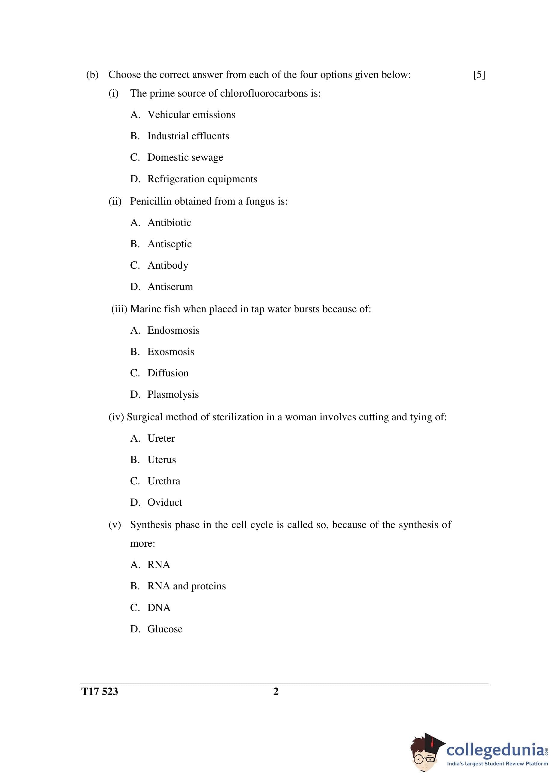 ICSE Class 10 Science Paper 3 (Biology) Question Paper 2017 with Answer Key pdf is available for download here. The exam was conducted by Council for the Indian School Certificate Examinations on April 5, 2017 in the Morning Session 11 AM to 1 PM. The question paper comprised a total of 7 questions divided among 2 sections.