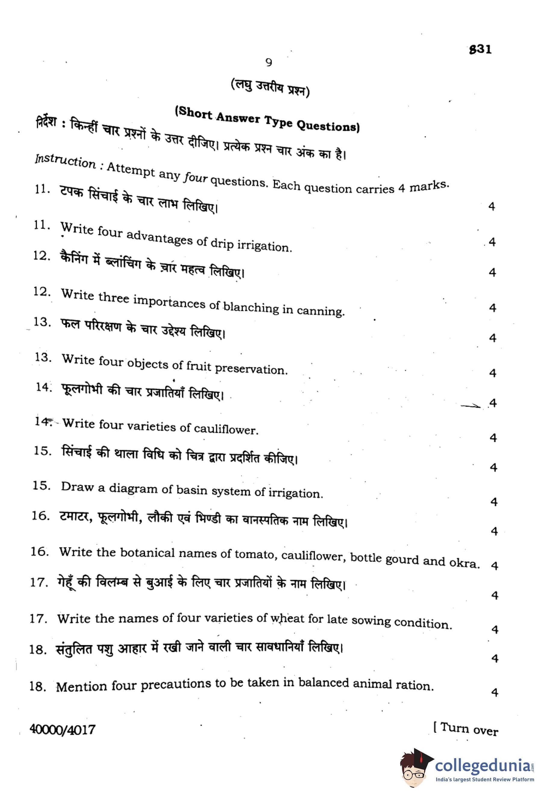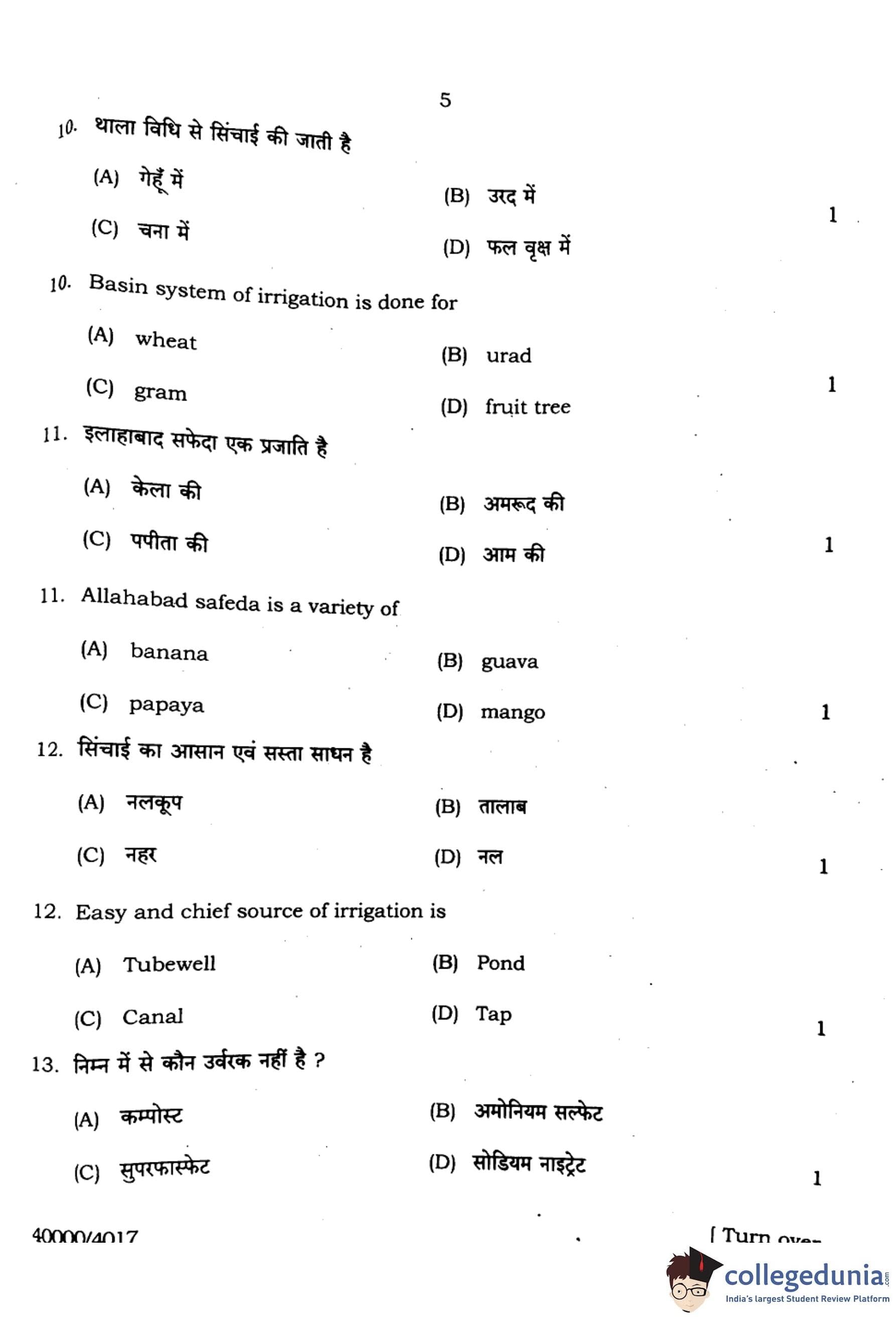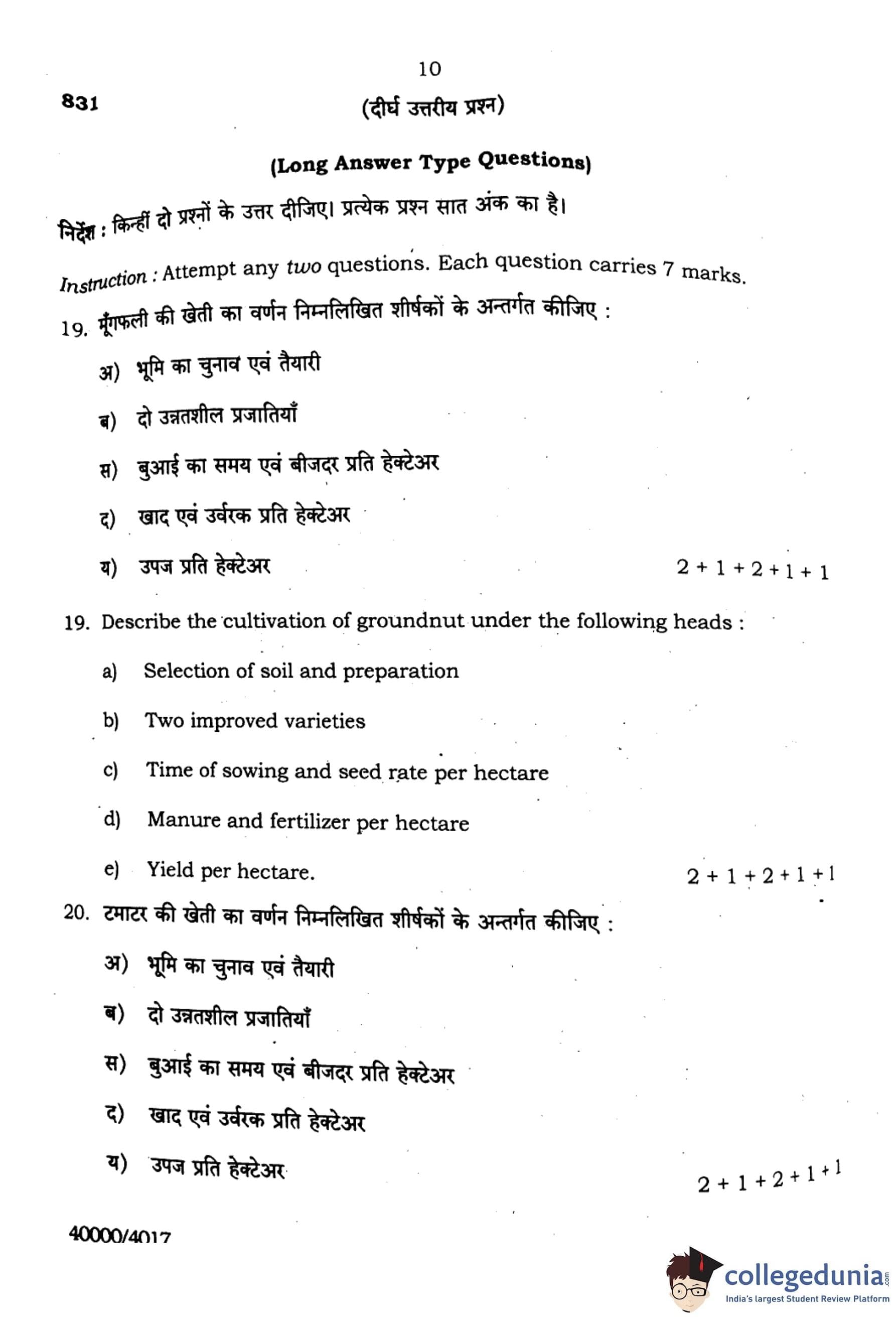 | UP Board Class 10 Agriculture 2024 Question Paper with Answer Key | Check Solutions |