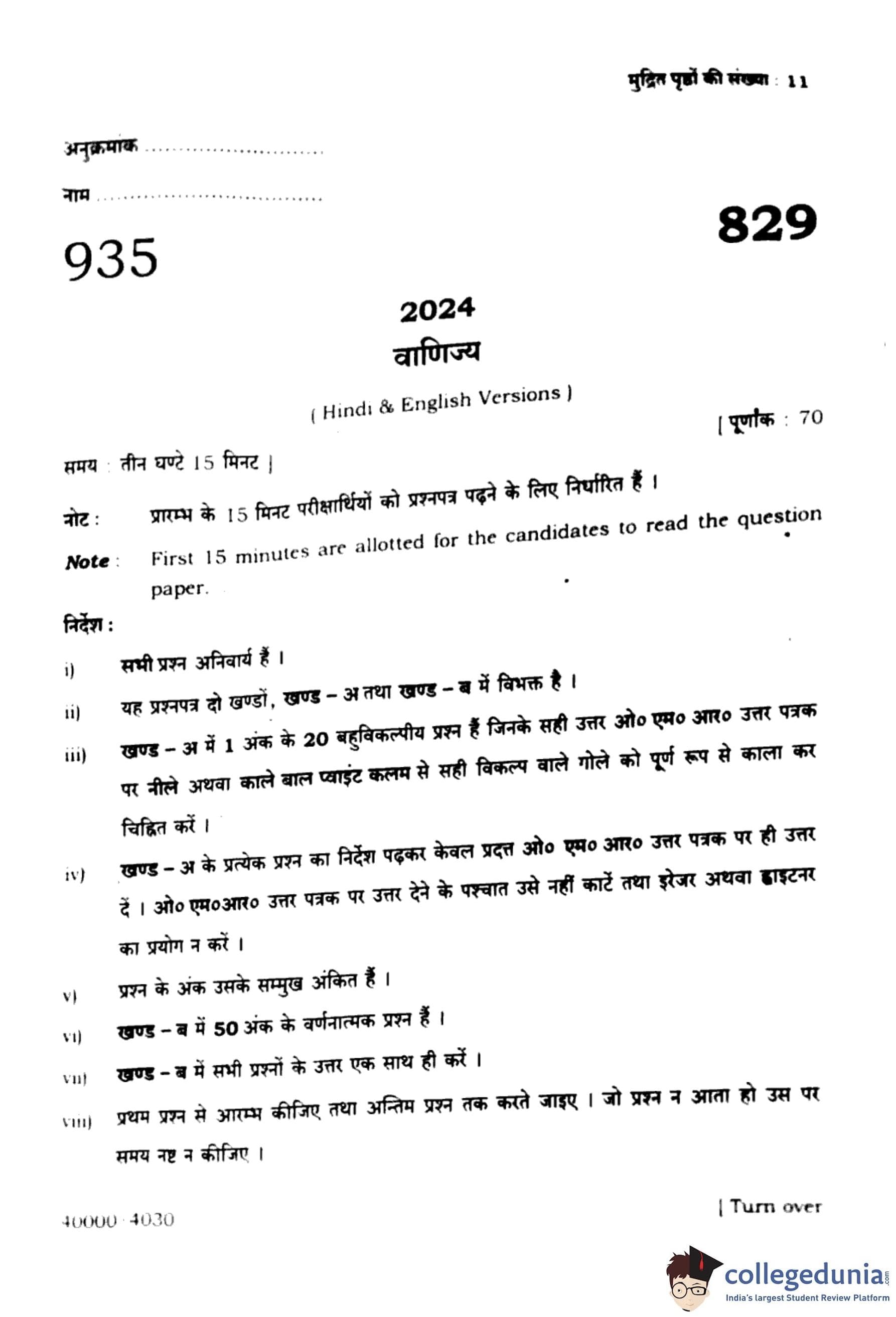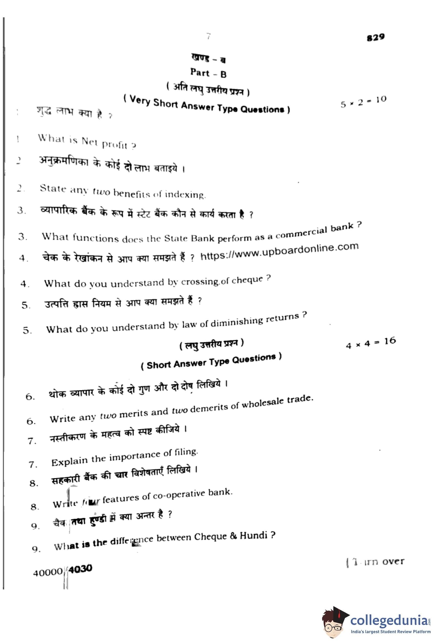 | UP Board Class 10 Commerce 2024 Question Paper with Answer Key | Check Solutions |