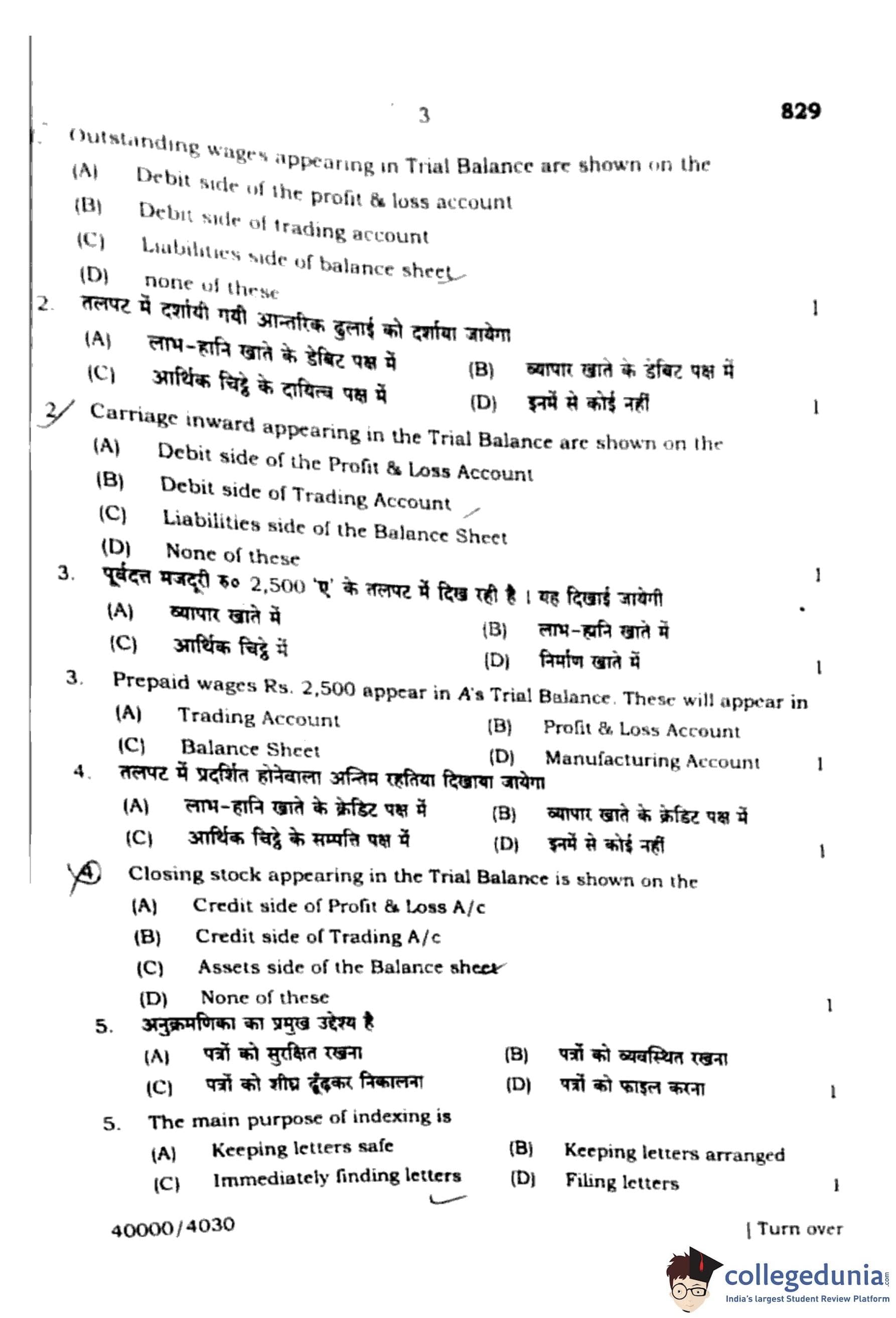 (A) Debit side of the Profit \& Loss Account: Incorrect, as wages are expenses but outstanding wages are liability.